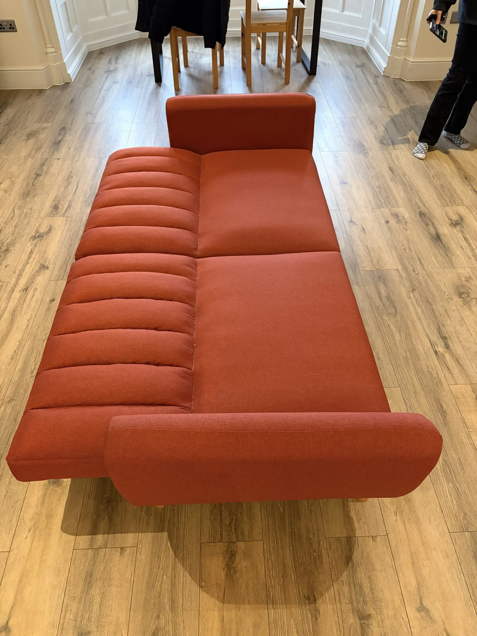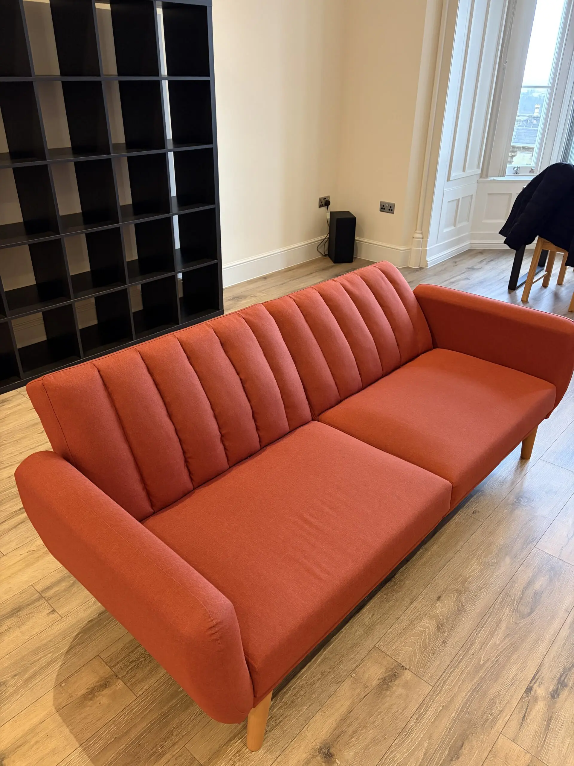 Retro – med-century modern sofa bed. Lovely colour, like new condition but unfortunately doesn’t go with our new house.