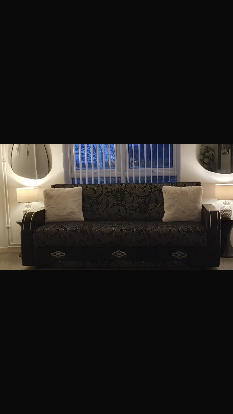 Solid sofa bed black/grey flower paterns length of the sofa 206 cm