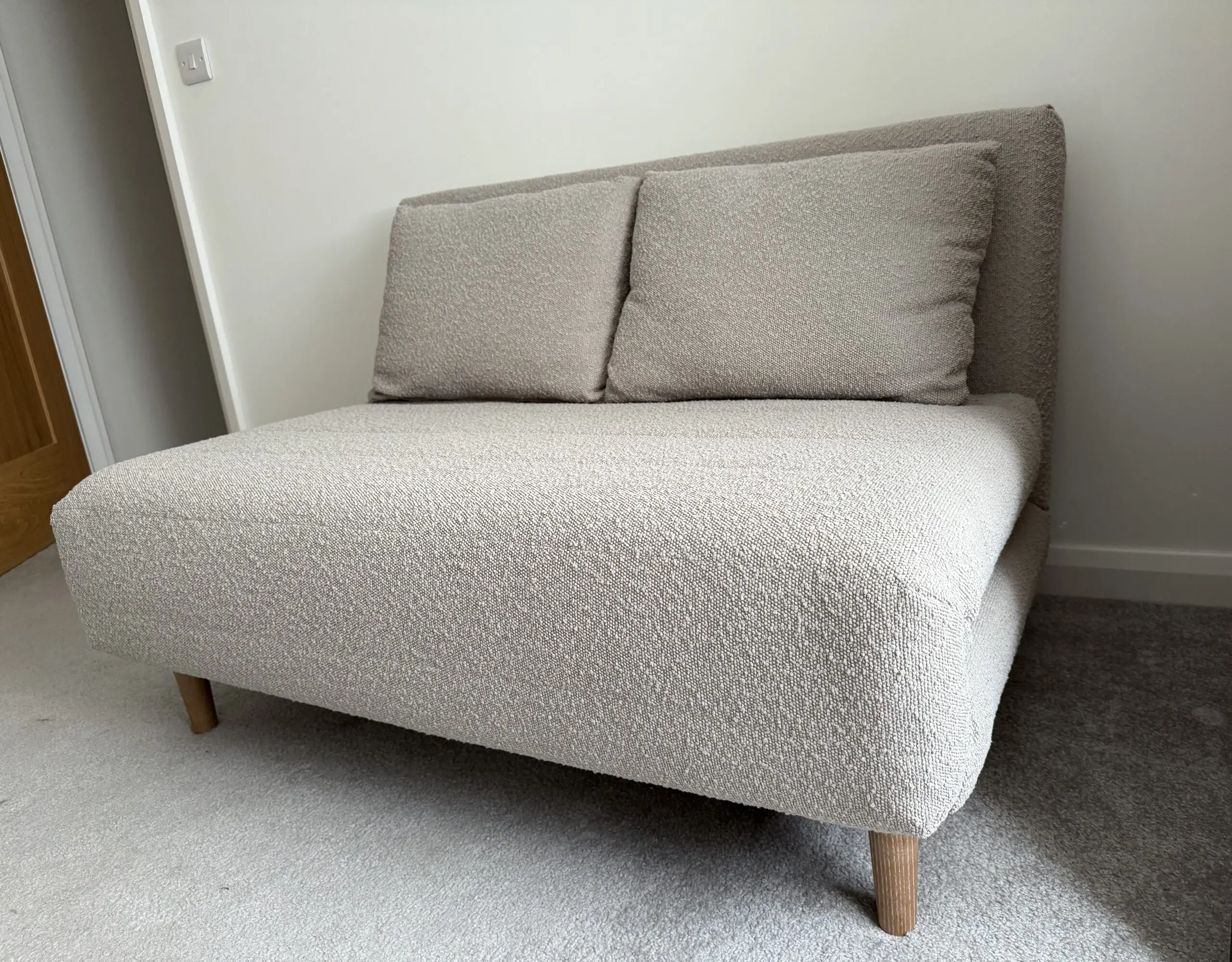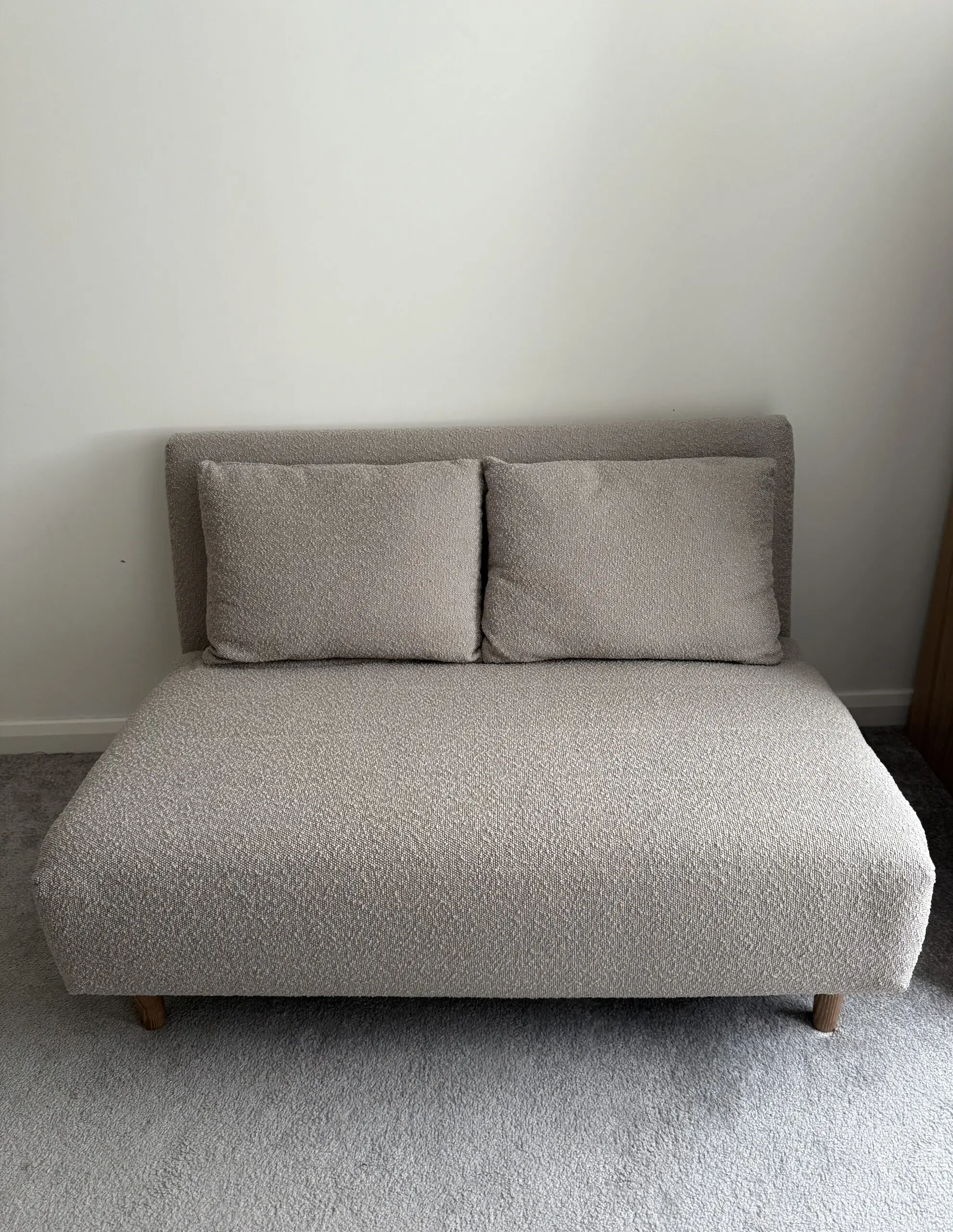 The sofa is from a guest room and never been slept on so it’s in a perfect condition. It unfolds super easy into a double bed.