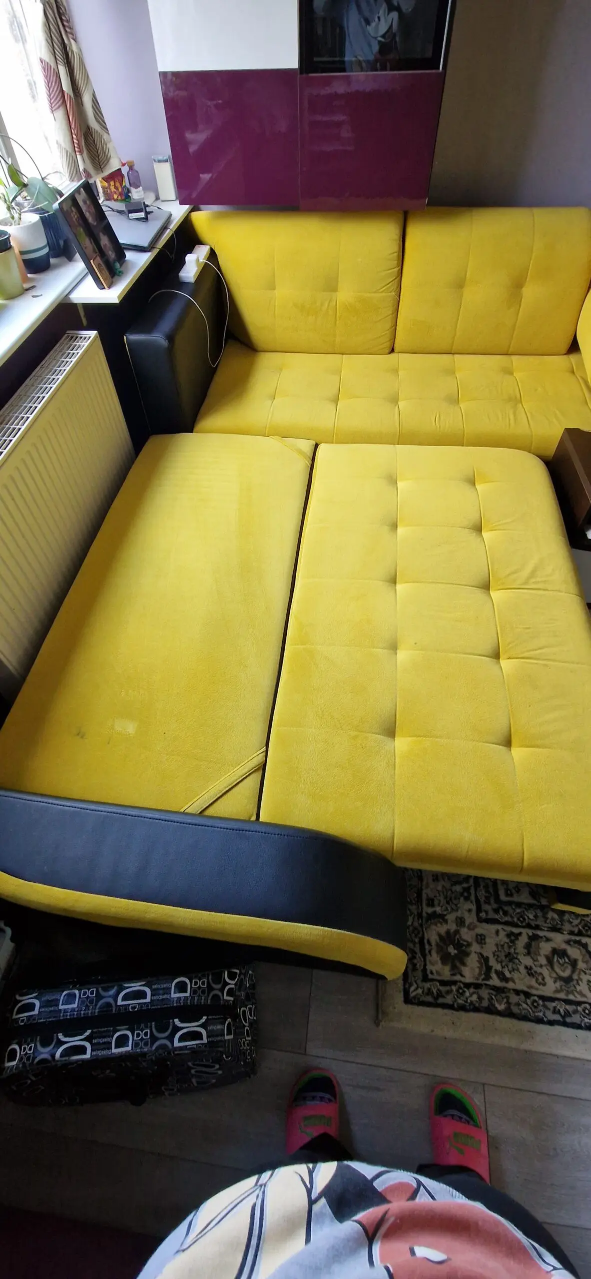 The corner sofa bed is lighly used with some satins that can be removed with sofa cleaner. The mesuarments of the bed are 140 wight by 190 lenght its comfy to sleep on and perfect for guests