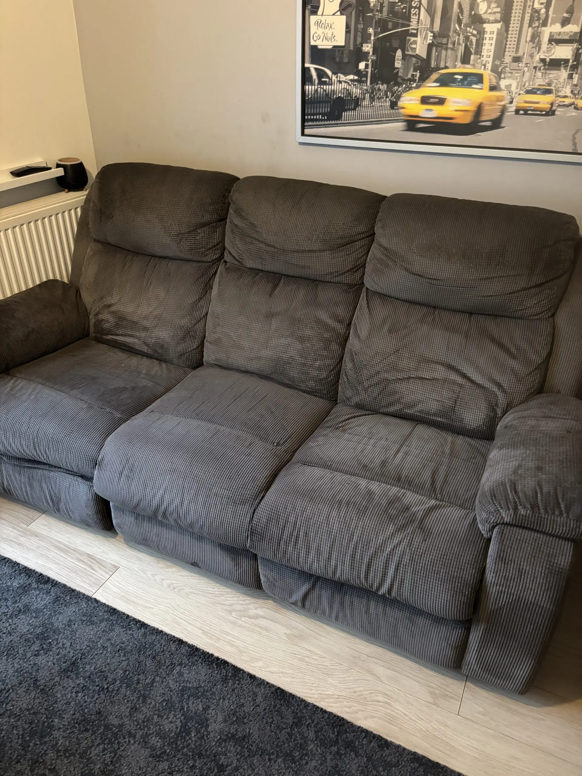 Very comfortable sofas. Only selling as I have purchased a corner sofa for better use of space. Very small tear on the 3 seater which is barely noticeable.