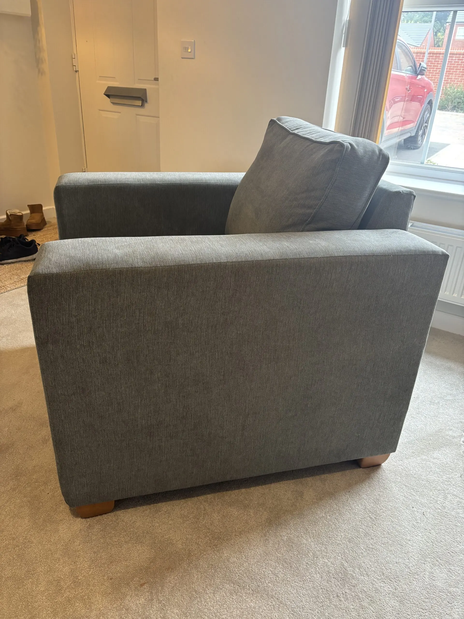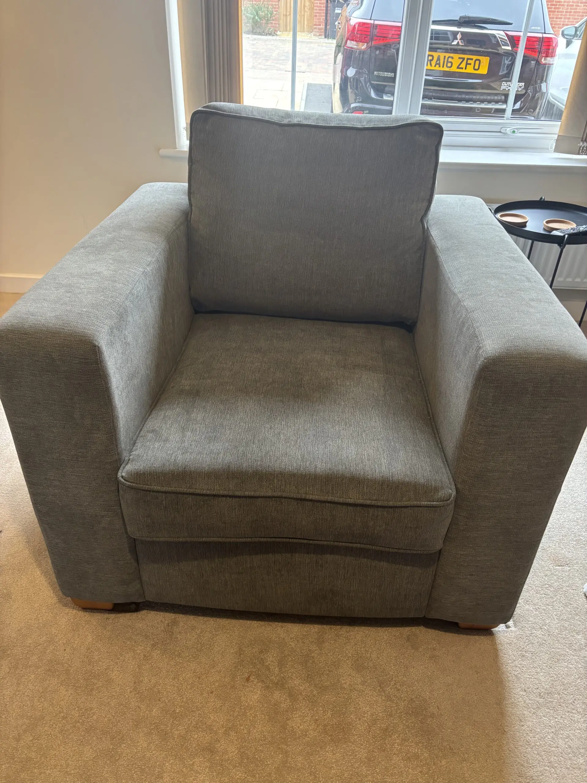Comfy sofa, and the arm chair is great to cuddle up in.