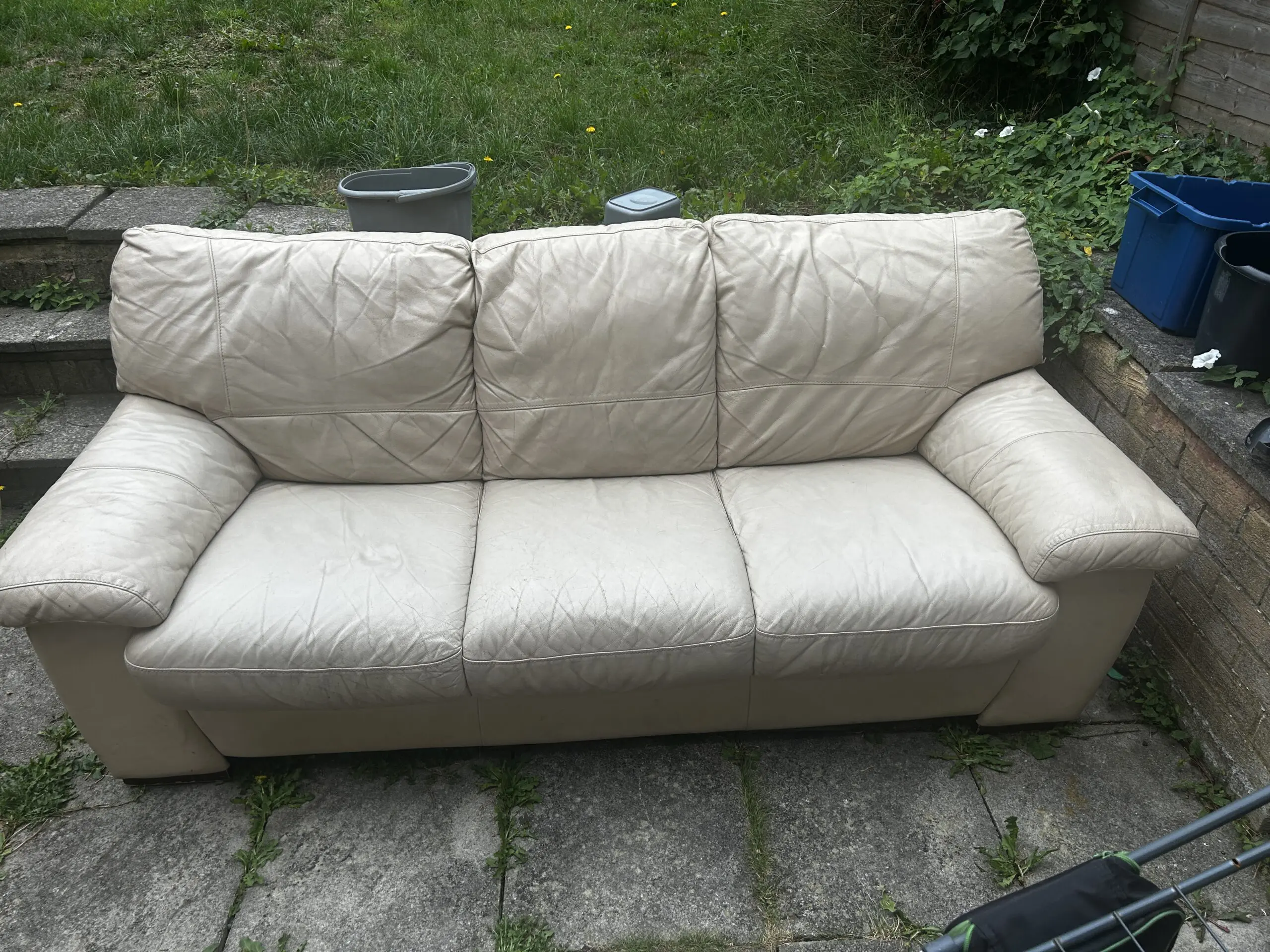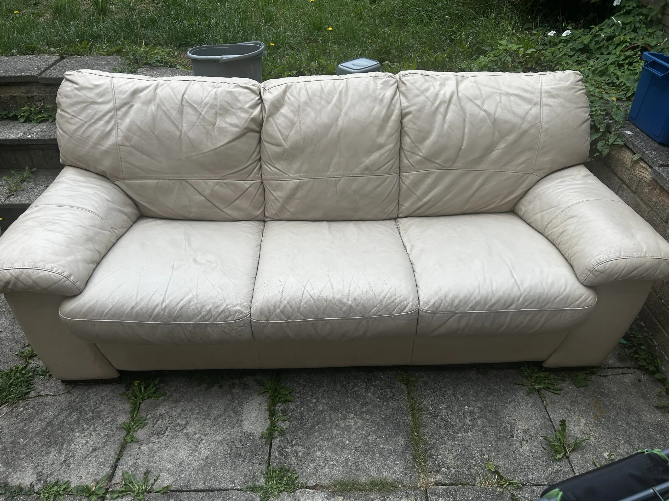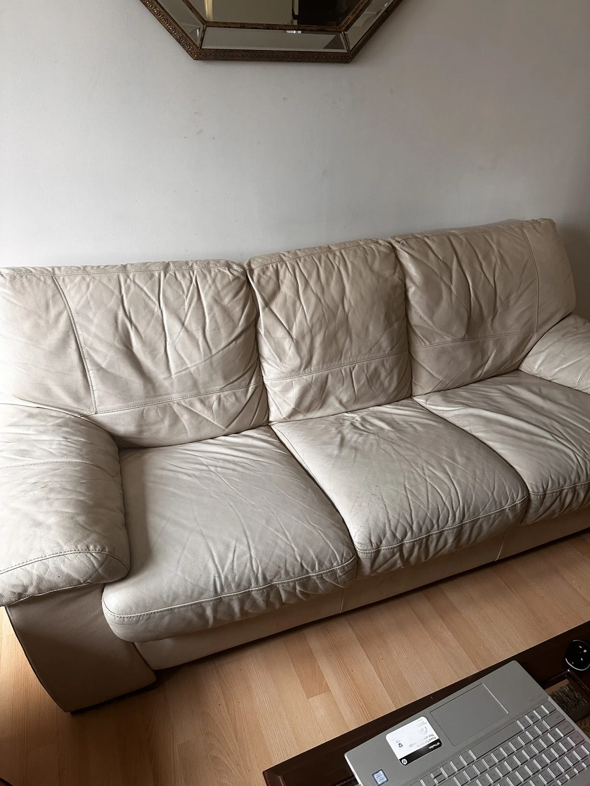 Leather sofa in good condition. No tears or stains, only minor signs of normal use.