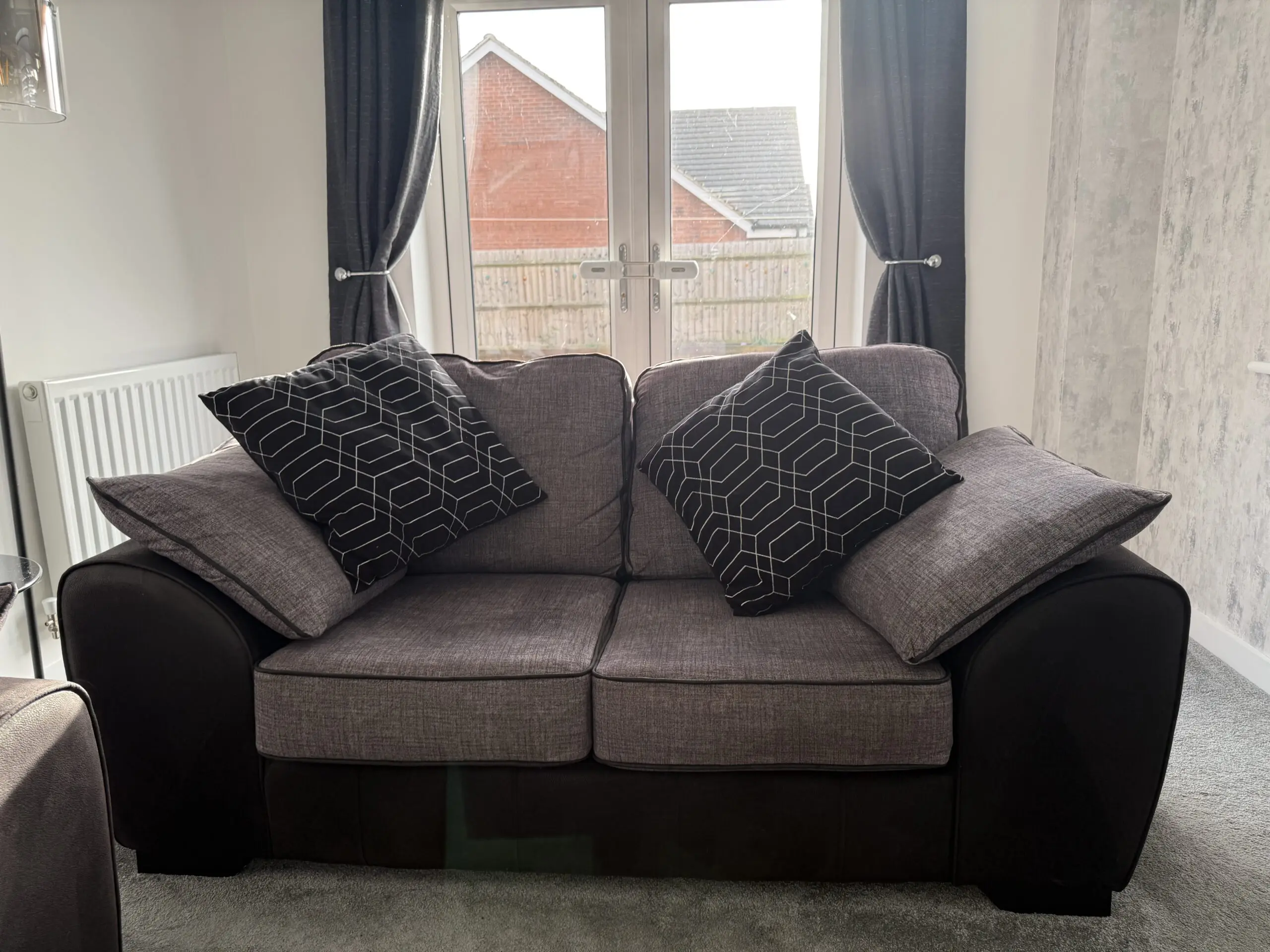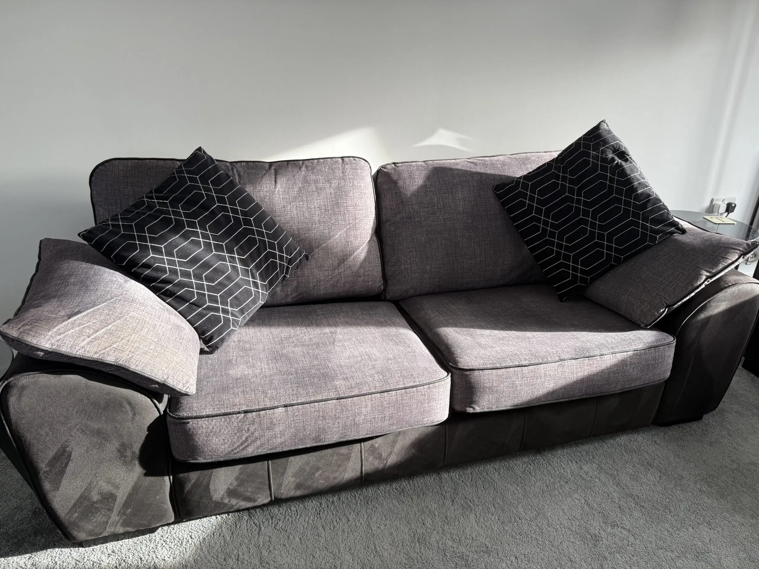 Comfortable 3-seater and 2-seater grey fabric sofas in good used condition. Clean, well looked after, and from a smoke-free home.