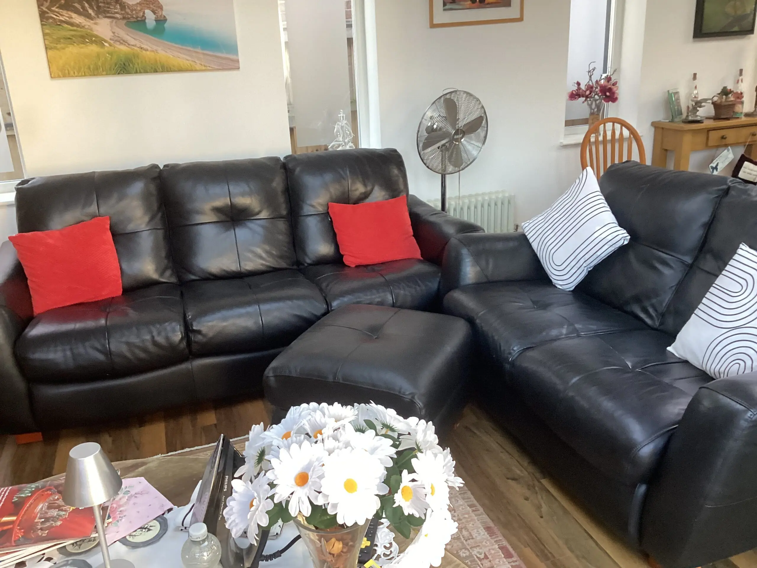 Leather 3 piece – 3 + 2 sofa with foot locker