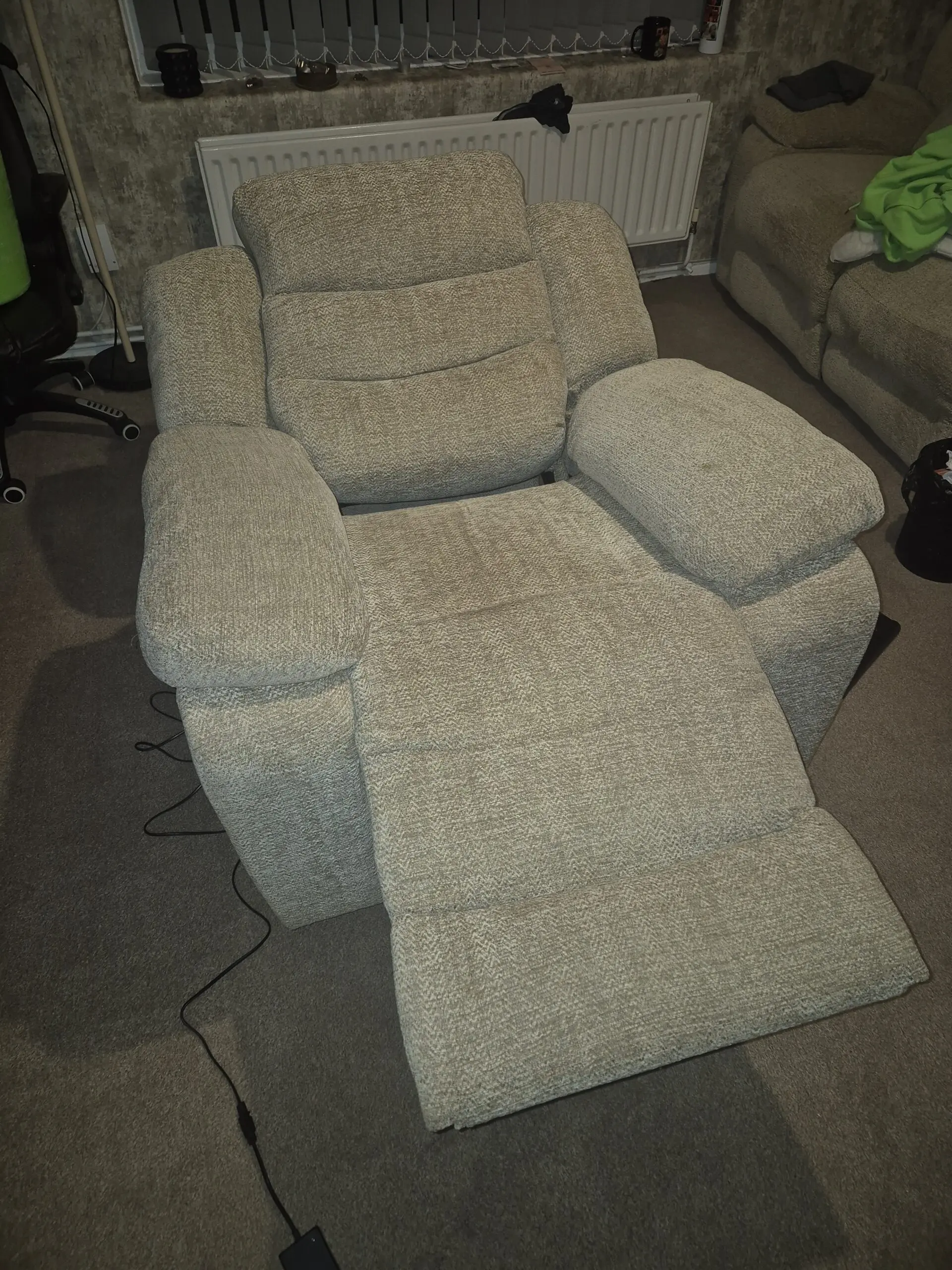 2X two seater electric recliners and recliner armchair. Good condition, hardly used.
