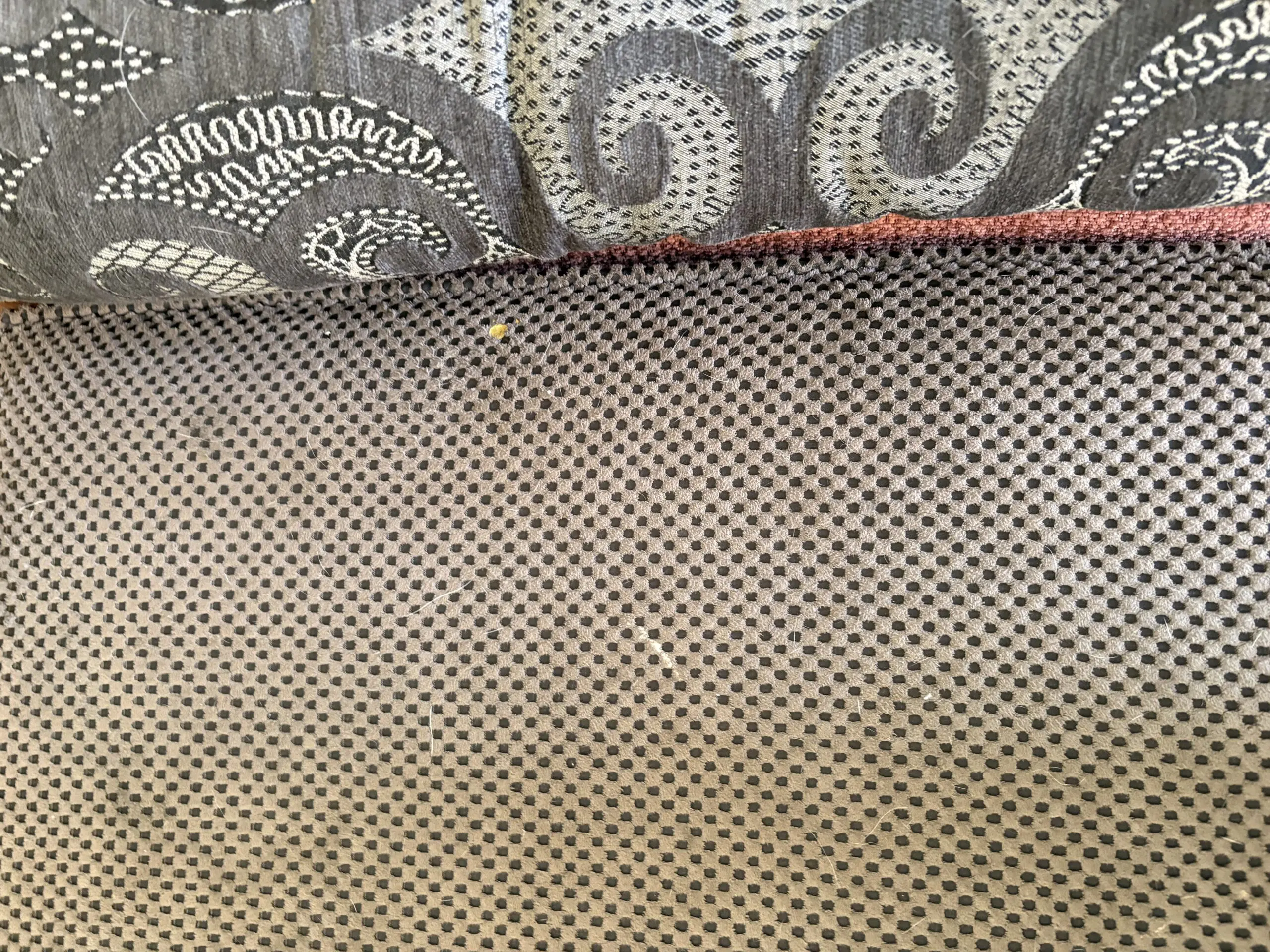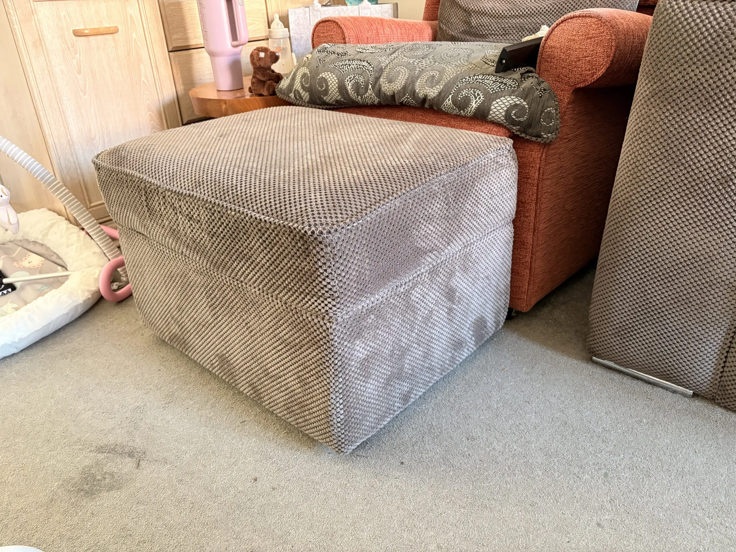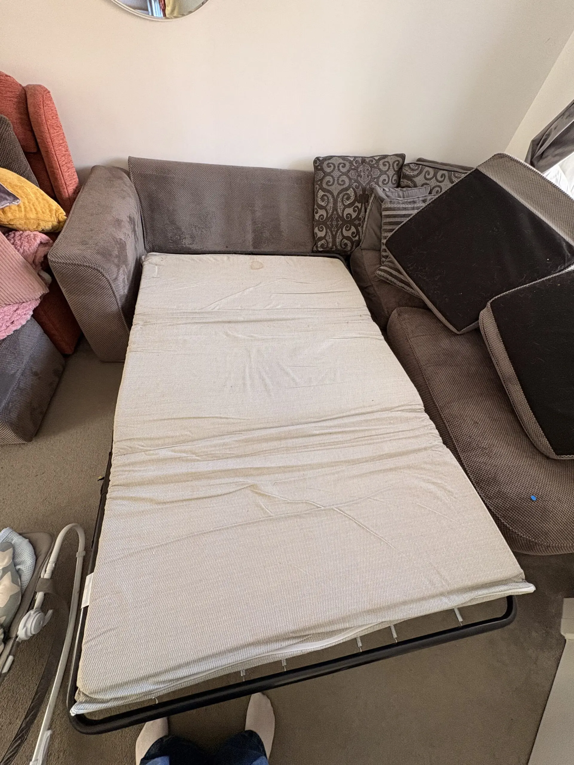 • Small stains on the footstool and two seat cushions, plus one on the sofa bed mattress (see photos).