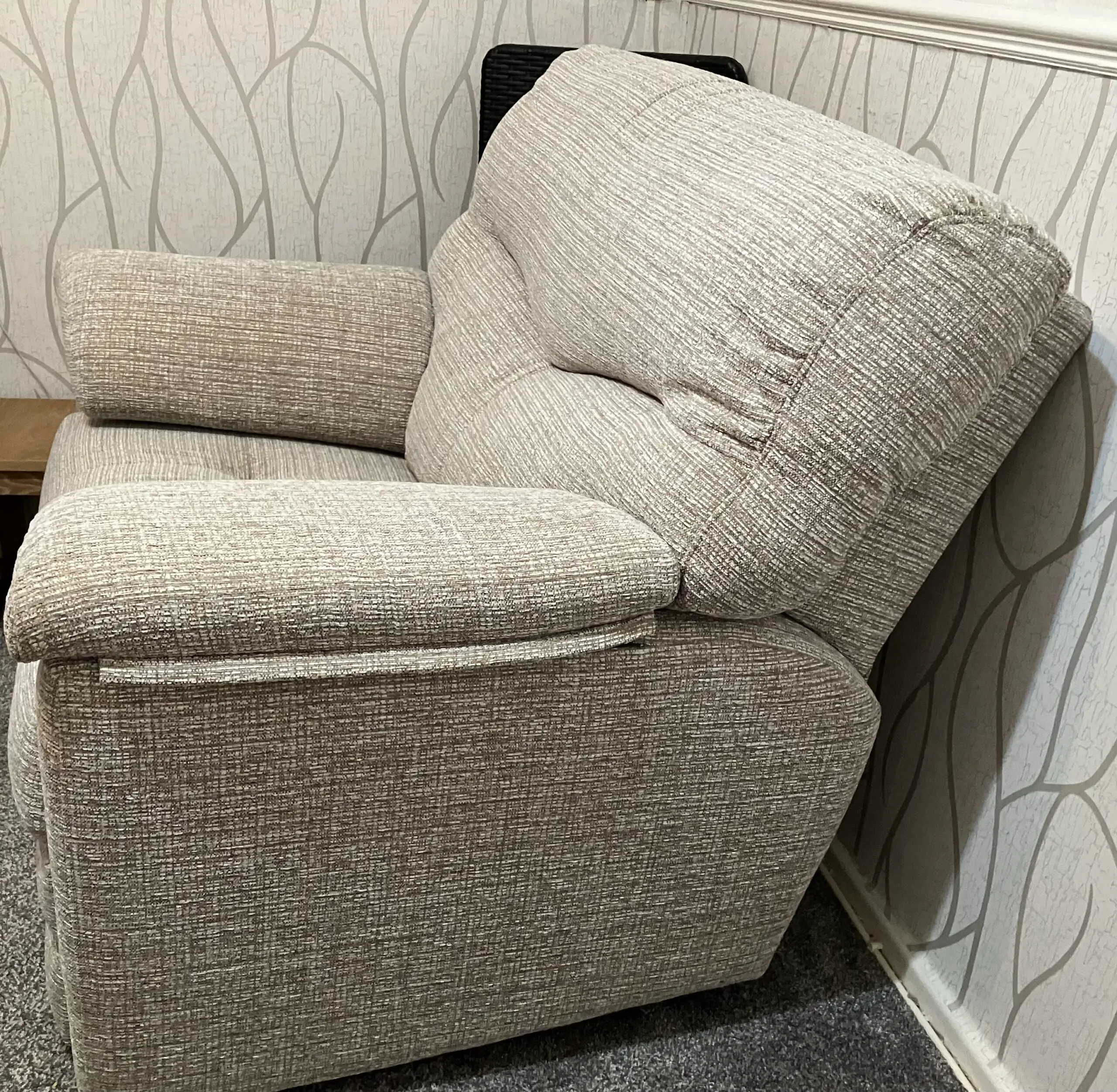 SCS Stratford 3 seater power recliner and standard armchair brought 3 years ago have had them both professionally cleaned. Selling due to moving and won’t fit in new property