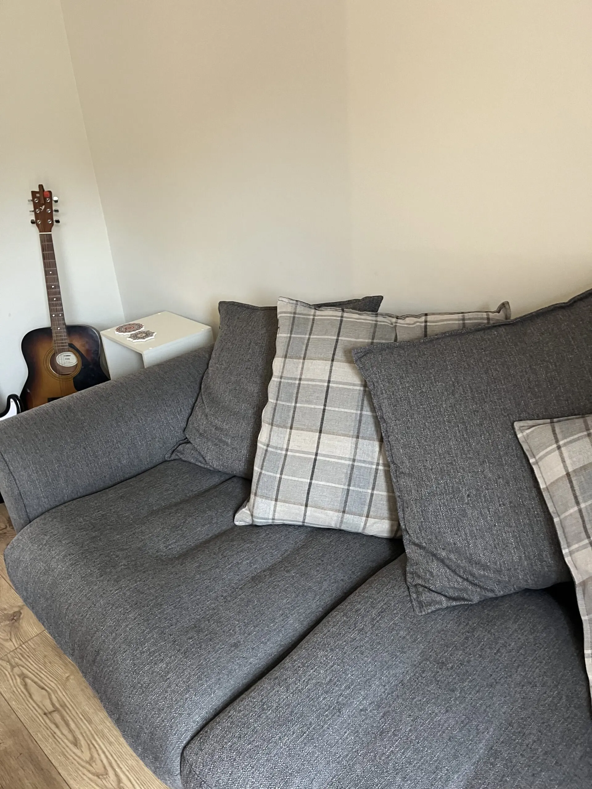 3 seater sofa with 4 reversible cushions (checked pattern)