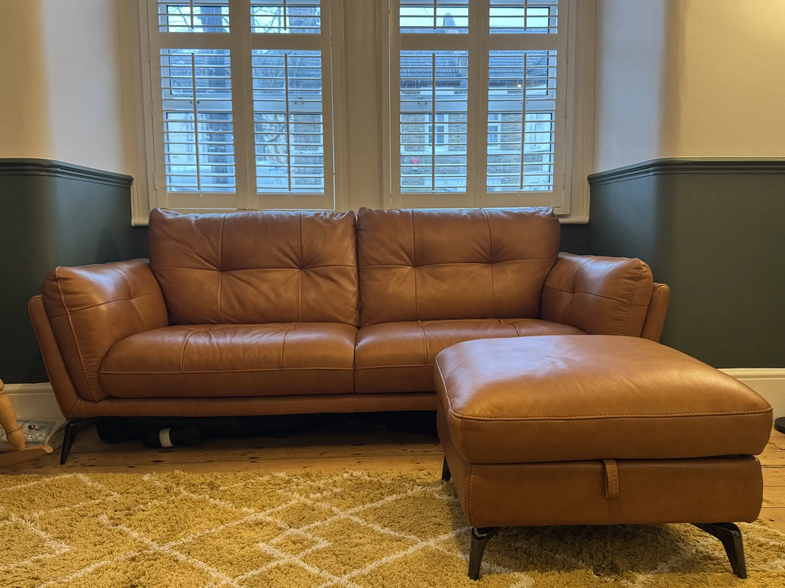 Comes with Harlan storage footstool in Tan colour. The footstool is in immaculate condition and has been rarely used.