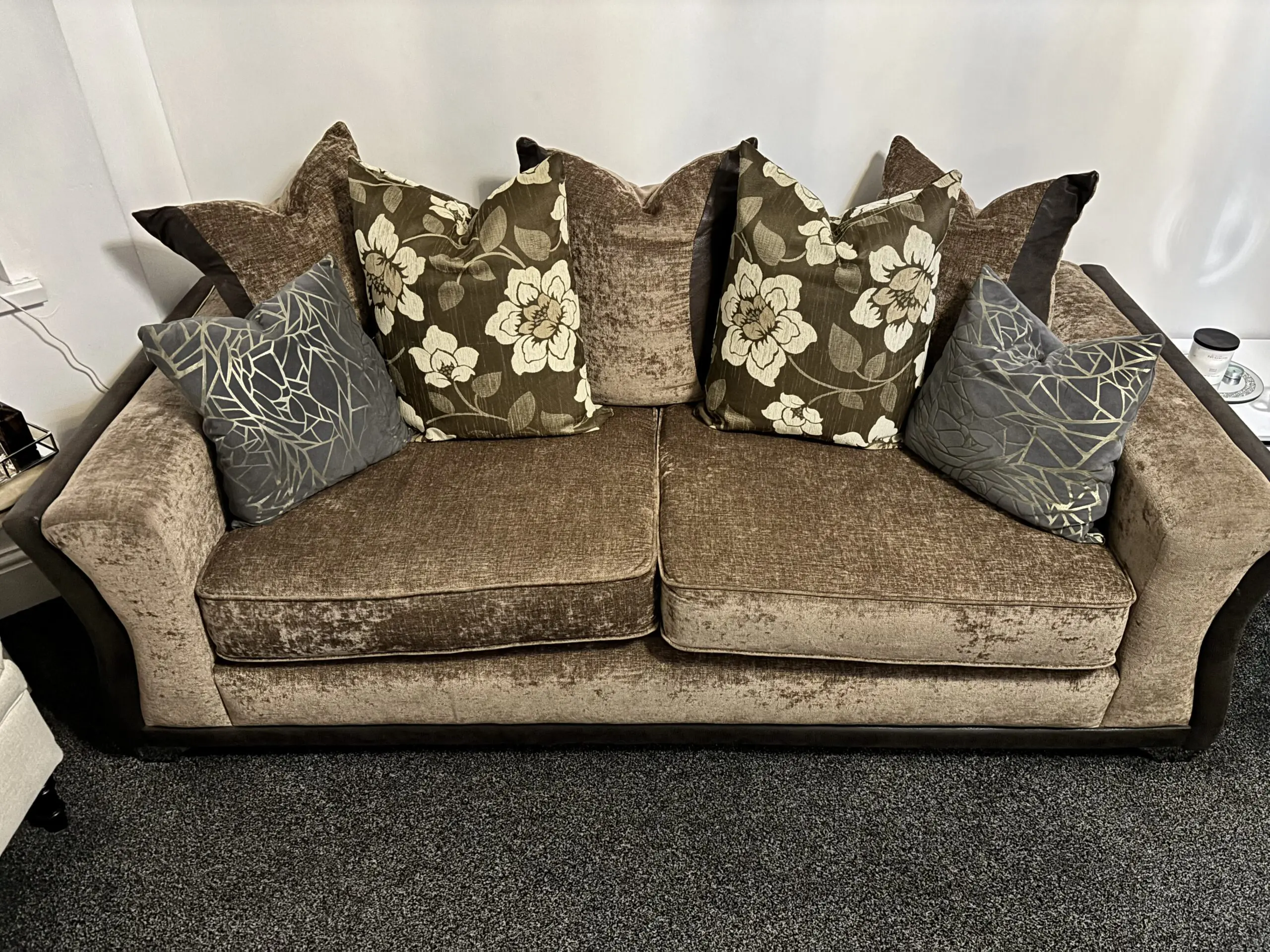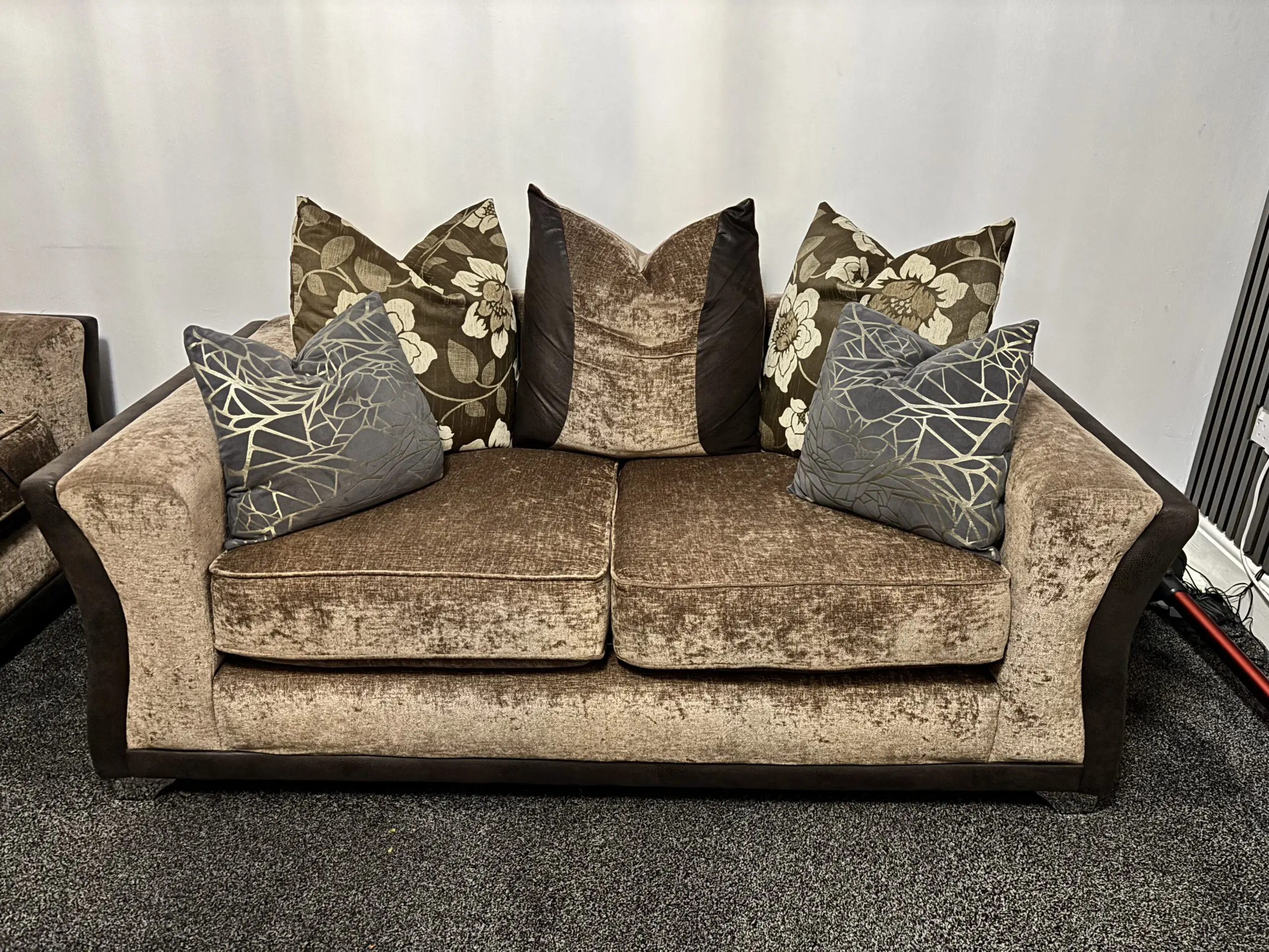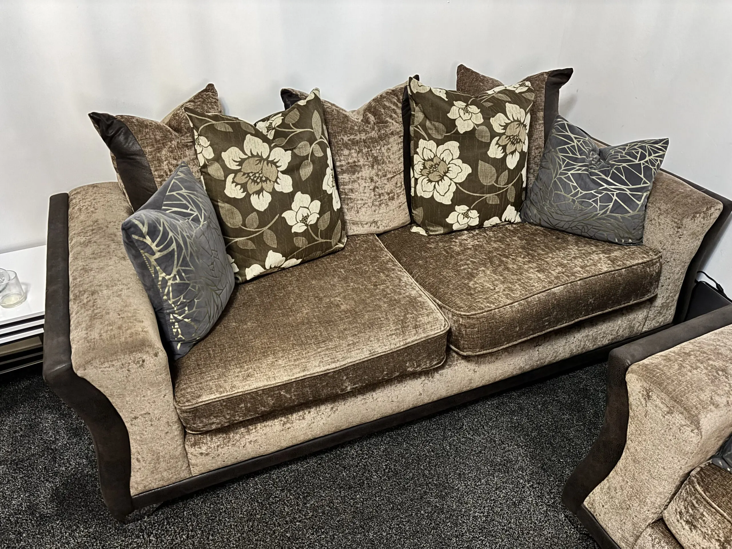 3+2+2 Sofa Set cushions included, brown Leather and Fabric.