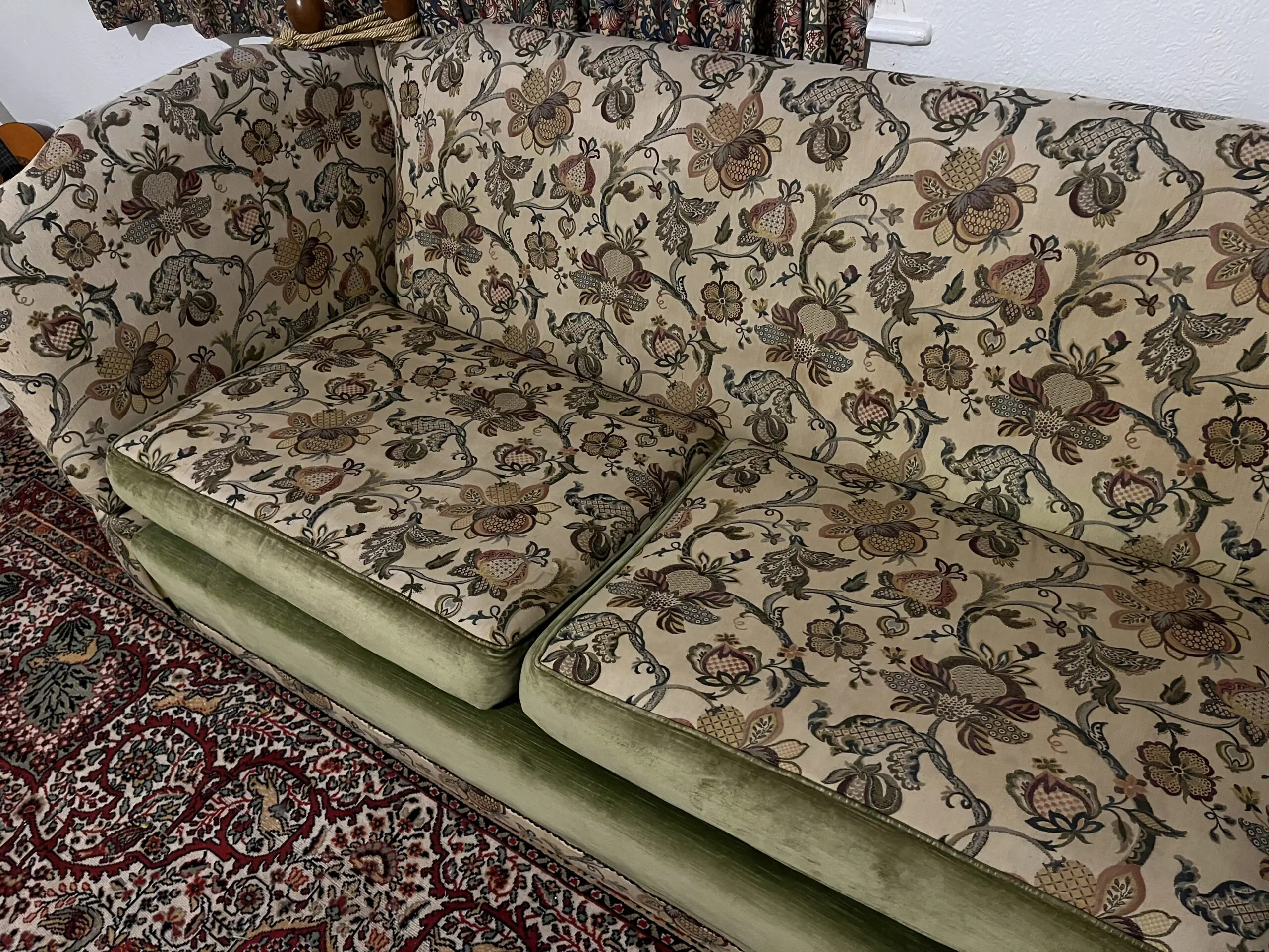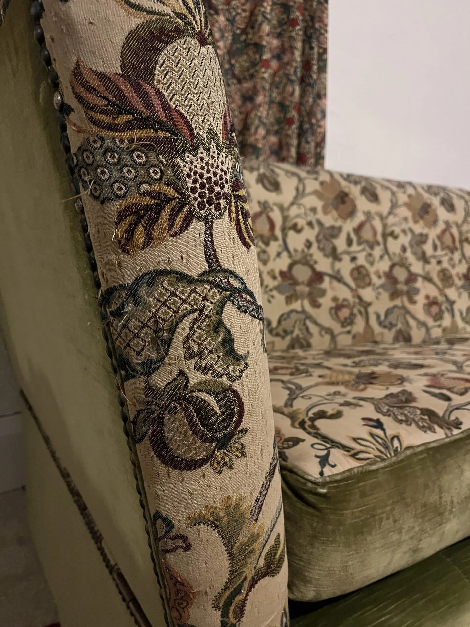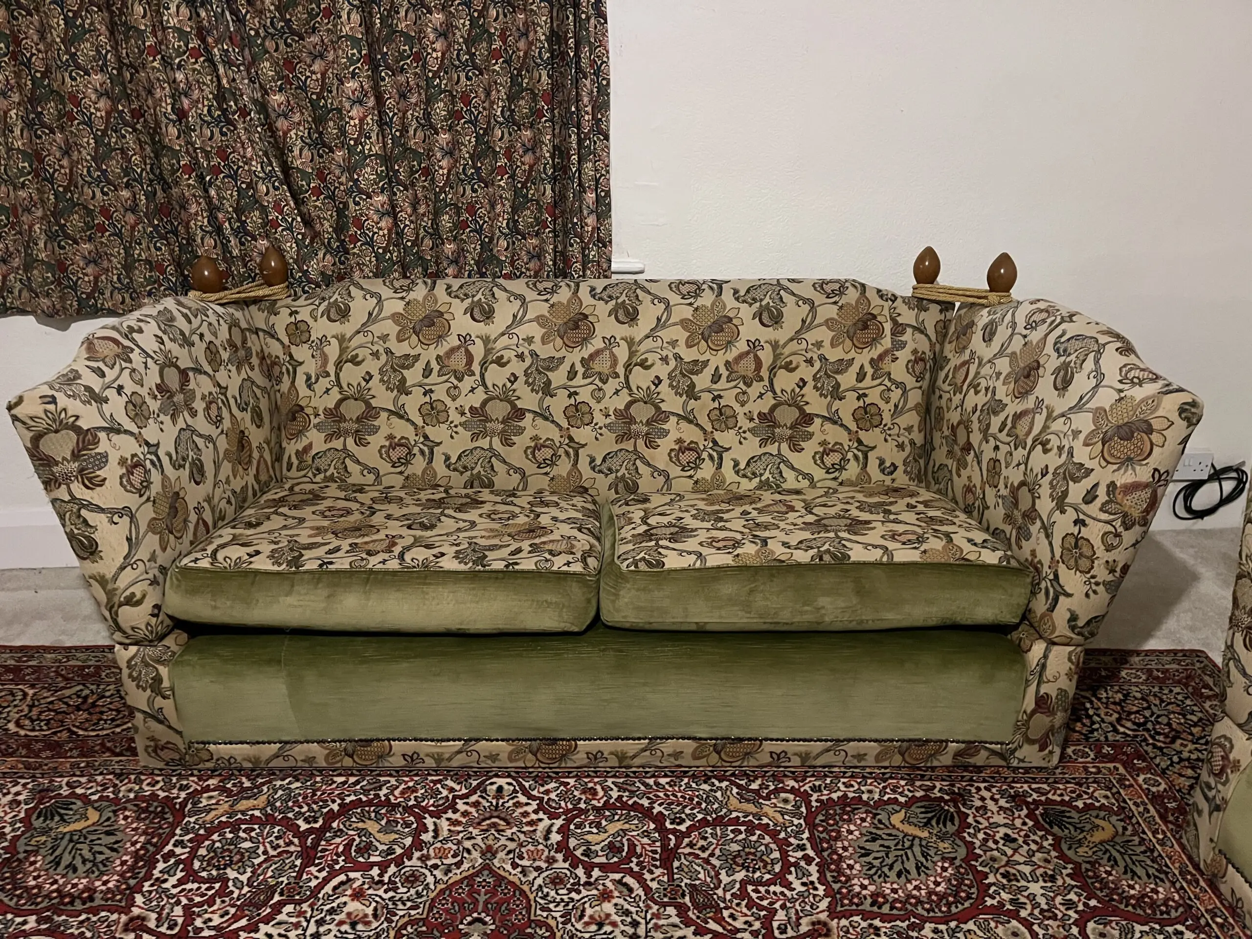– Beautiful floral fabric, with a green velvet pairing.