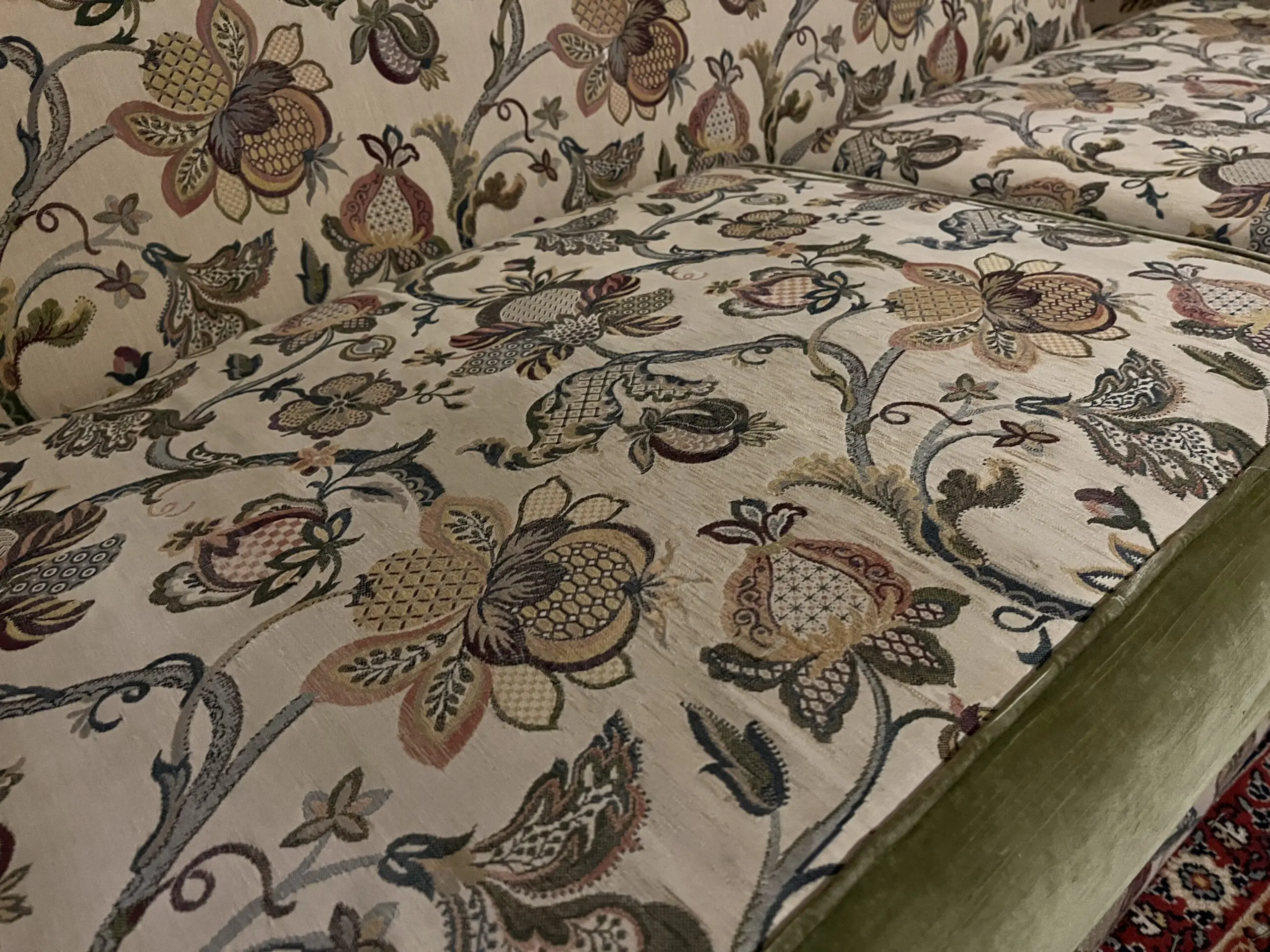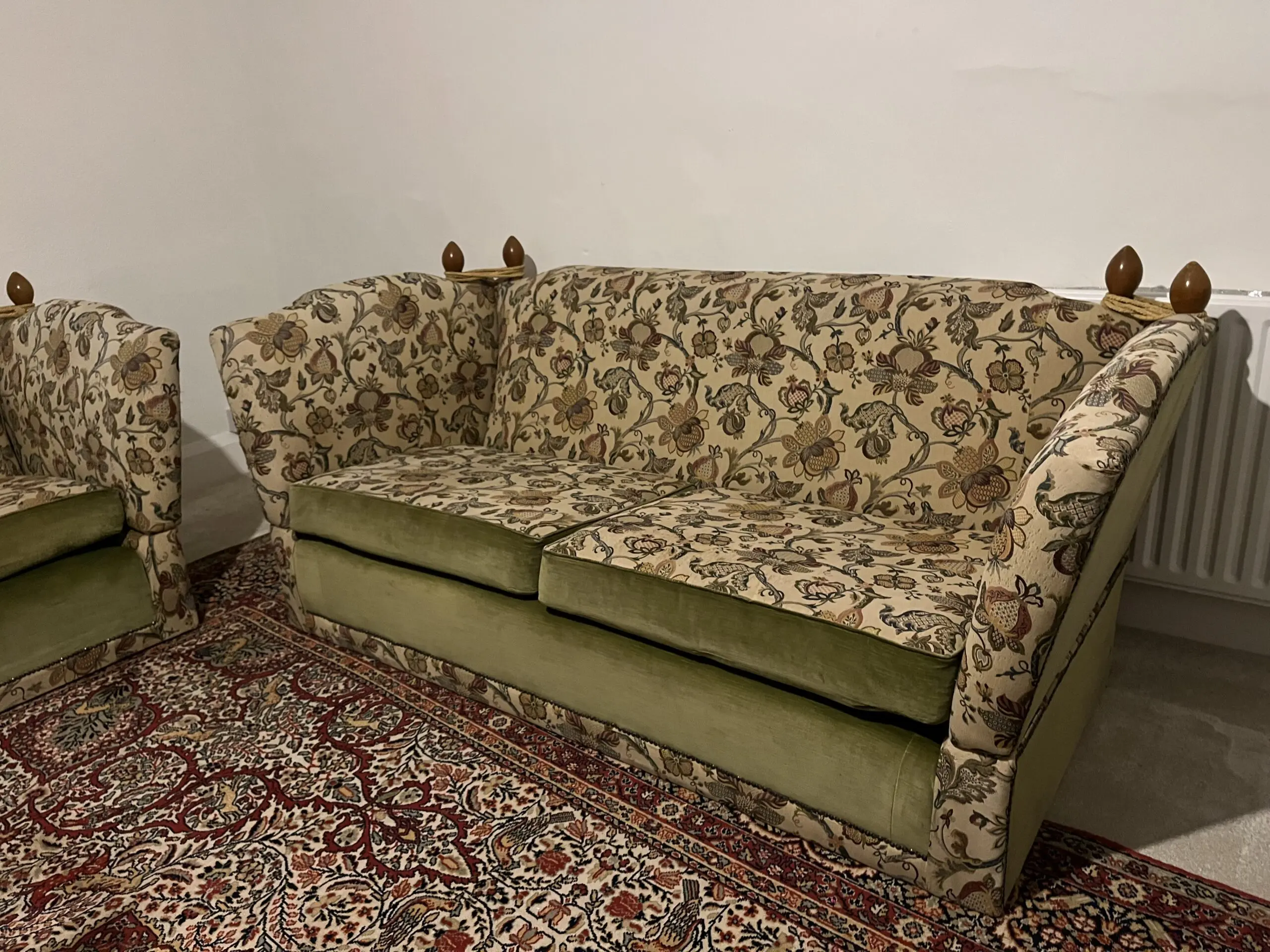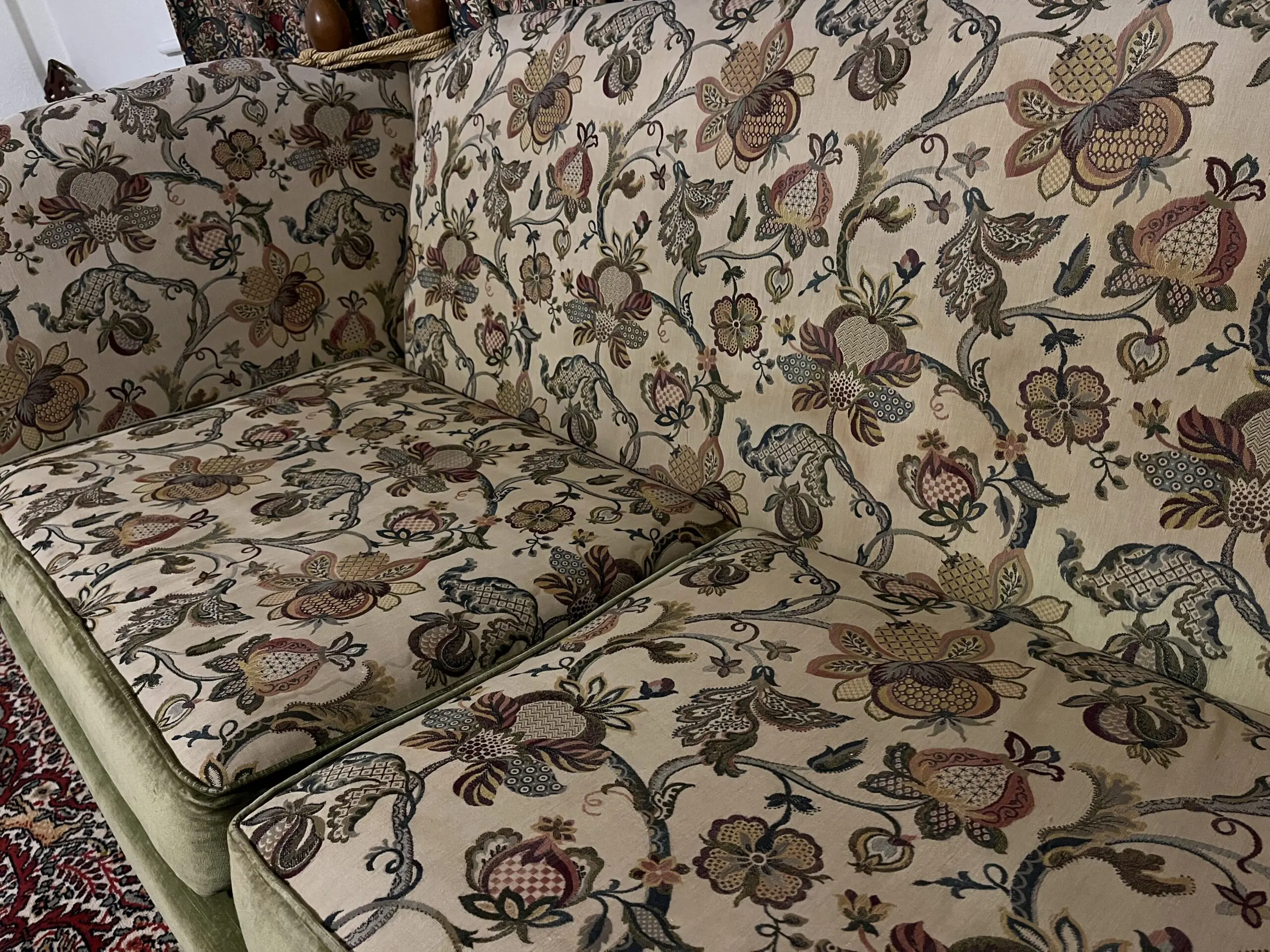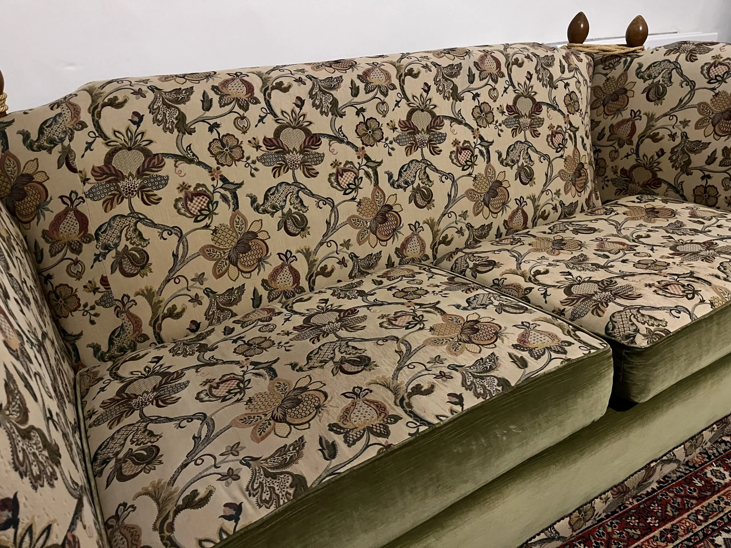– Beautiful floral fabric, with a green velvet pairing.