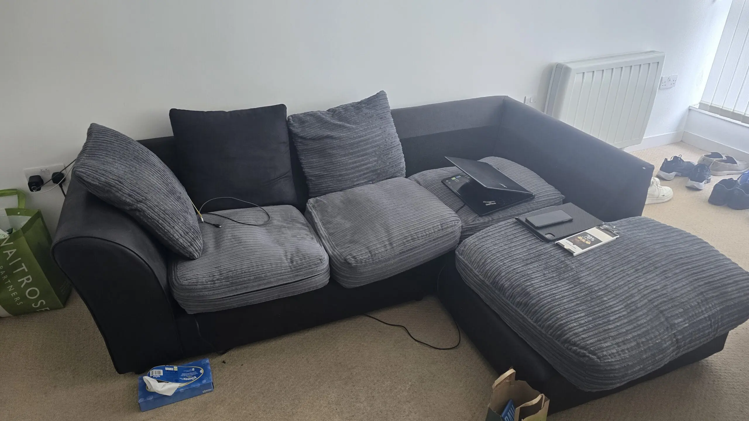 2 interlocked pieces. Good condition. Can be unzipped and washed in washing machine. 3 cushions available.