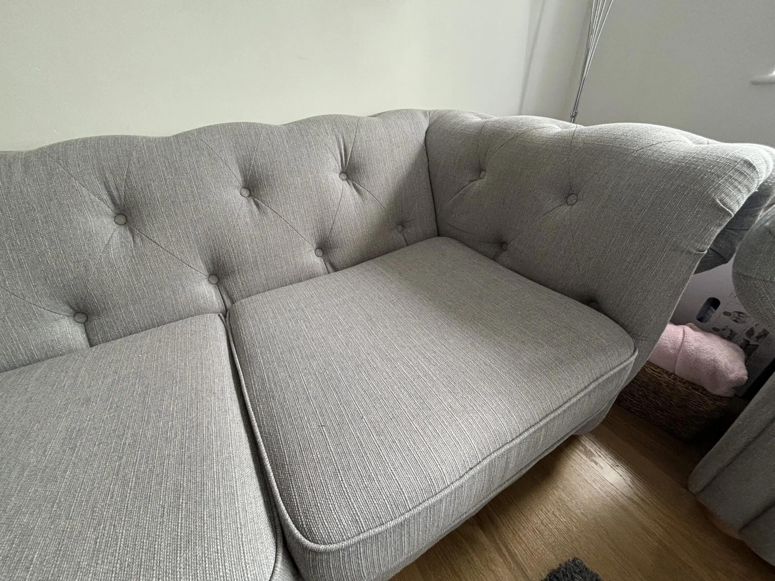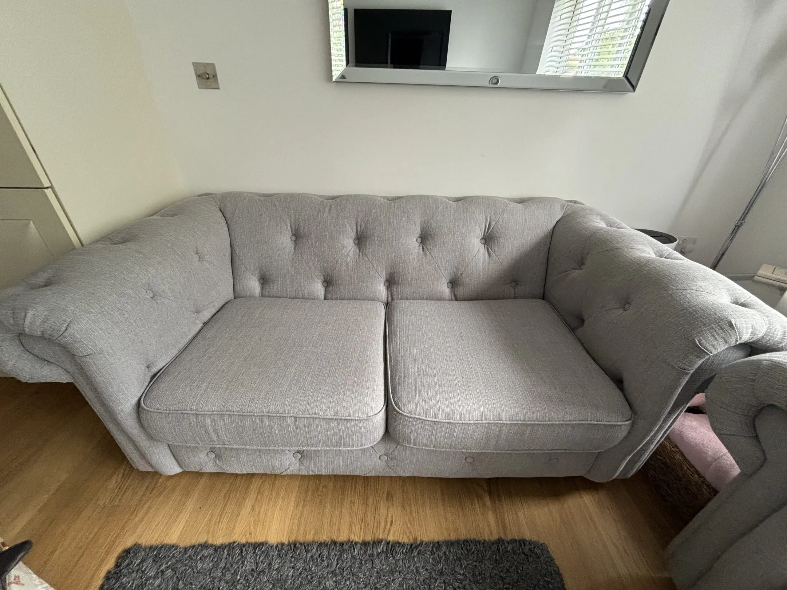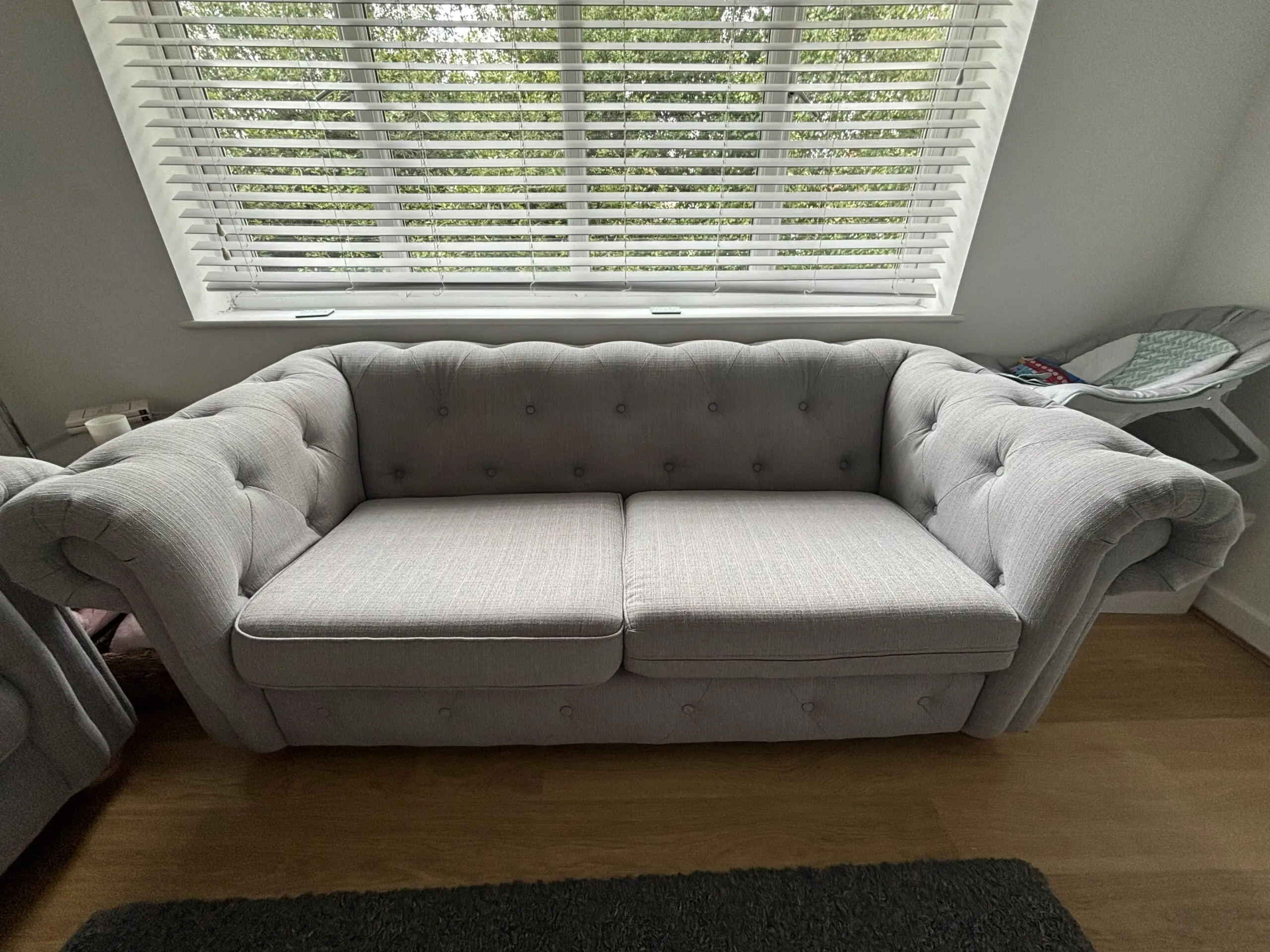 Selling a gently used 2 seater and 3 seater sofa. DFS Belair in Ash grey with light wooden feet.