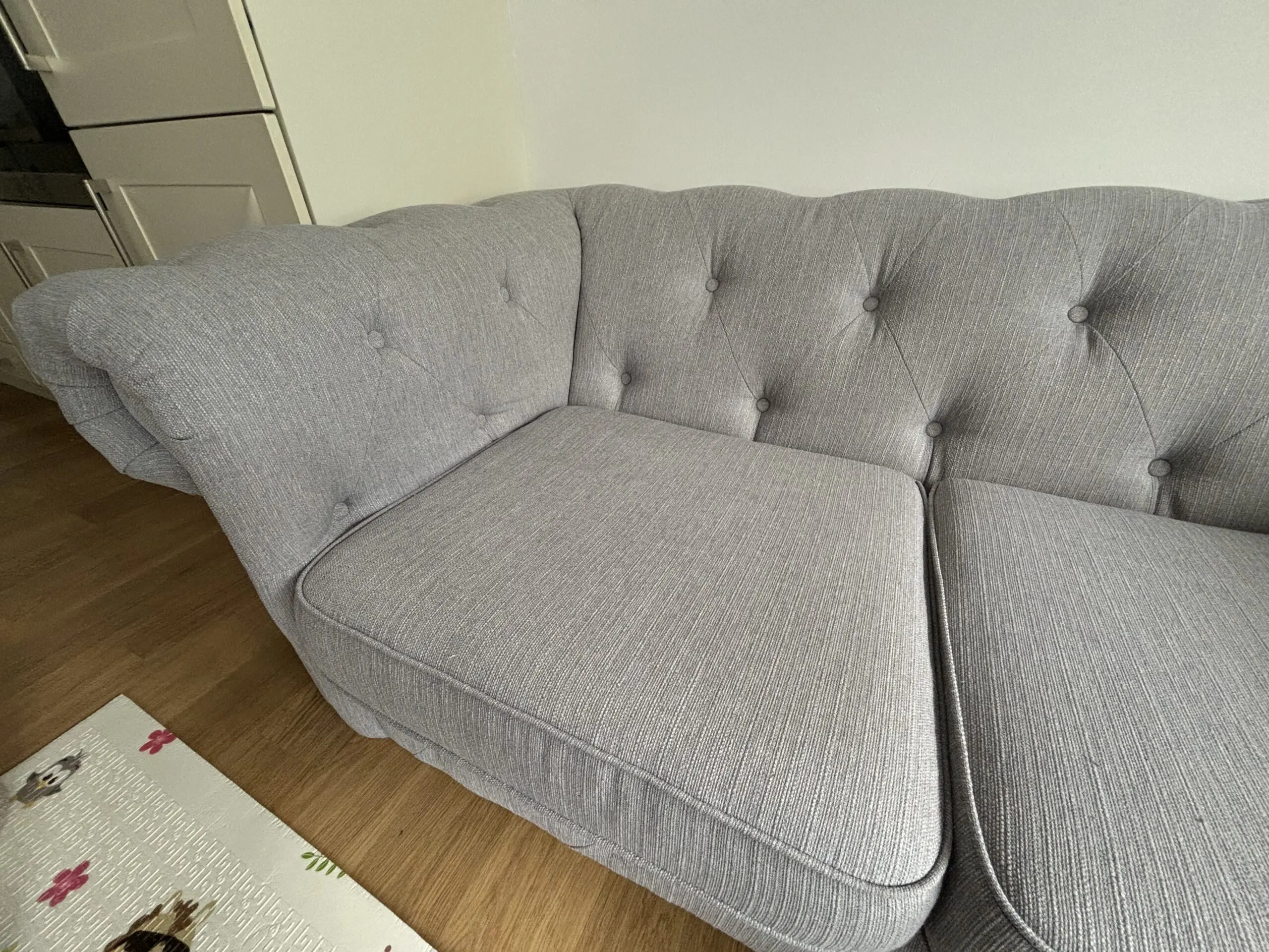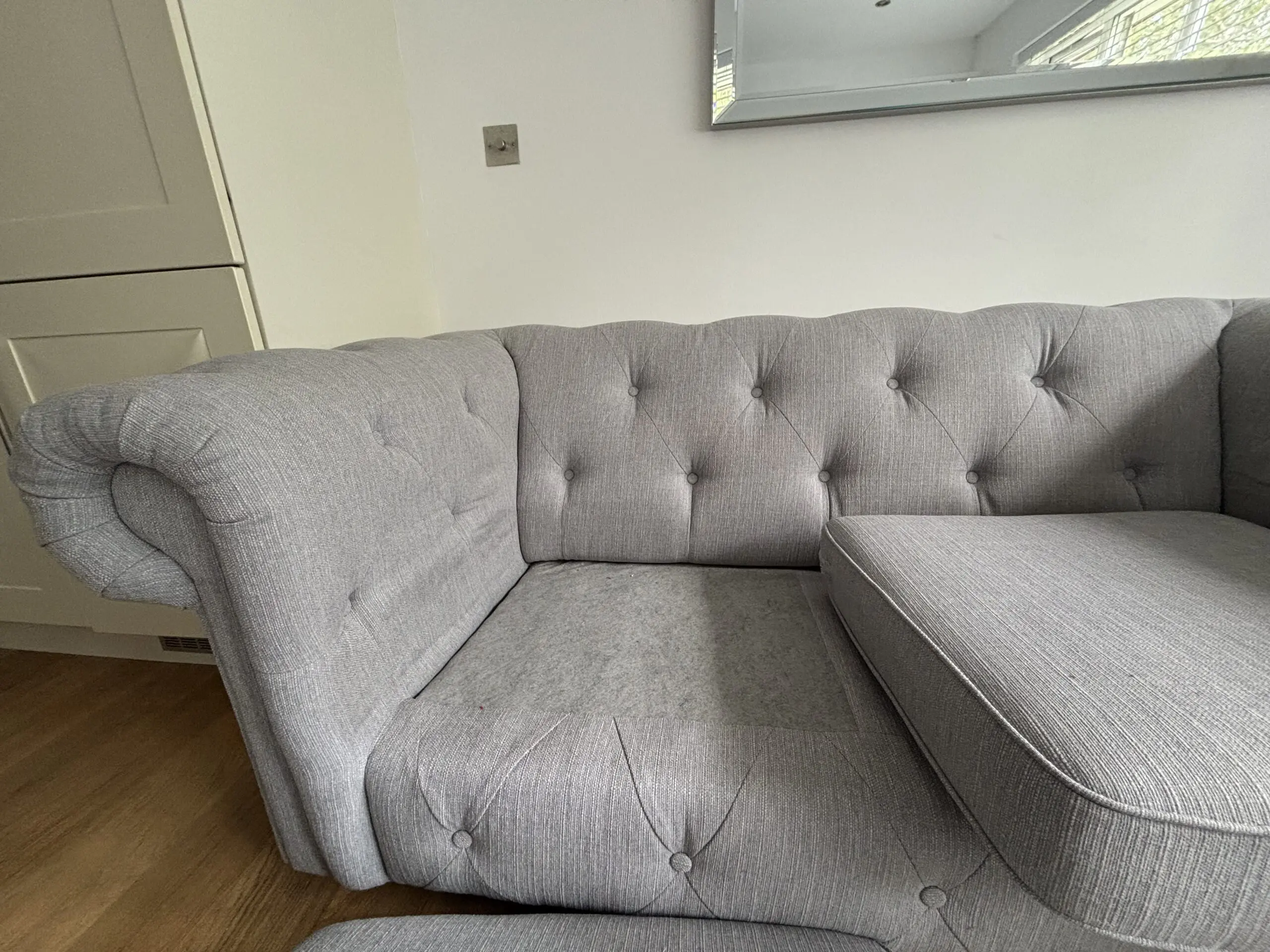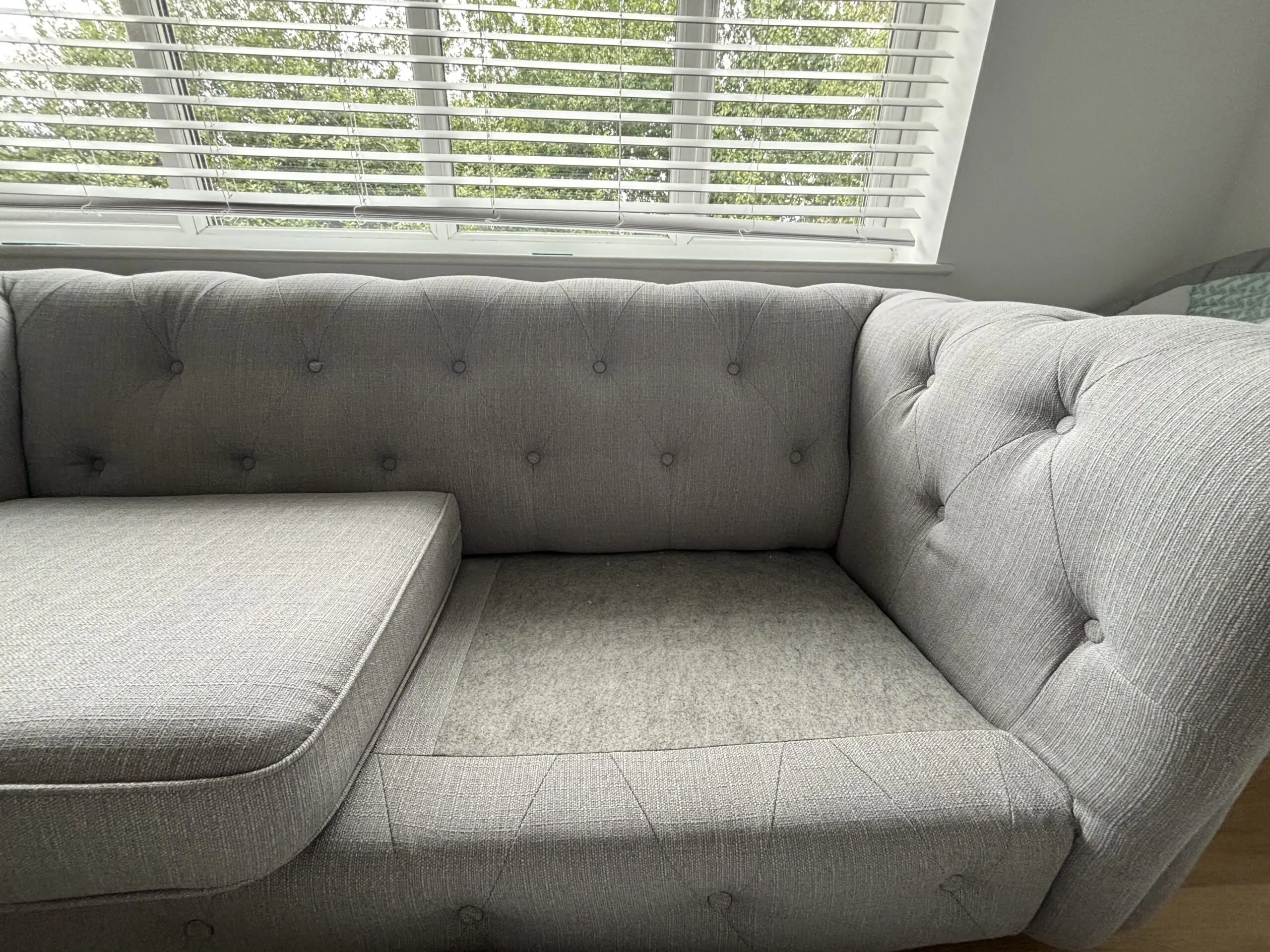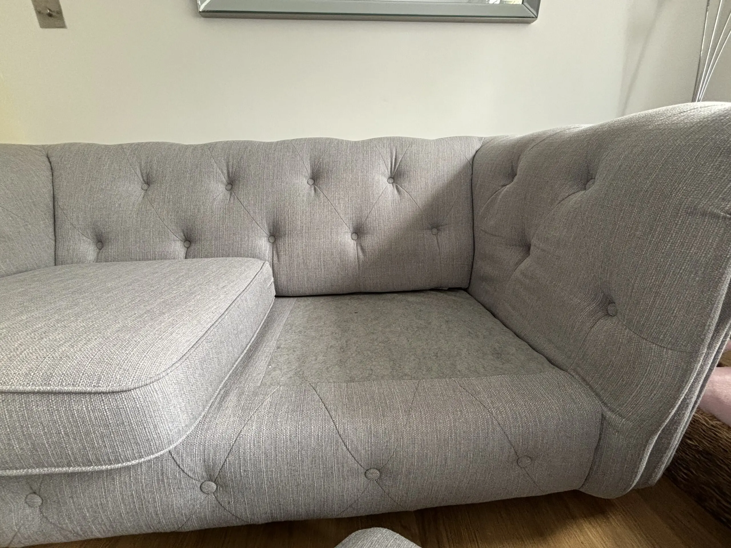 Selling a gently used 2 seater and 3 seater sofa. DFS Belair in Ash grey with light wooden feet.