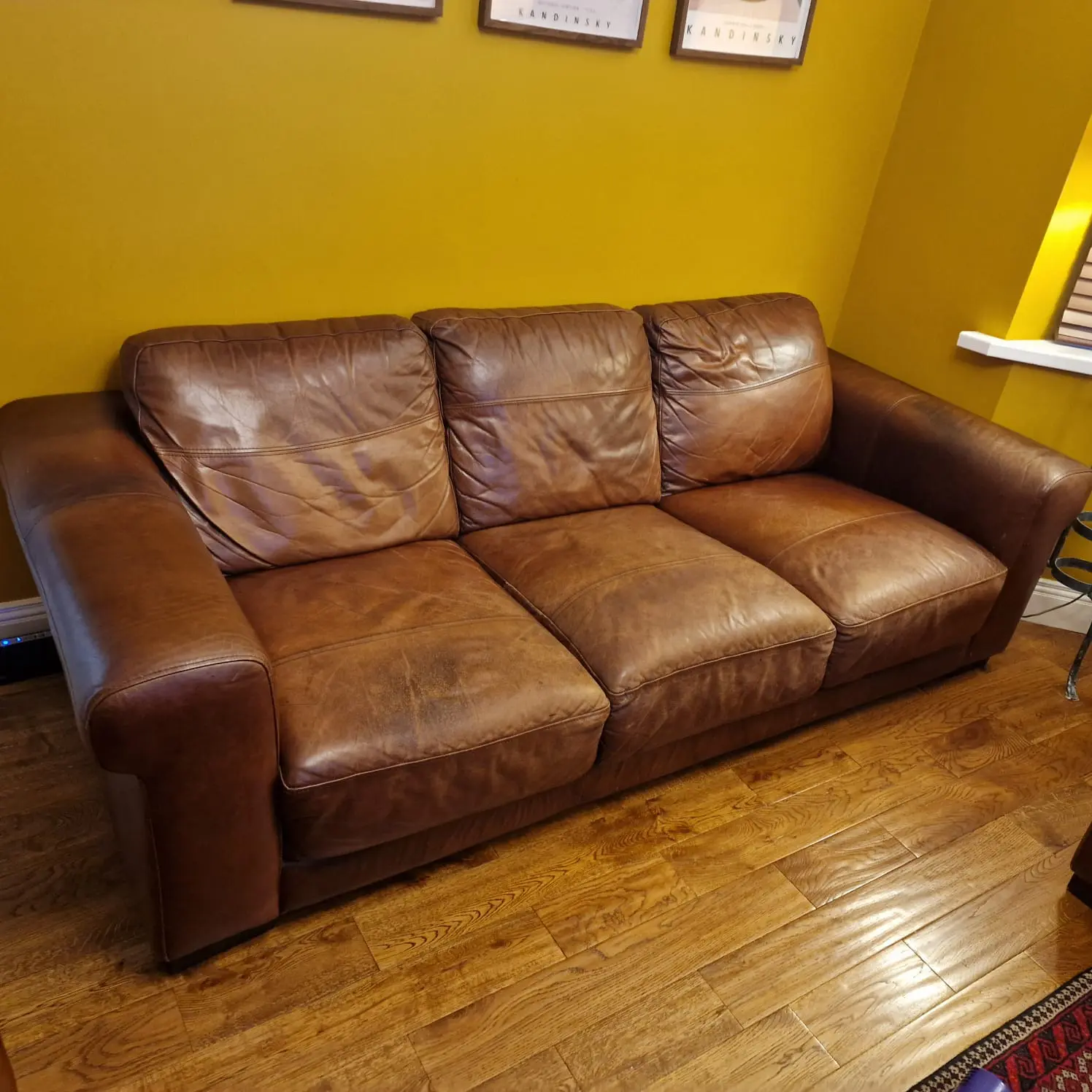 Quality brown leather sofa set from Furniture Village, including a comfortable 3-seater and two matching armchairs. Well-maintained, used but in very good condition with plenty of life left. No pets, no smoking household. Perfect for living rooms, spare rooms, or rental properties. Ready for collection from Southampton — open to reasonable offers.