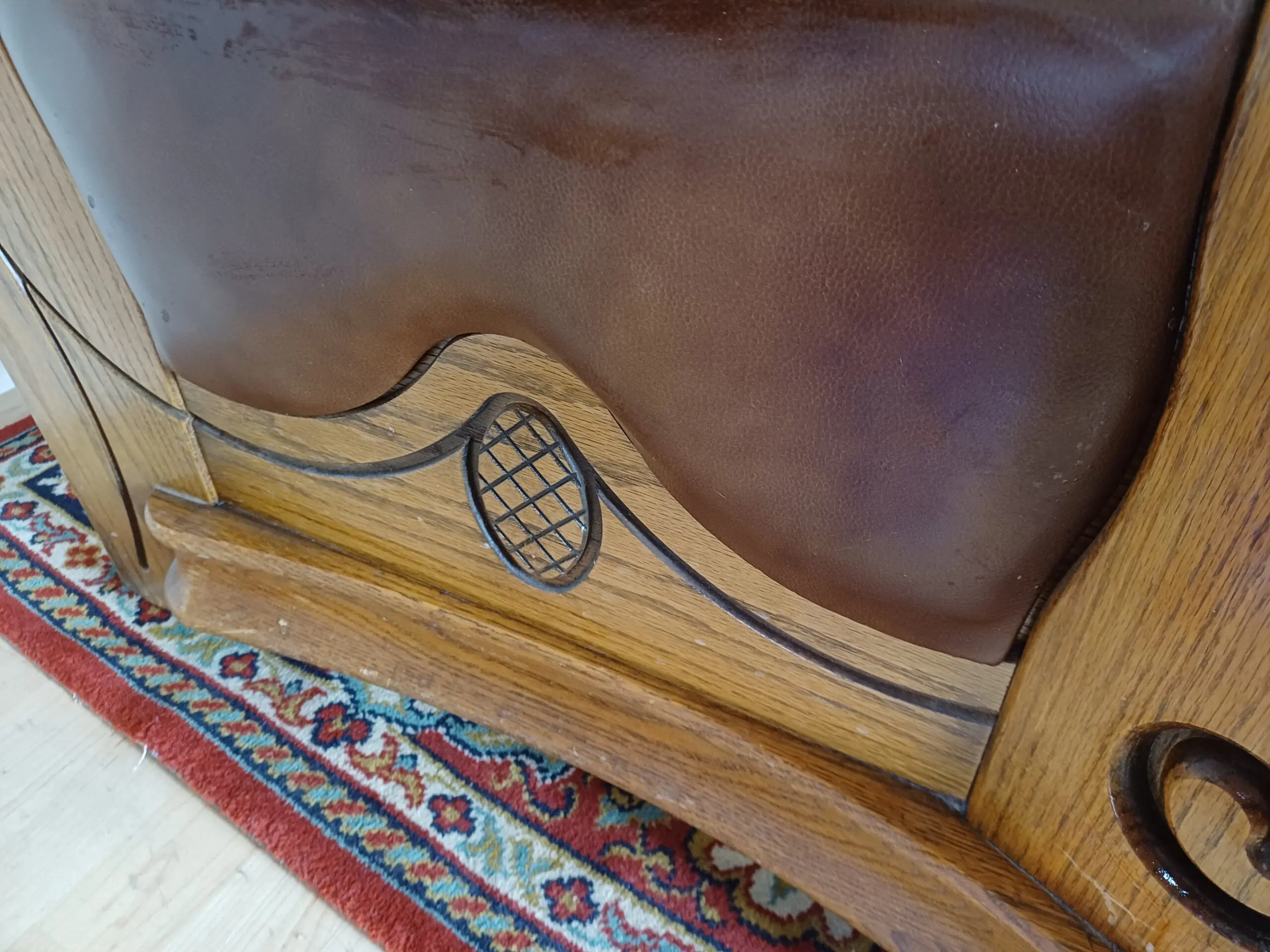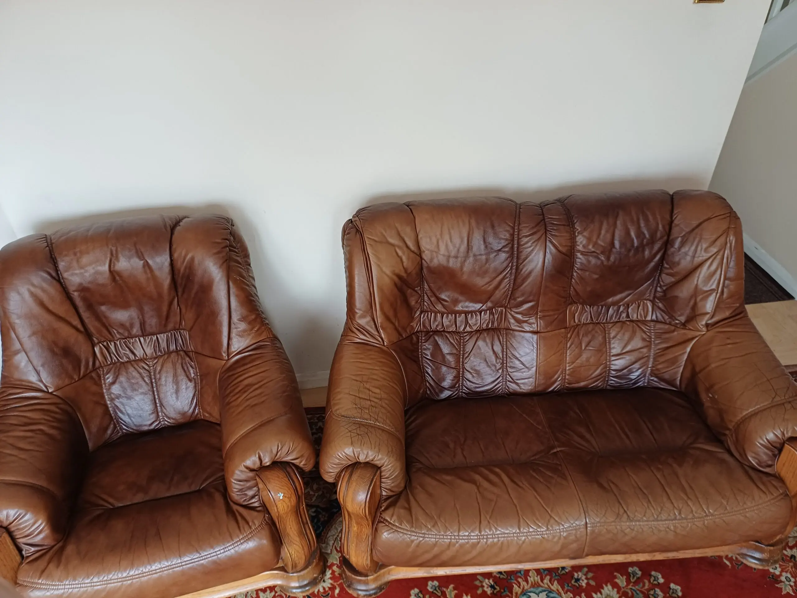 Used leather suite for sale comprising 1x two-seater sofa and 1x armchair.