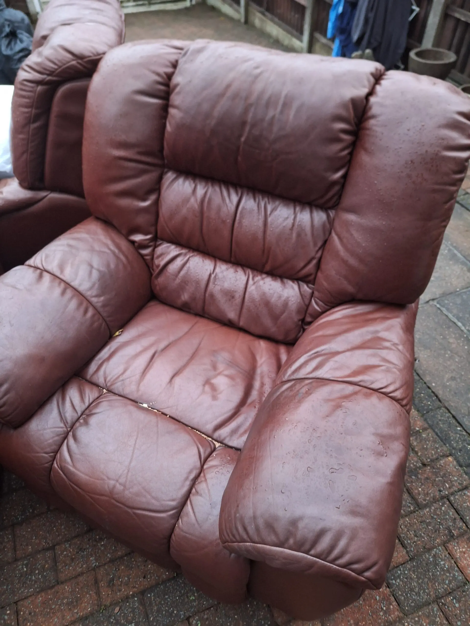 2 Seater and 2 singles seater brown original leather. Just needs cleaning