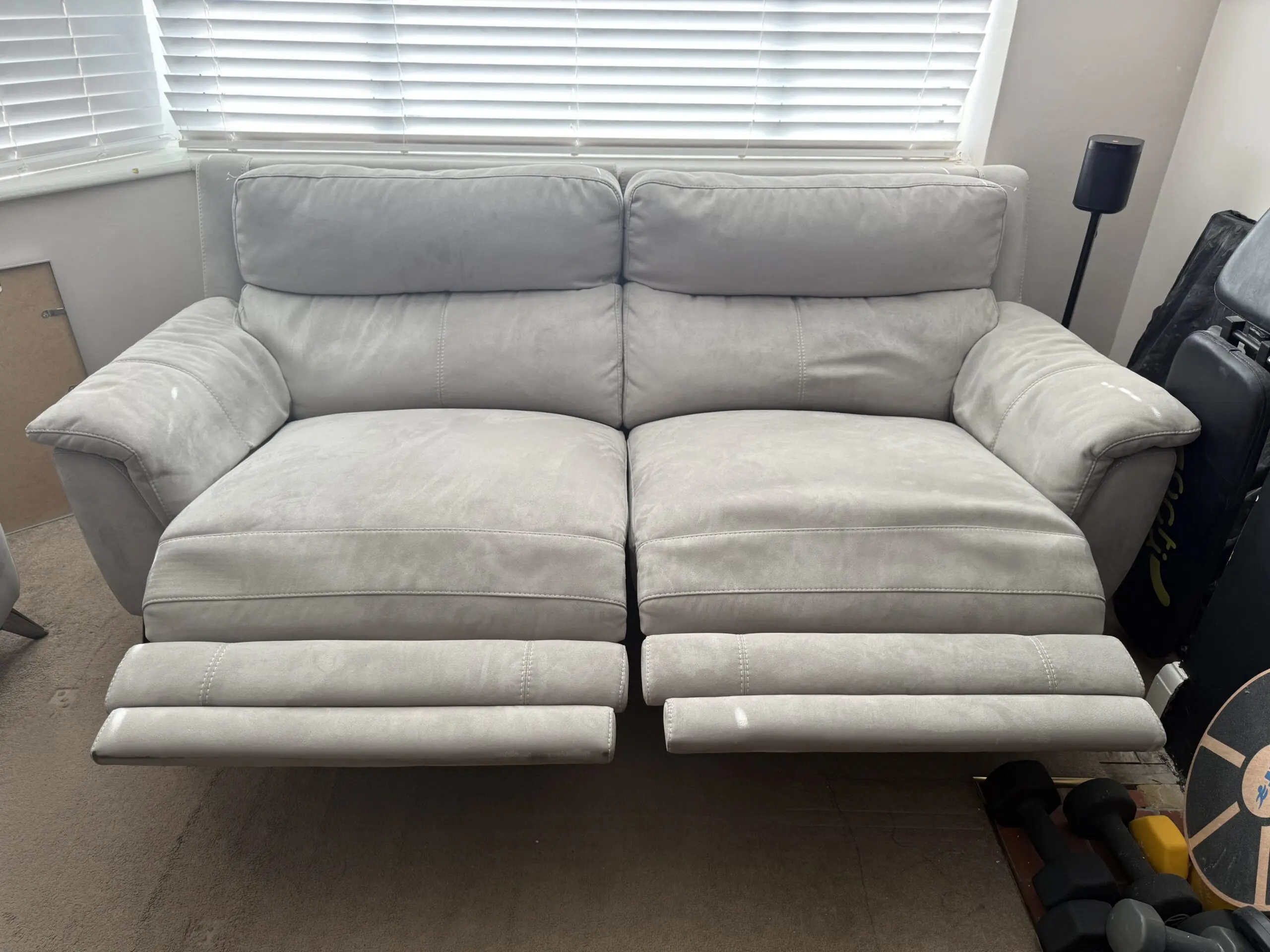 3 seater sofa is a power recliner. It’s fully operational however there is a sound from the underside when reclined. Suspect that something needs to be tightened.