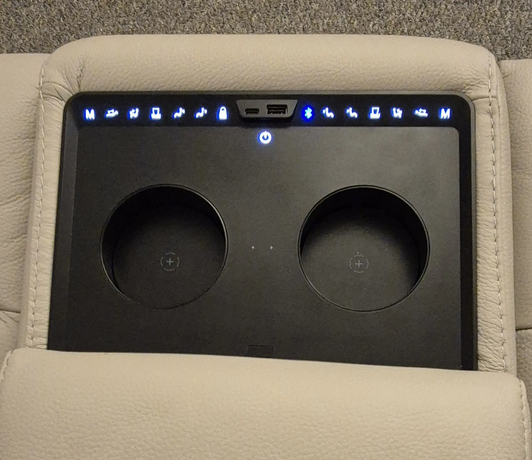 Two cup holders which covert to mobile phone chargers, has USB and type C ports built in.