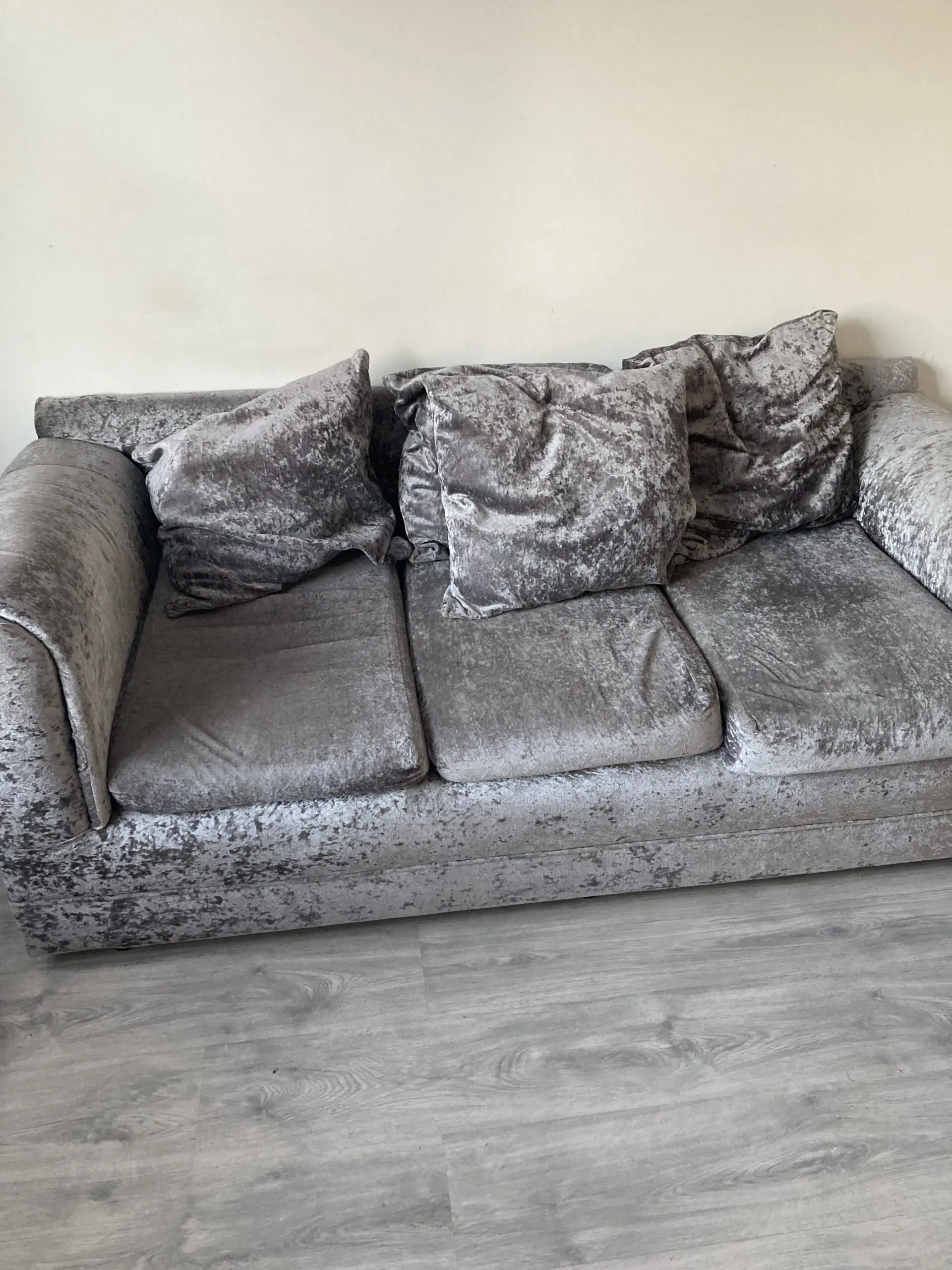 Crushed velvet grey sofa