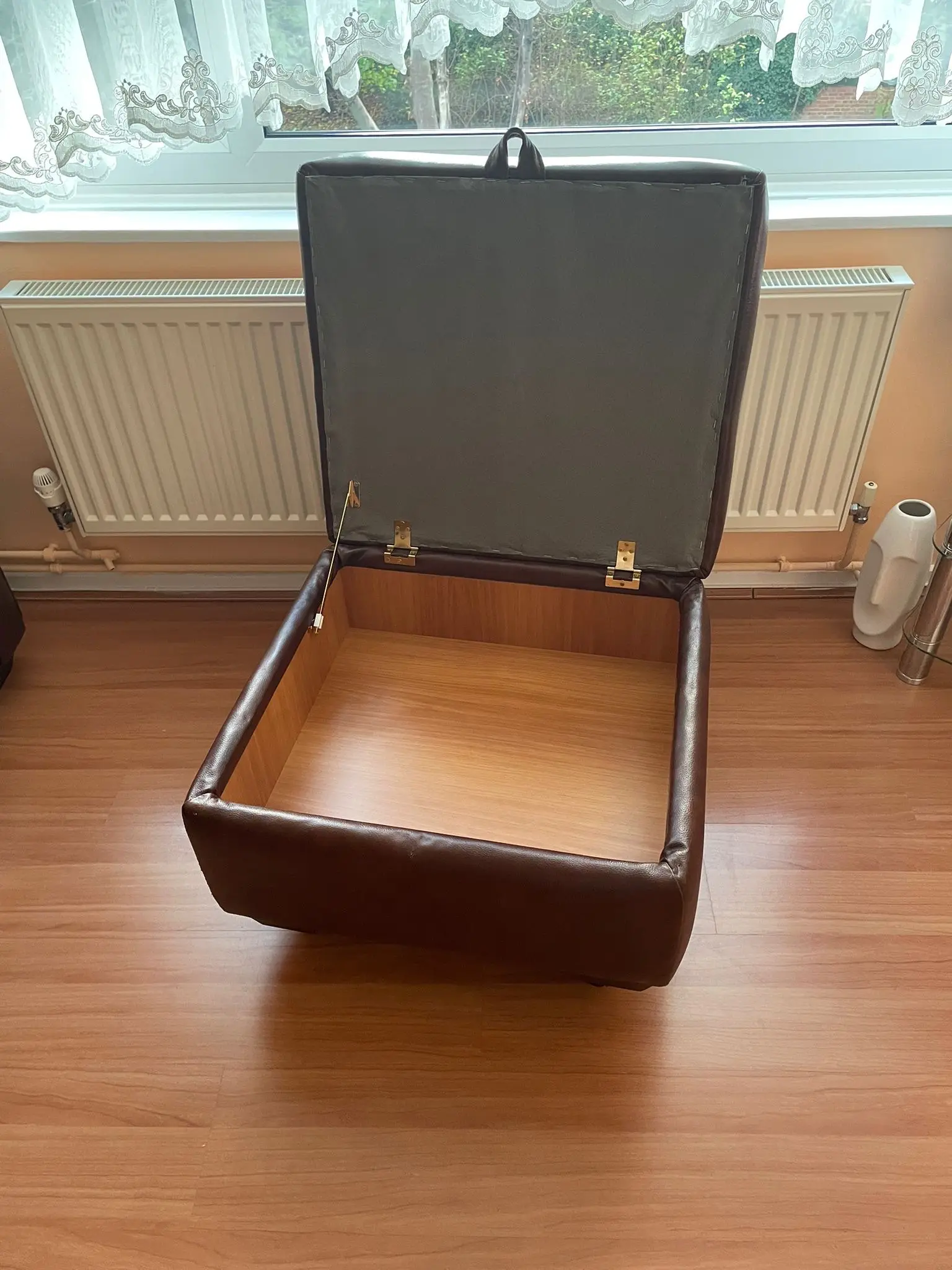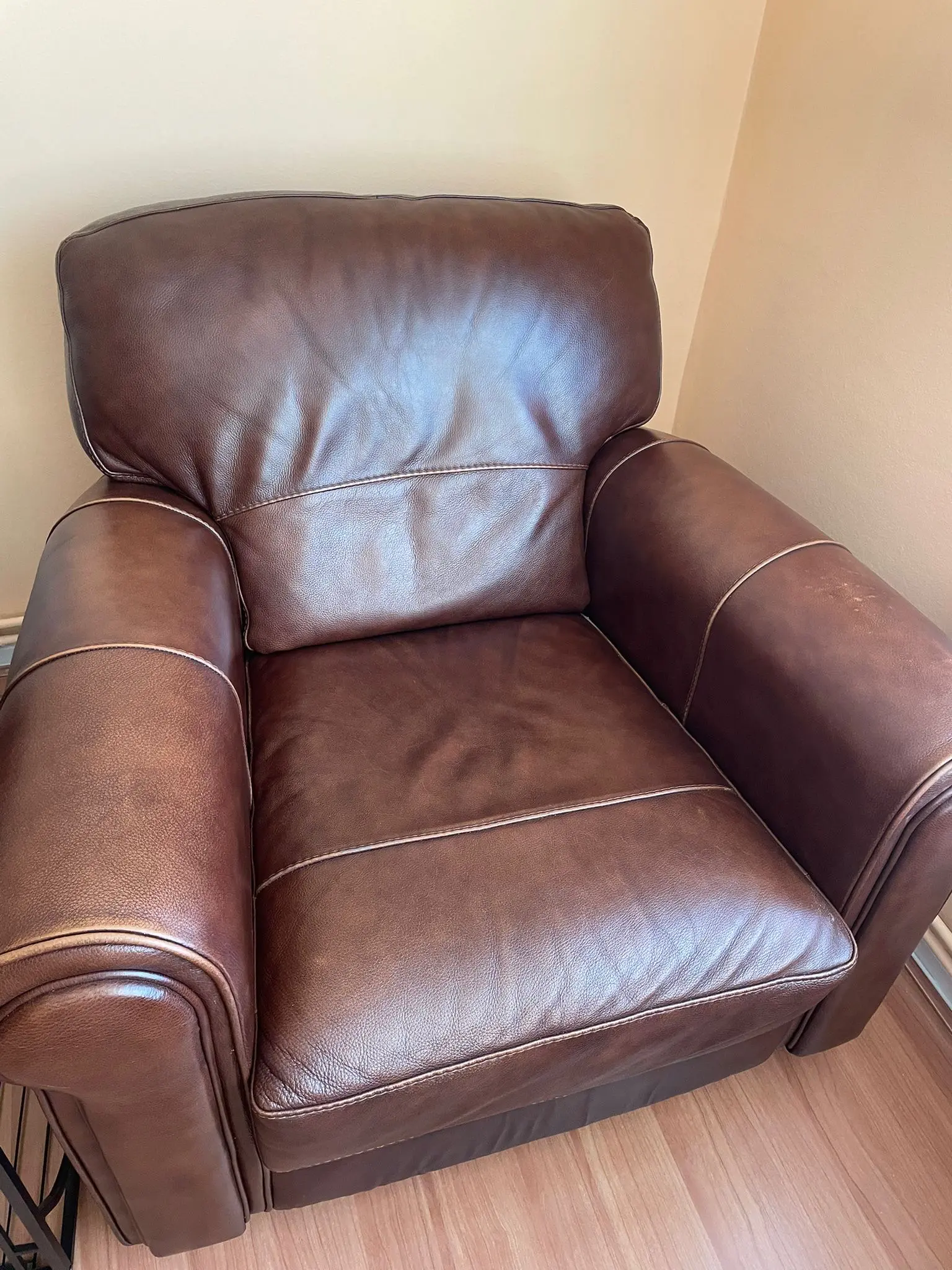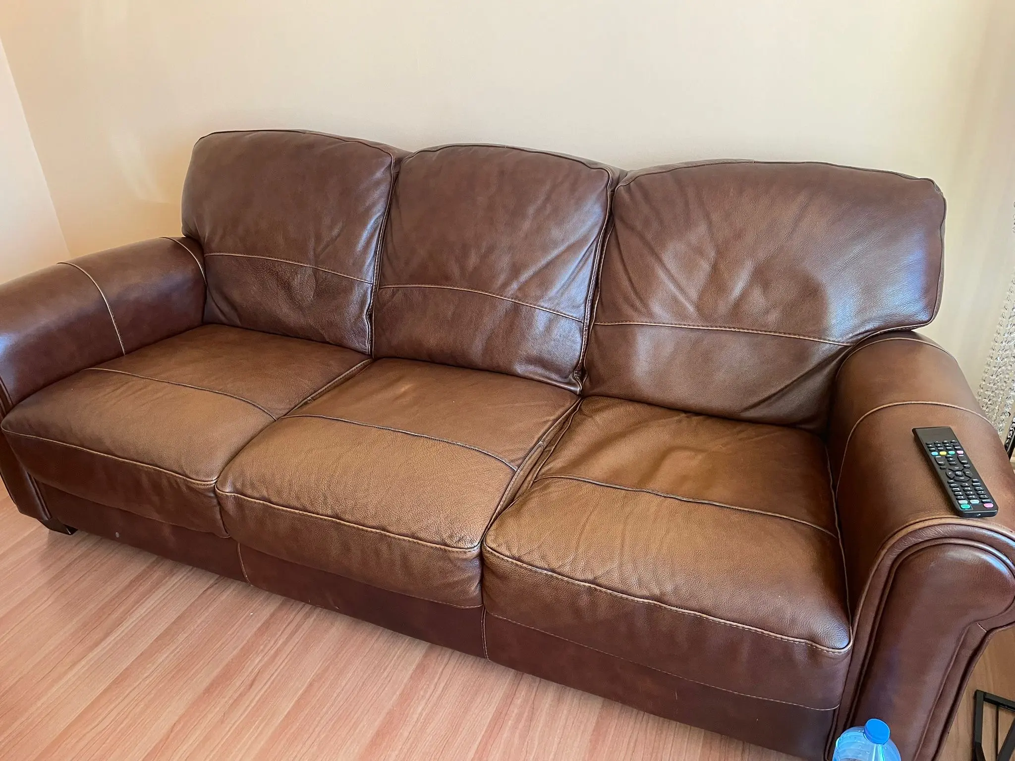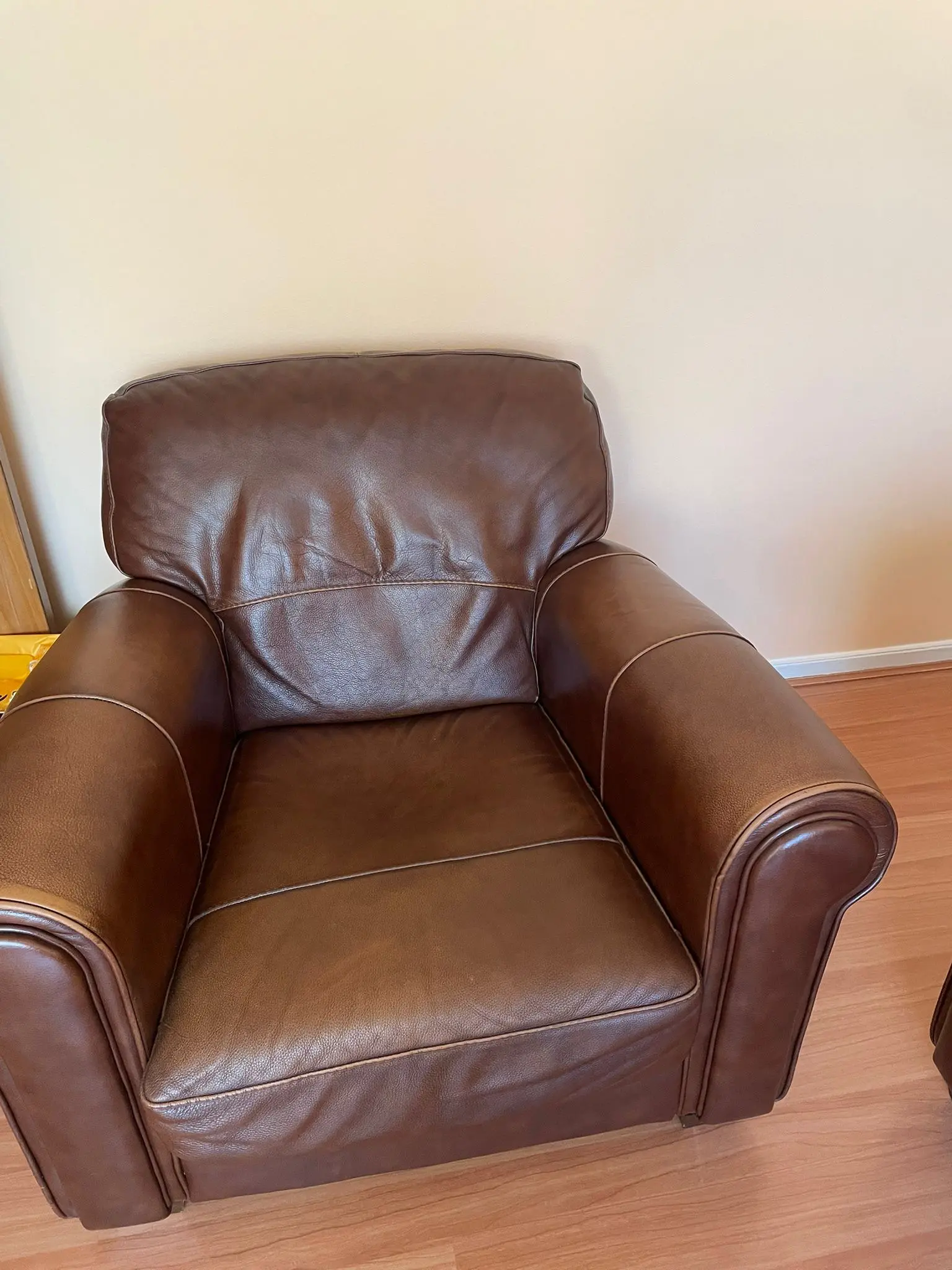 3 seater, 2x 1 seaters and a matching ottoman all brown leather in good condition