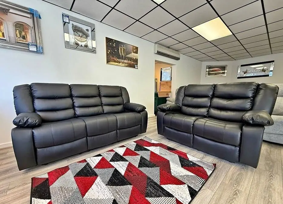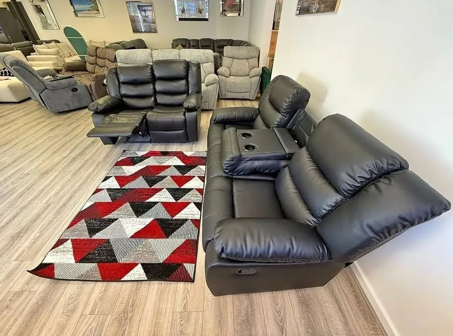 DFS 3 Seater Sofa And 2 Seater Recliner Sofa In Black Color