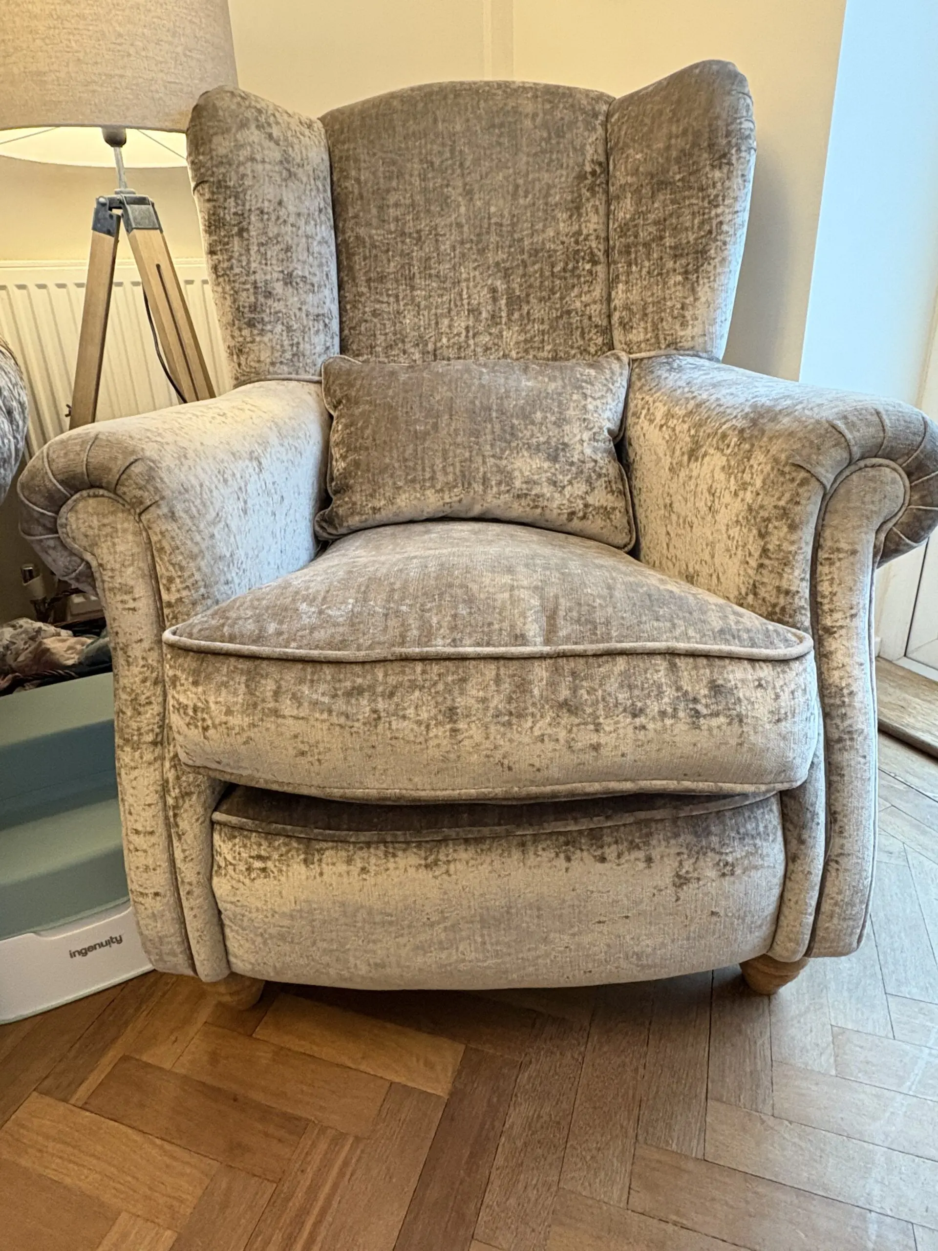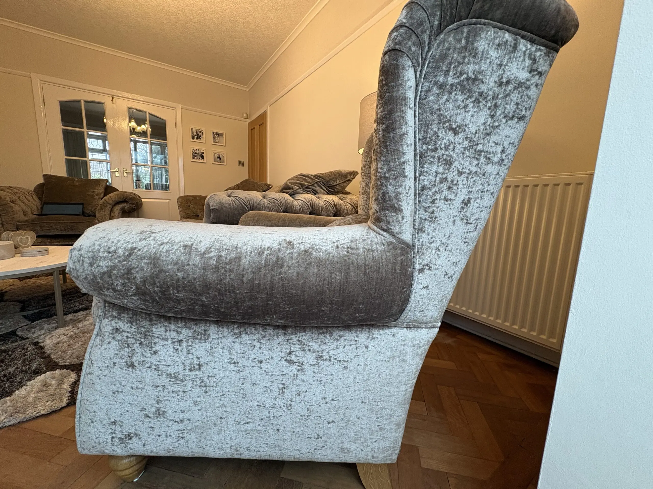 3 seater sofa, armchair, wingback chair and footstool (with storage)