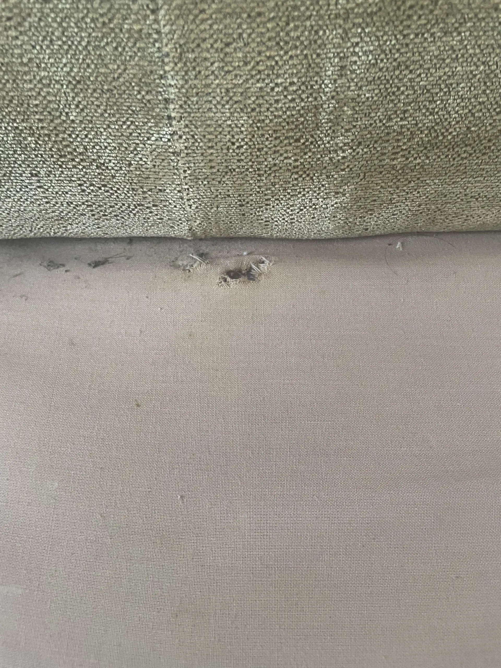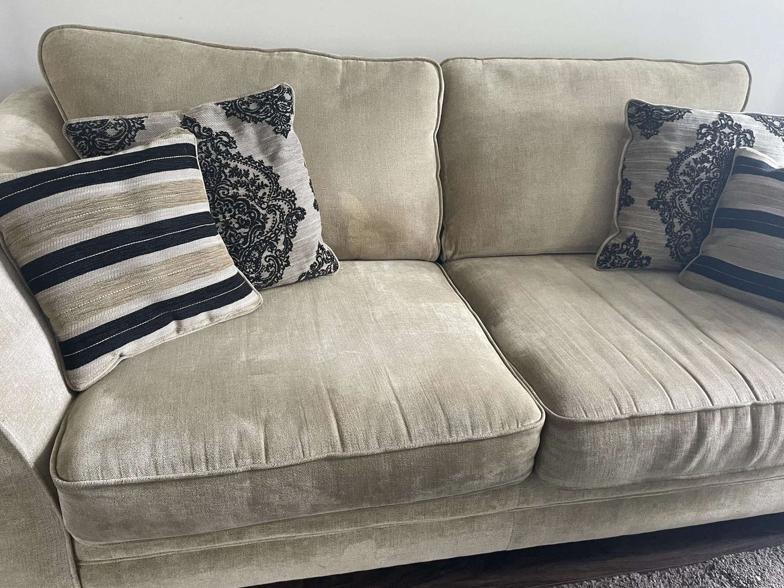 No flaws or stains. Only a tiny tear in the base of the 4 seater which you don’t even see when it’s covered with the base cushions.