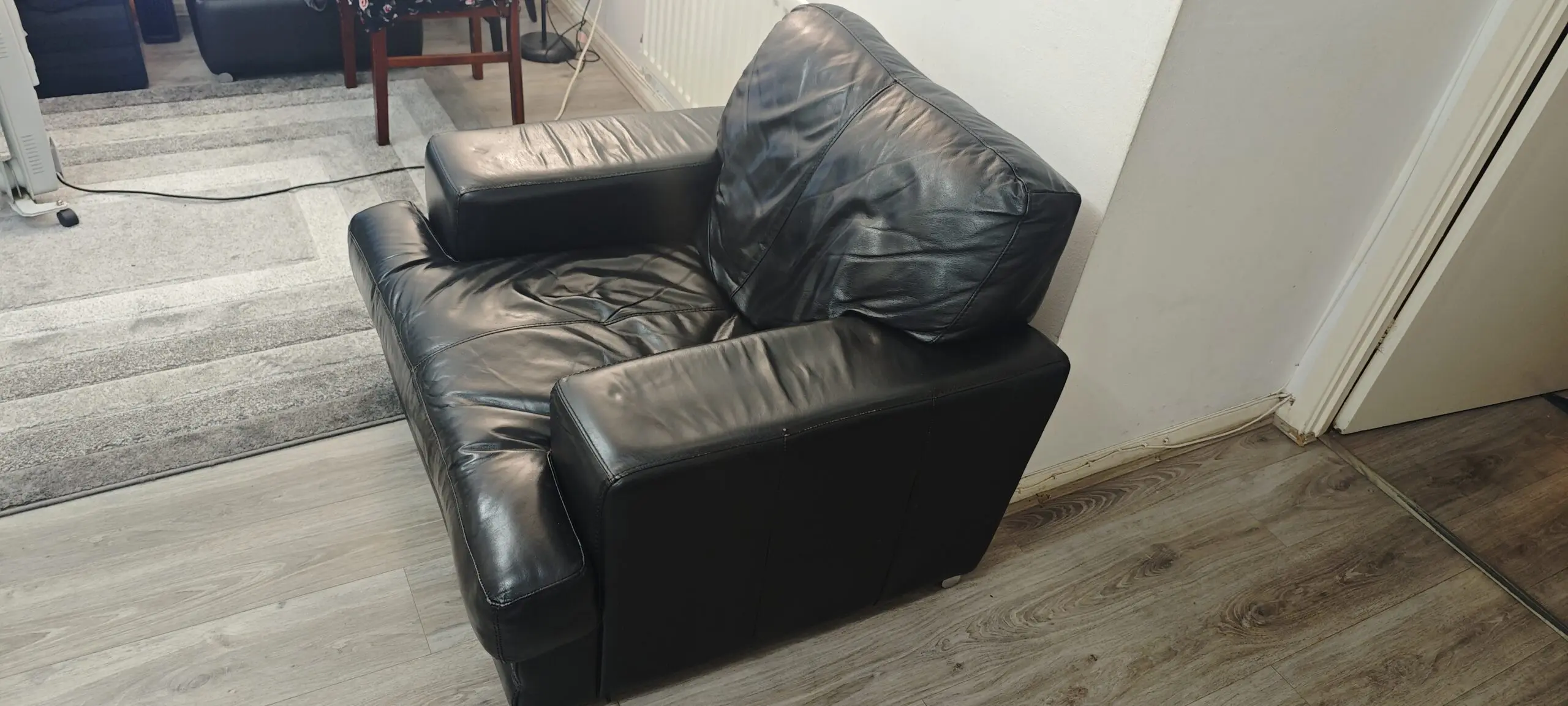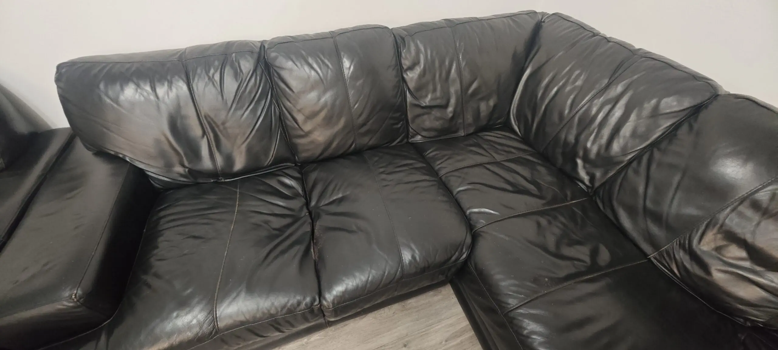 These sofa set was purchased in 2017 for £4000. The corner sofa has some visible wear and discolouration. The right side of the corner sofa the cushion goes in slightly. Has a small hole on the corner sofa (refer to pictures) The 2 seater and 1 seater are in much better condition with hardly any wear. I’ve attached any pictures of any visible marks.