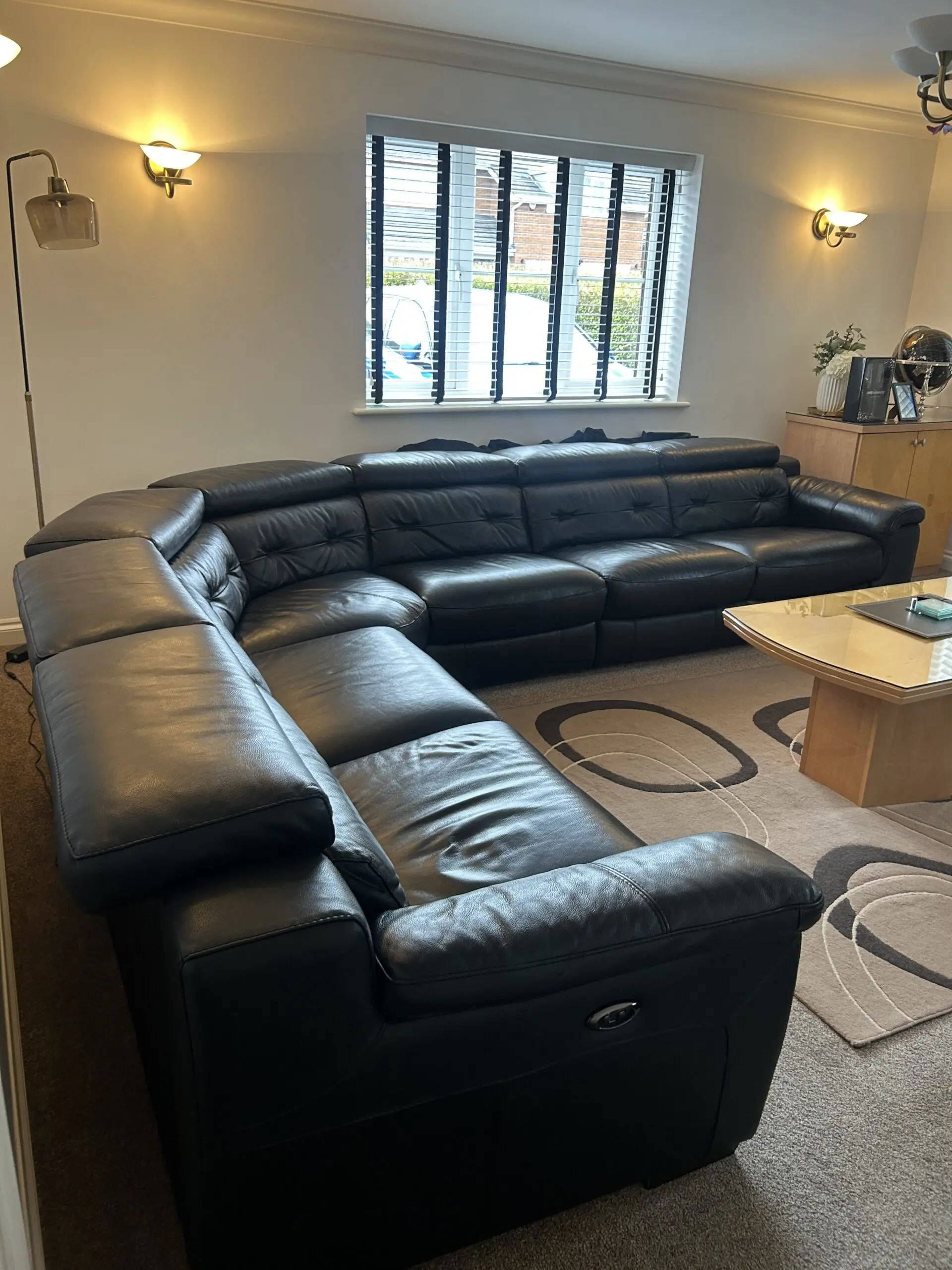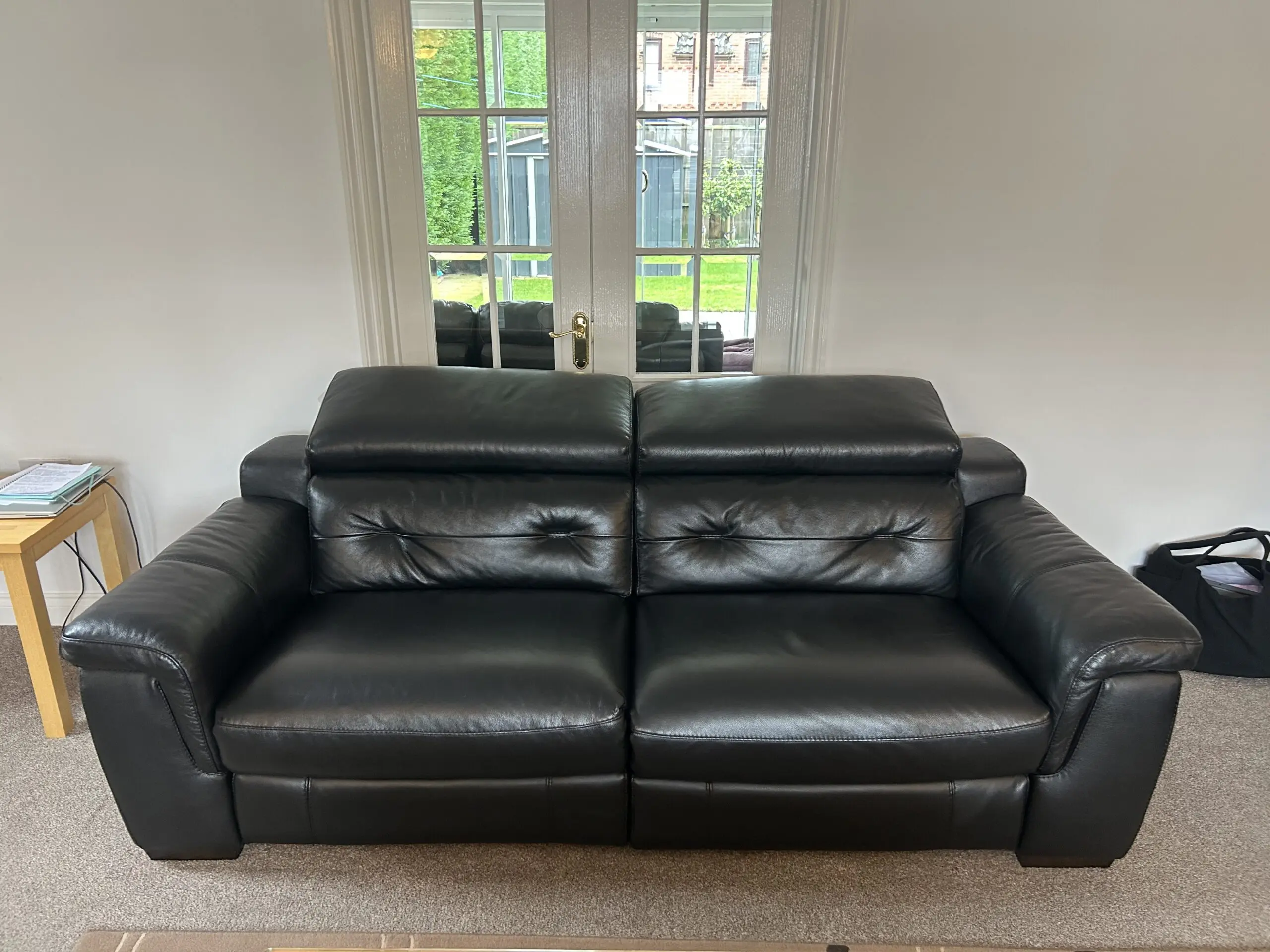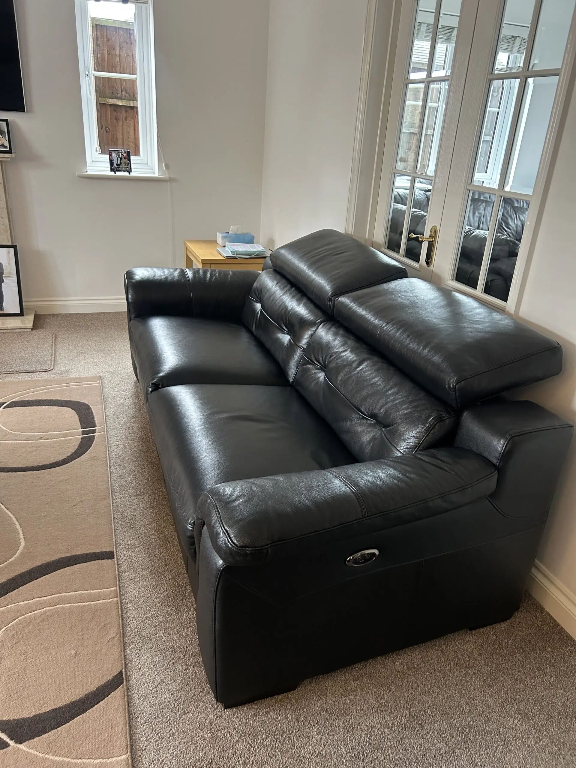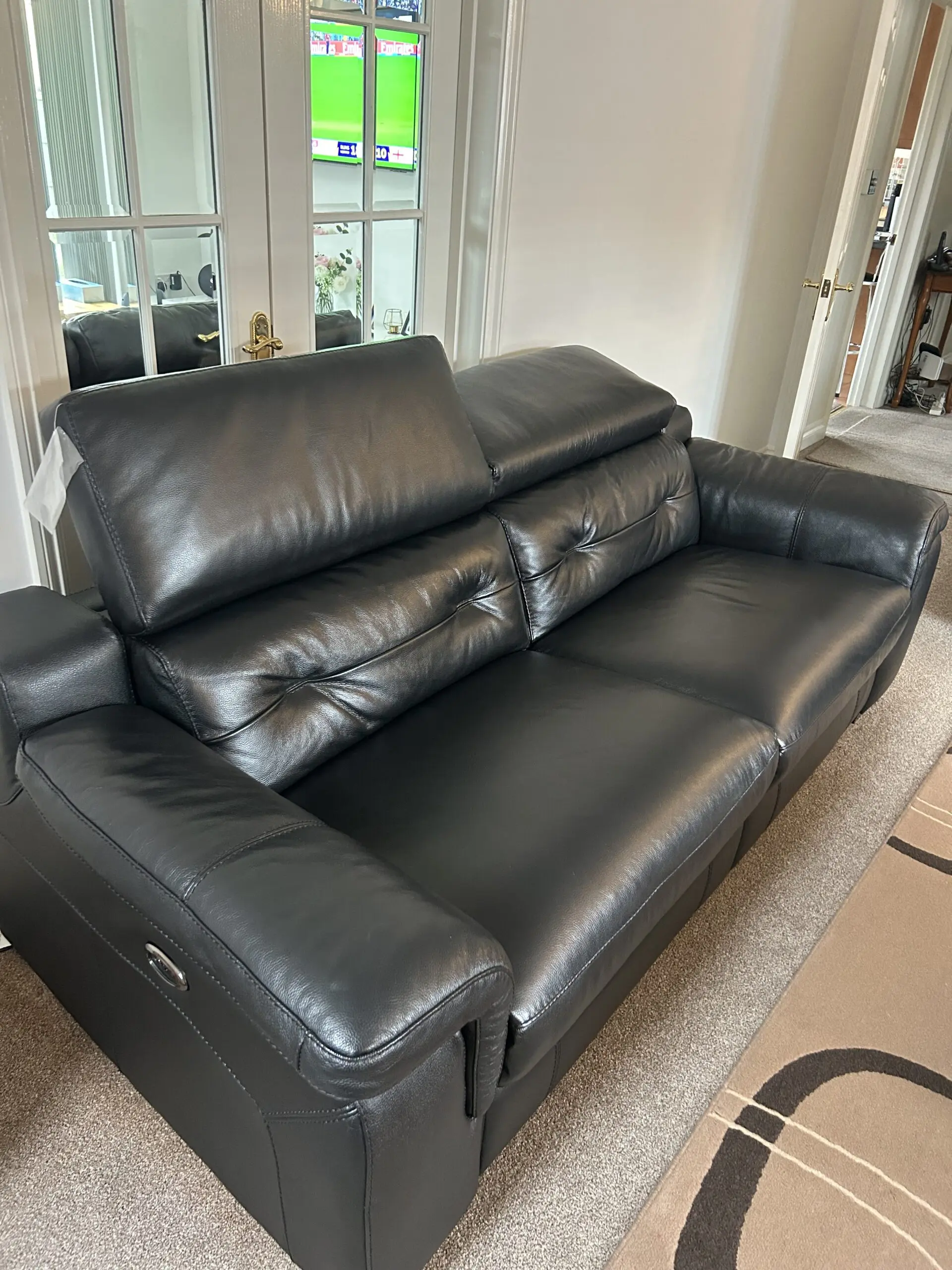 Beautiful DFS black leather electric recliner sofa set for sale due to redecorating.