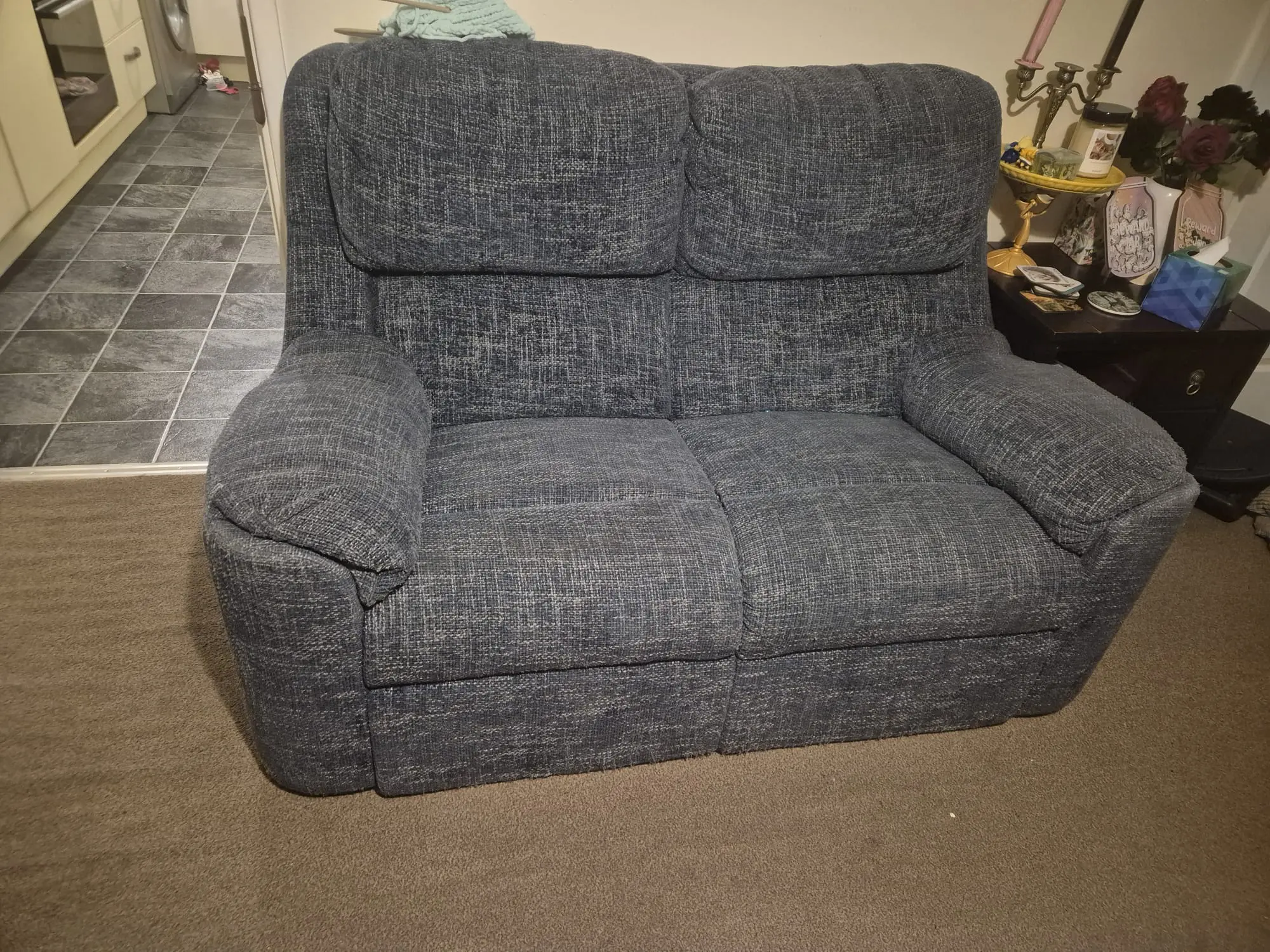 Pair of blue sofa’s from DFS, still in pretty good condition, although the 3 seater doesn’t have castors.