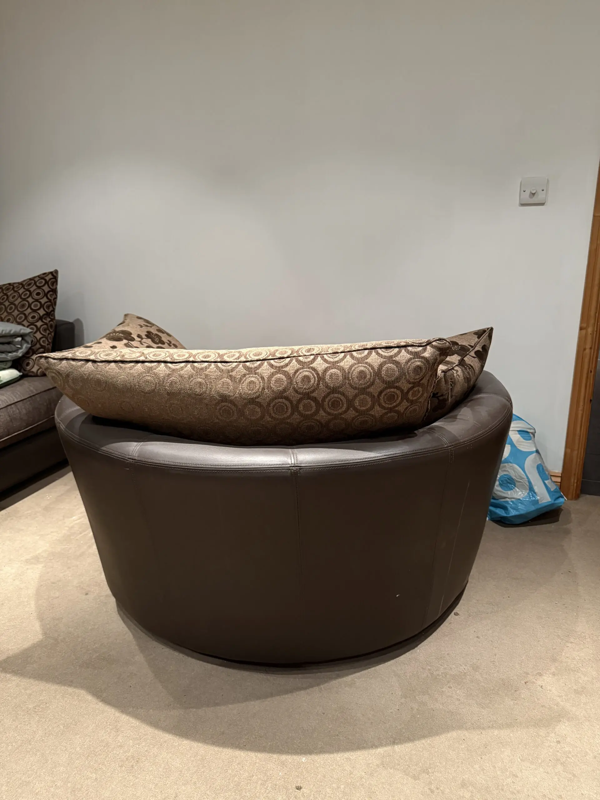 This set has barely been used, lots of life left in these sofas very comfy and spacious can fit 7/8 people on all of this together.