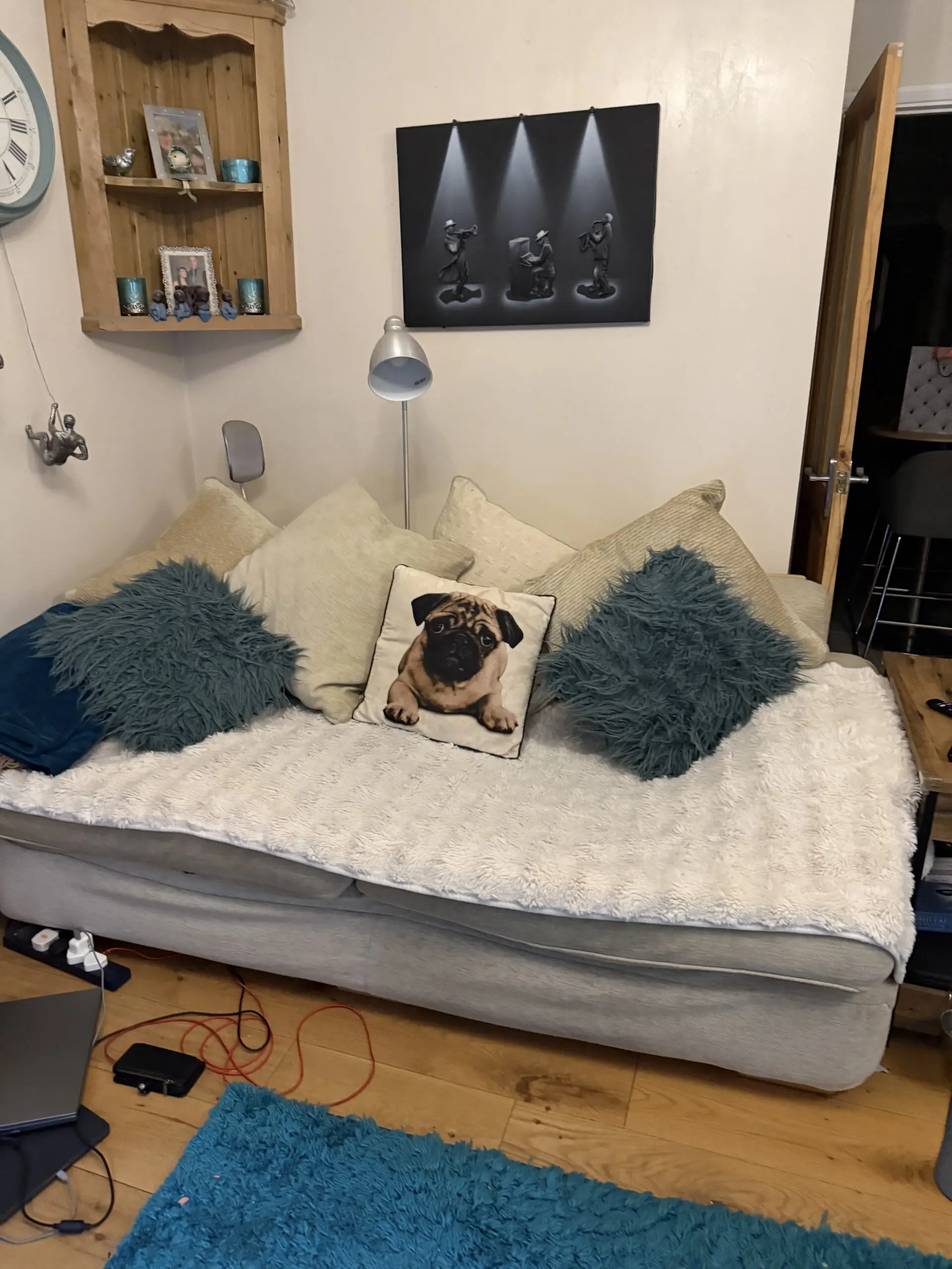 Lovely and comfortable , in good condition , can come with the throws we use to protect them