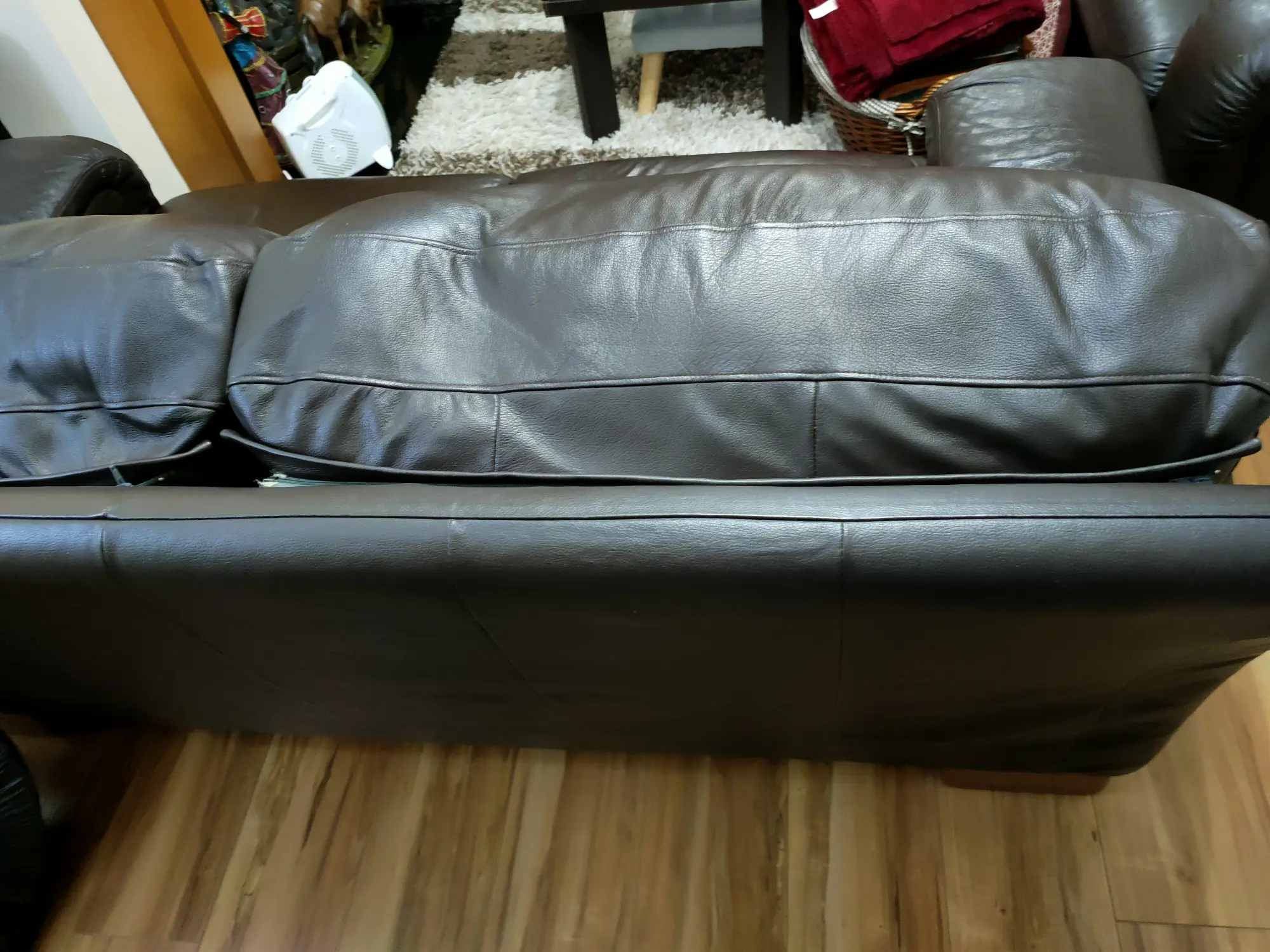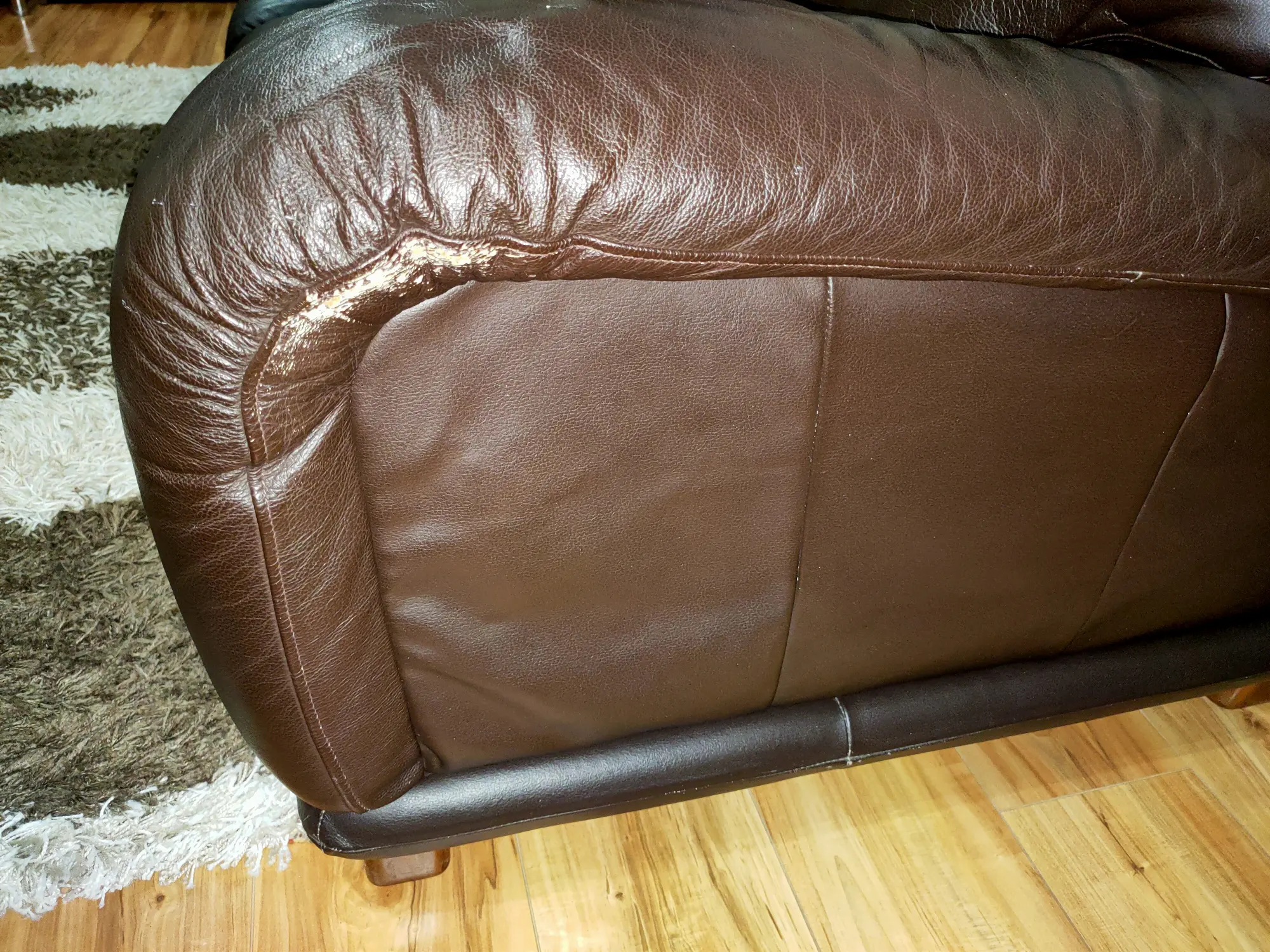 One of the back zips of the 3 seater is broken (shown in picture 5). There is also a small scuff on one of the arms (shown in picture 4).