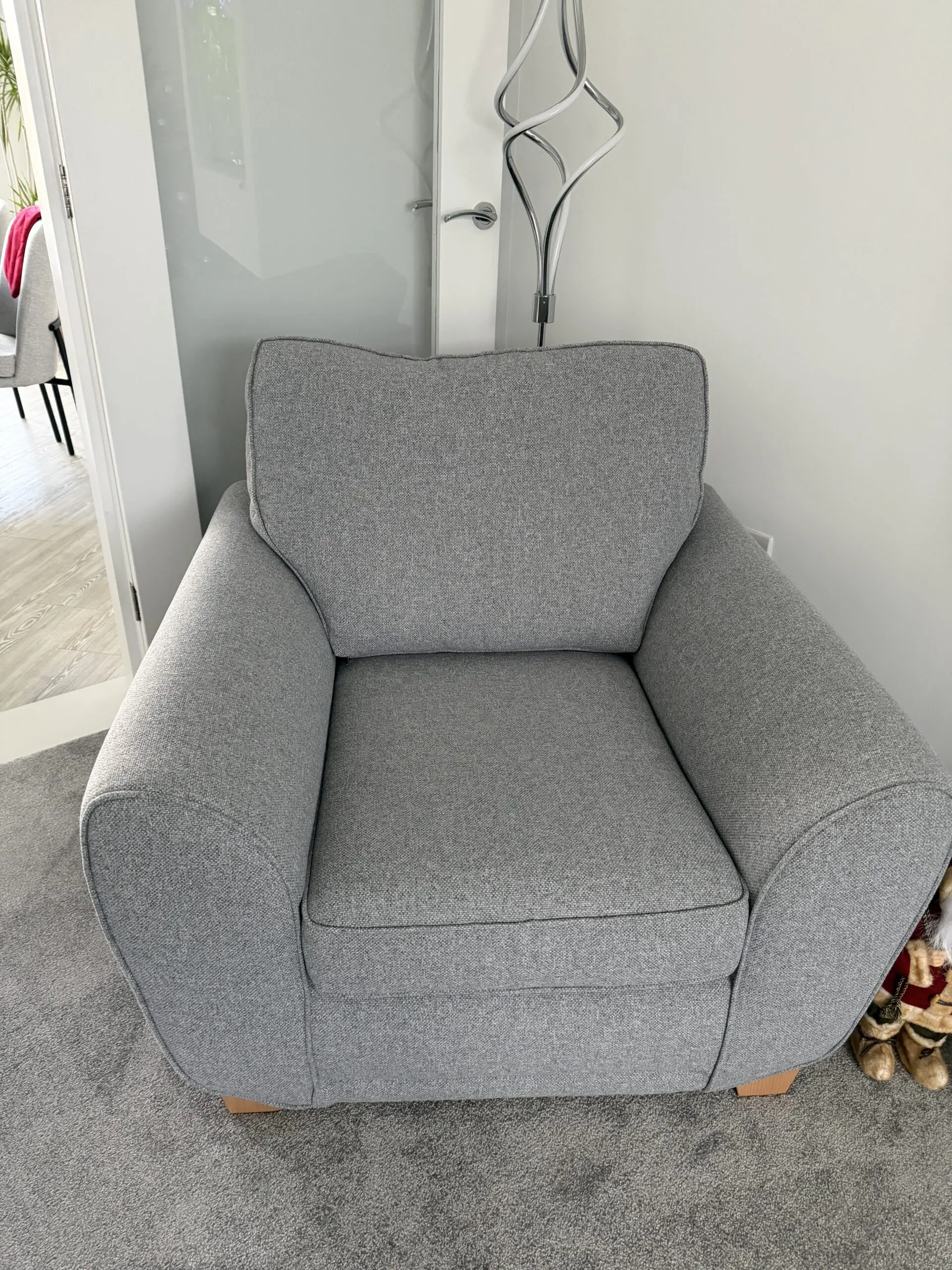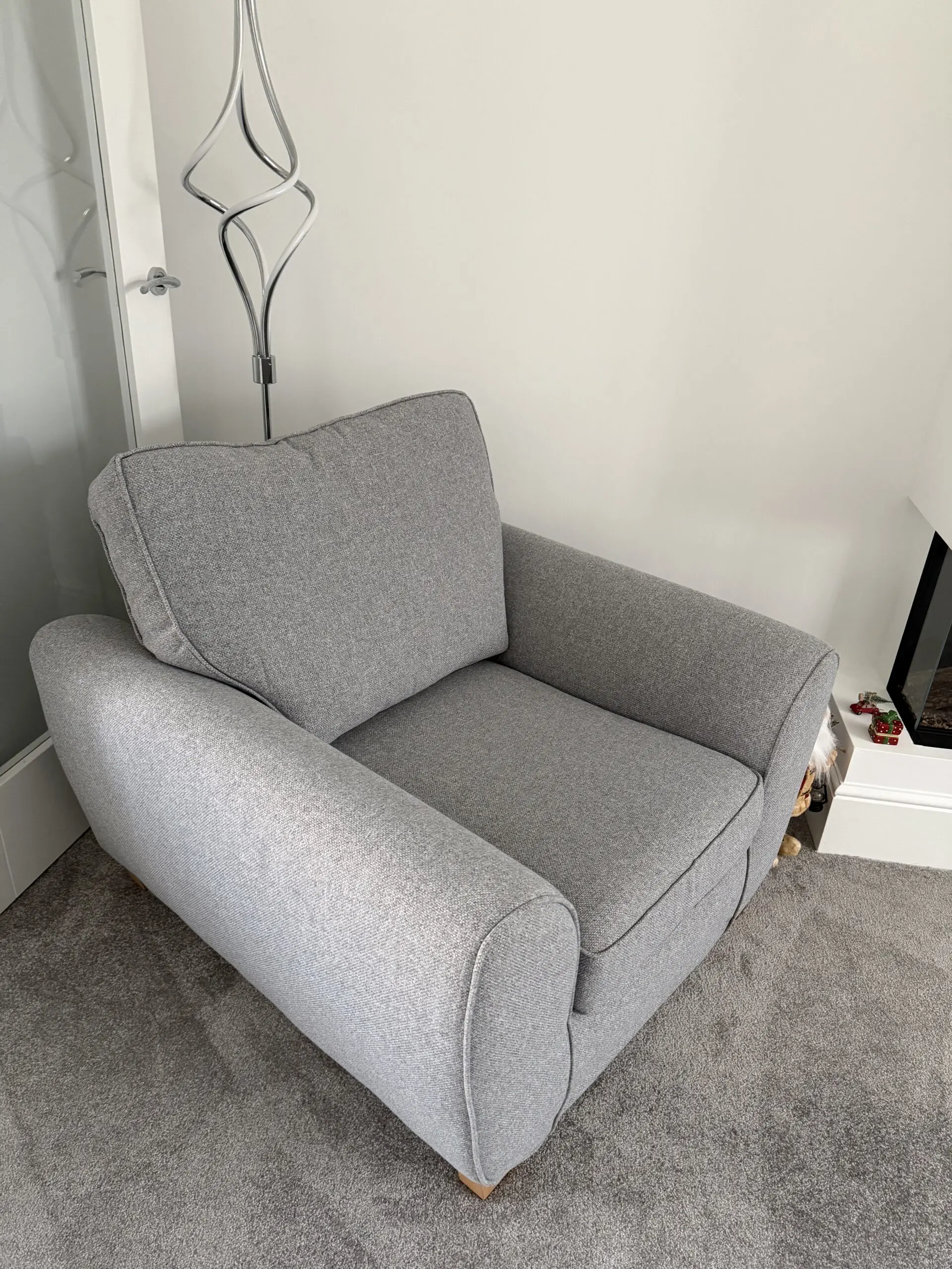 Lovely grey DFS sofa set with is only 5 years old. All items in great condition with no marks or stains.