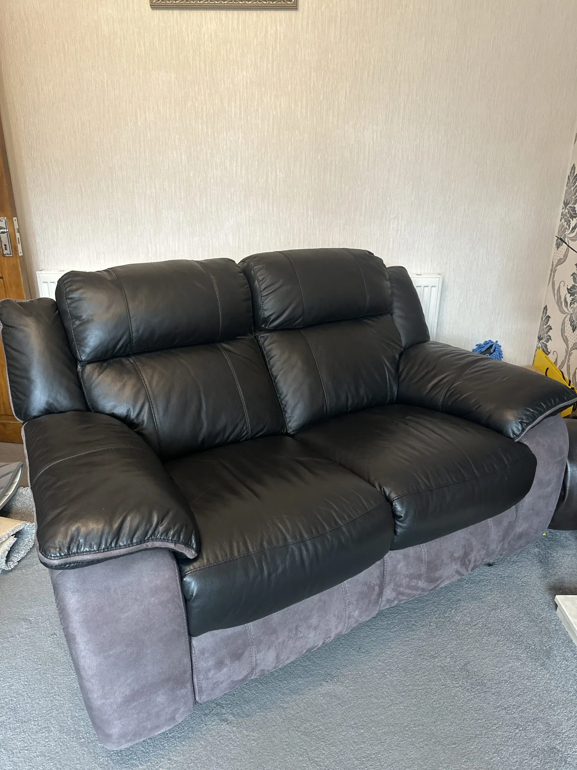 leather and suede sofa set, in mint condition only selling due to colour theme change. Comes with 4 manual recliners that are all in working condition
