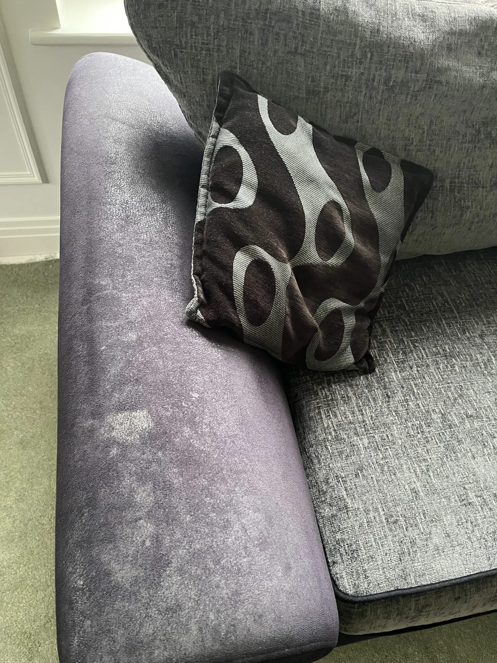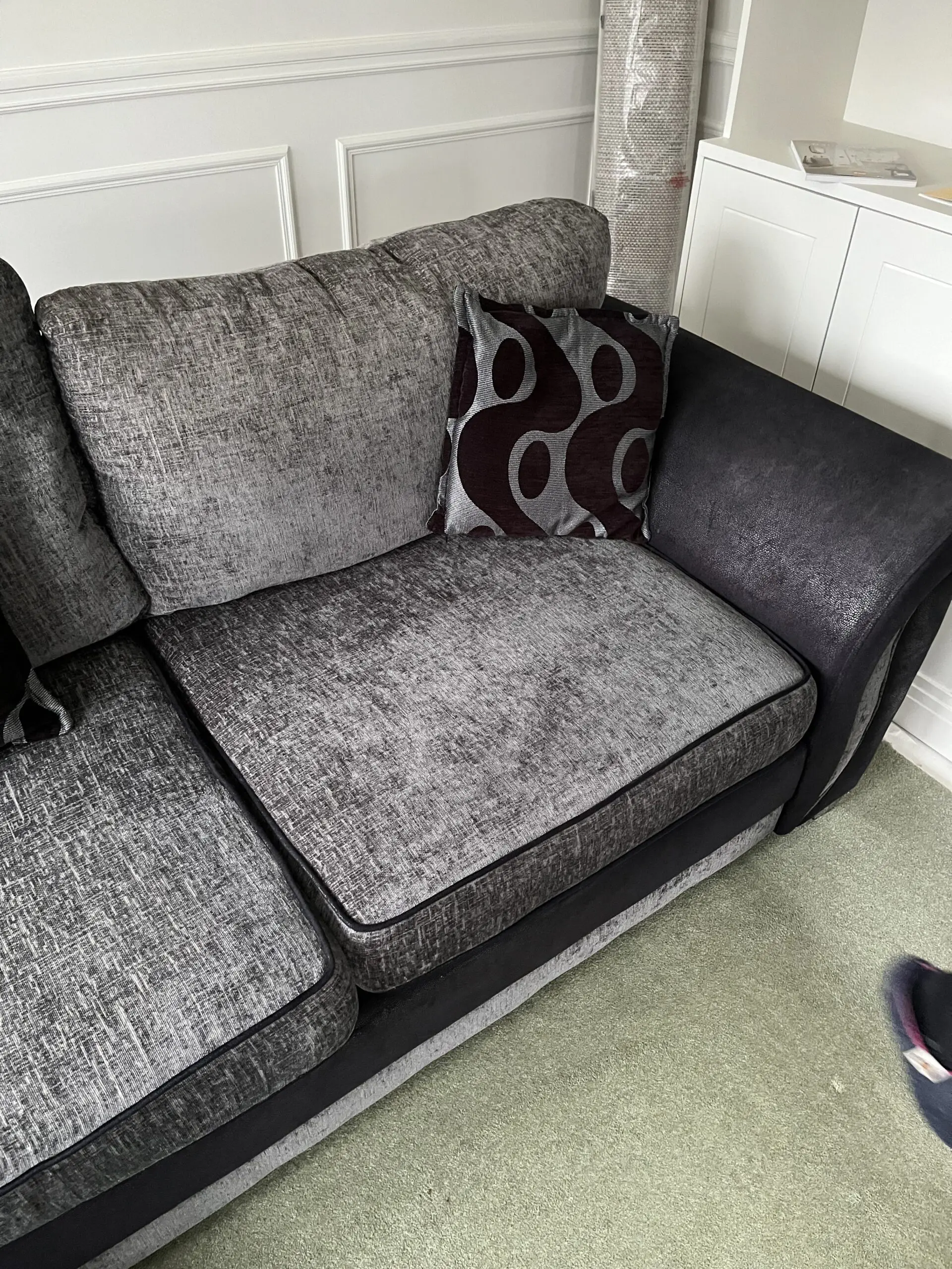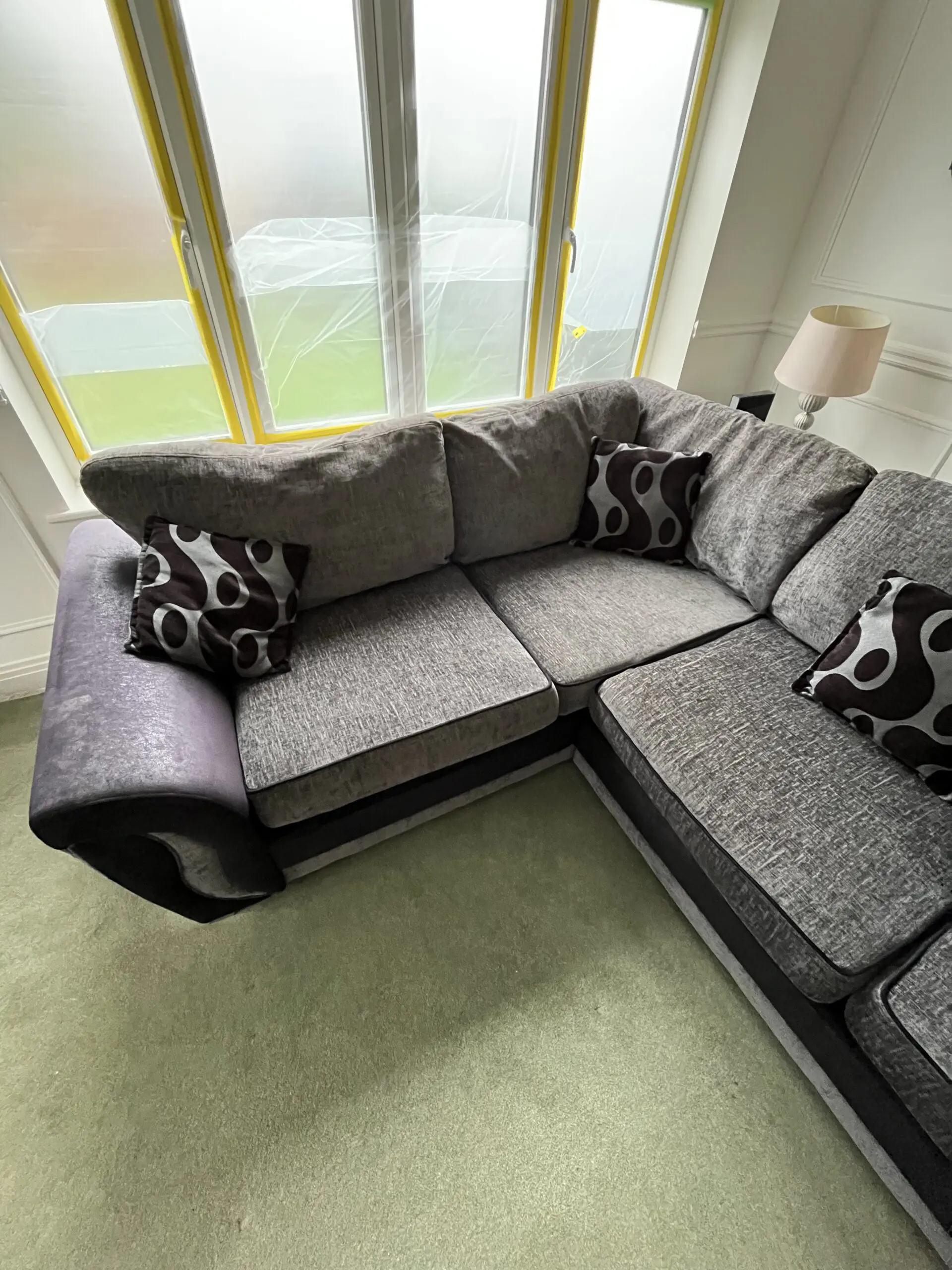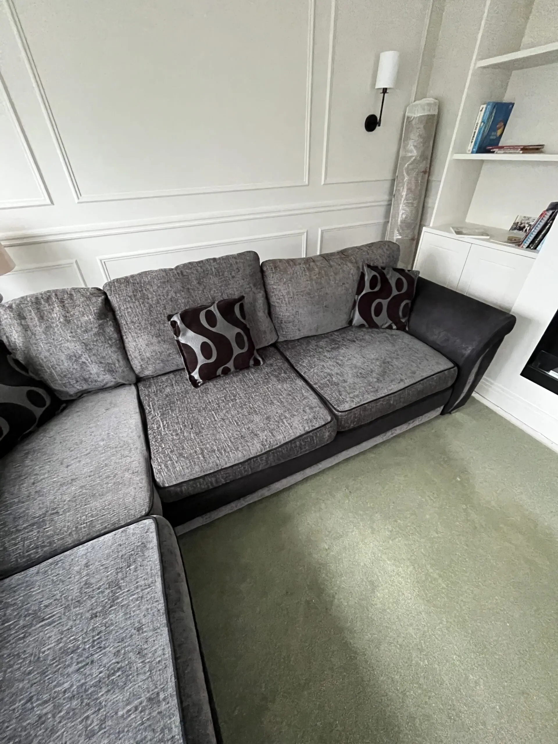 All measures are approximate. originally from DFS. Condition is good considering it’s been well used! Slight mark on the corner sofa arm (see photo). Some discolouring of the grey. Cushion covers are washable.