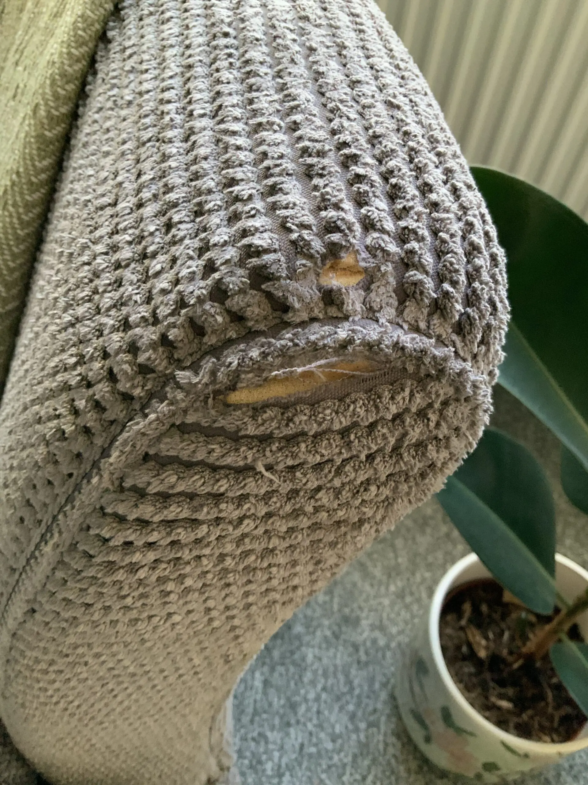 There is a slight tear on the right armrest from the previous owner (seen in one of the images), but apart from that it is still in a really good condition.