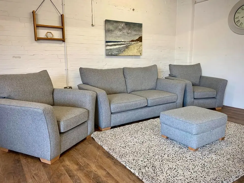 DFS Grey Dylan High Back sofa ,Dual Arm Sofa Set with matching Footstool