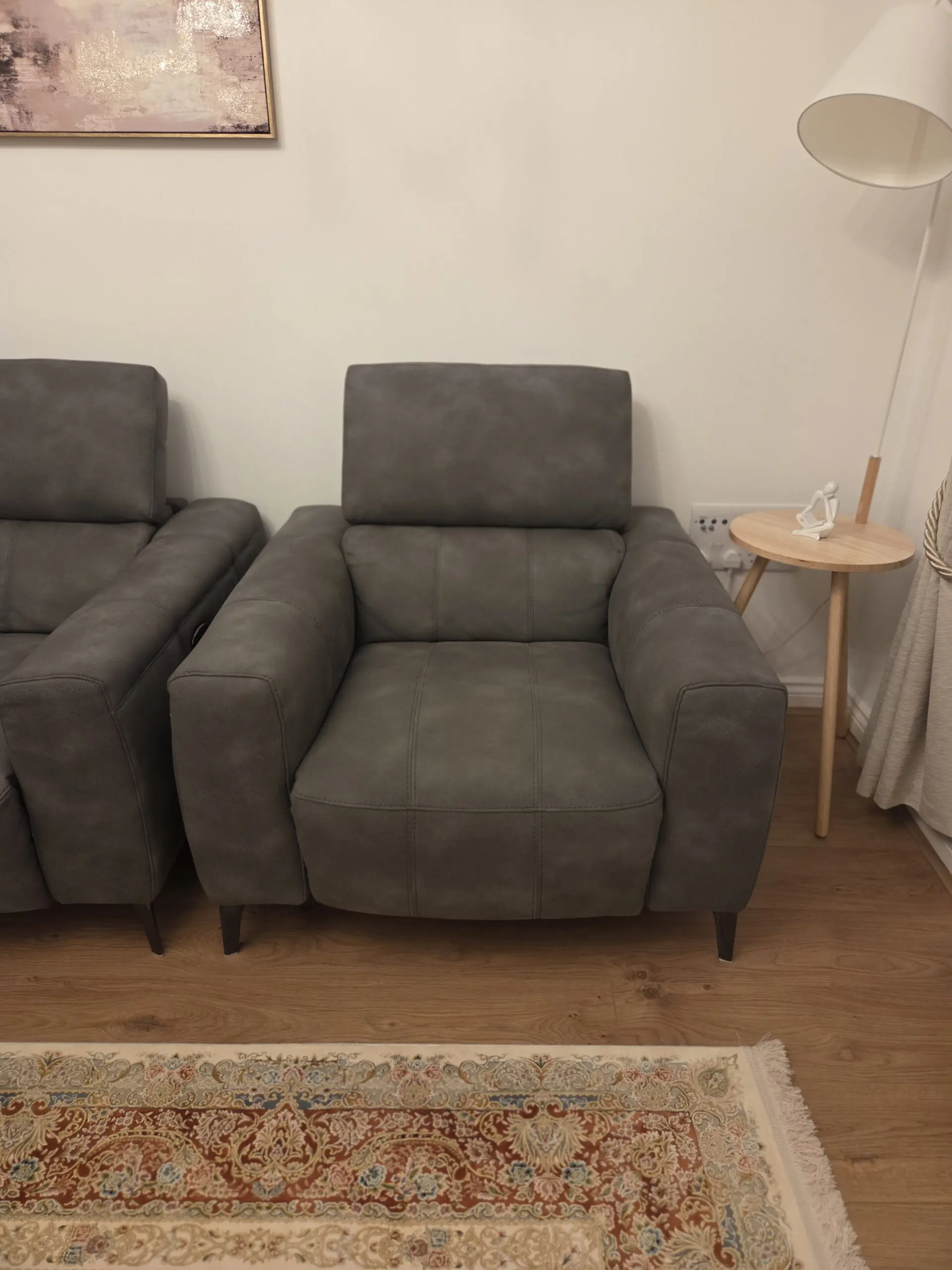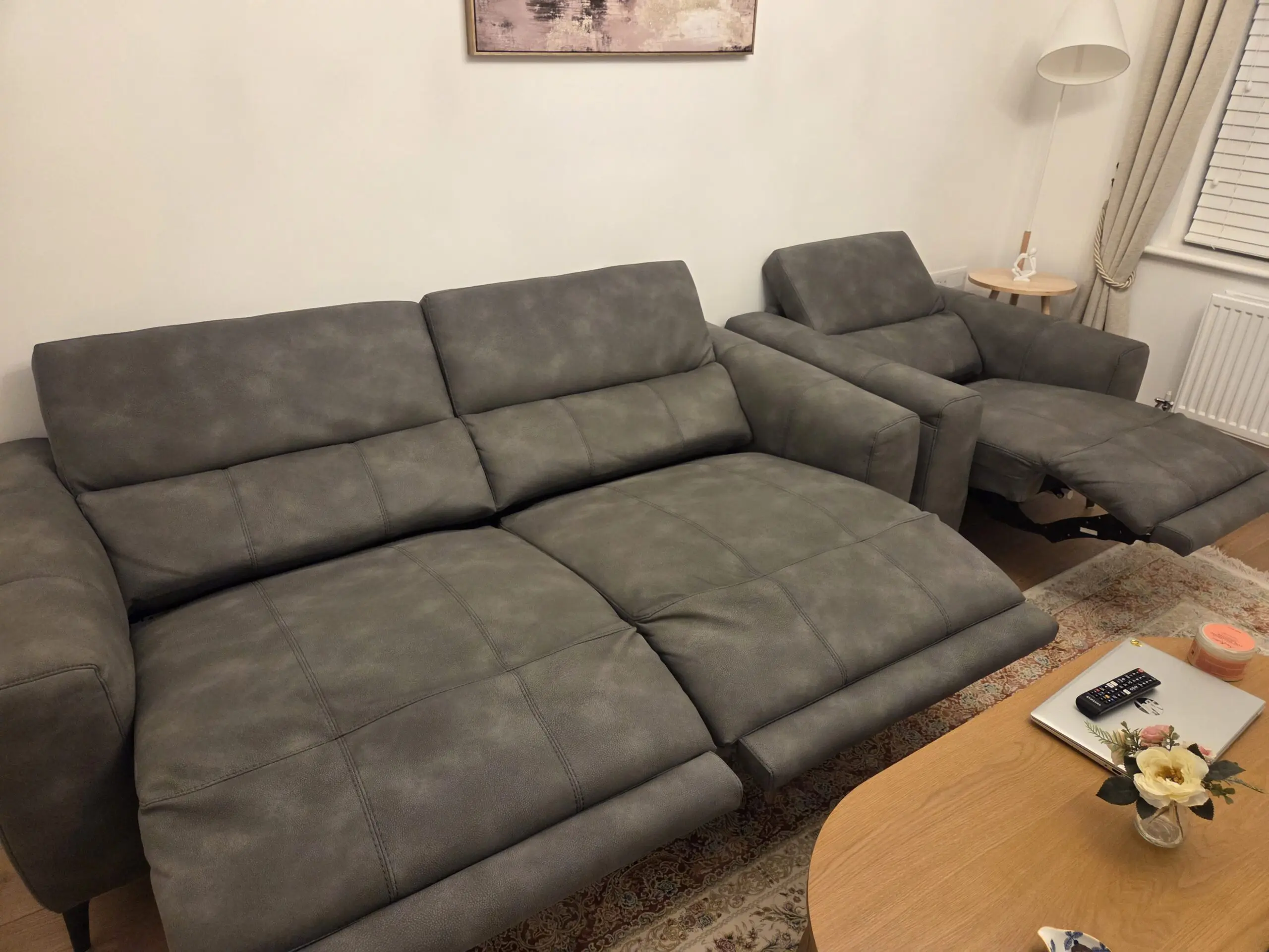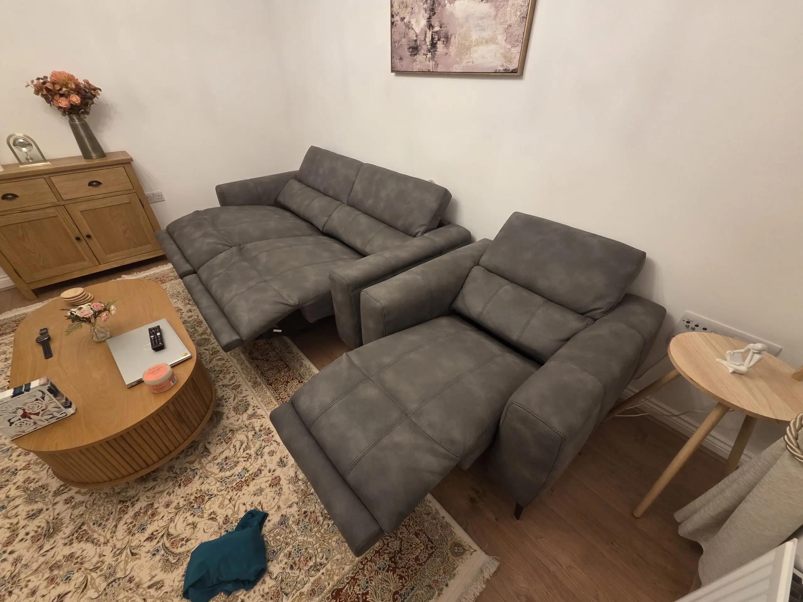 The set includes a 3-seater sofa and matching armchair, both with full recliner functionality, making them extremely comfortable and practical. The Jagger range is known for its modern design, supportive seating, and adjustable headrests, offering great comfort whether sitting upright or fully reclined.