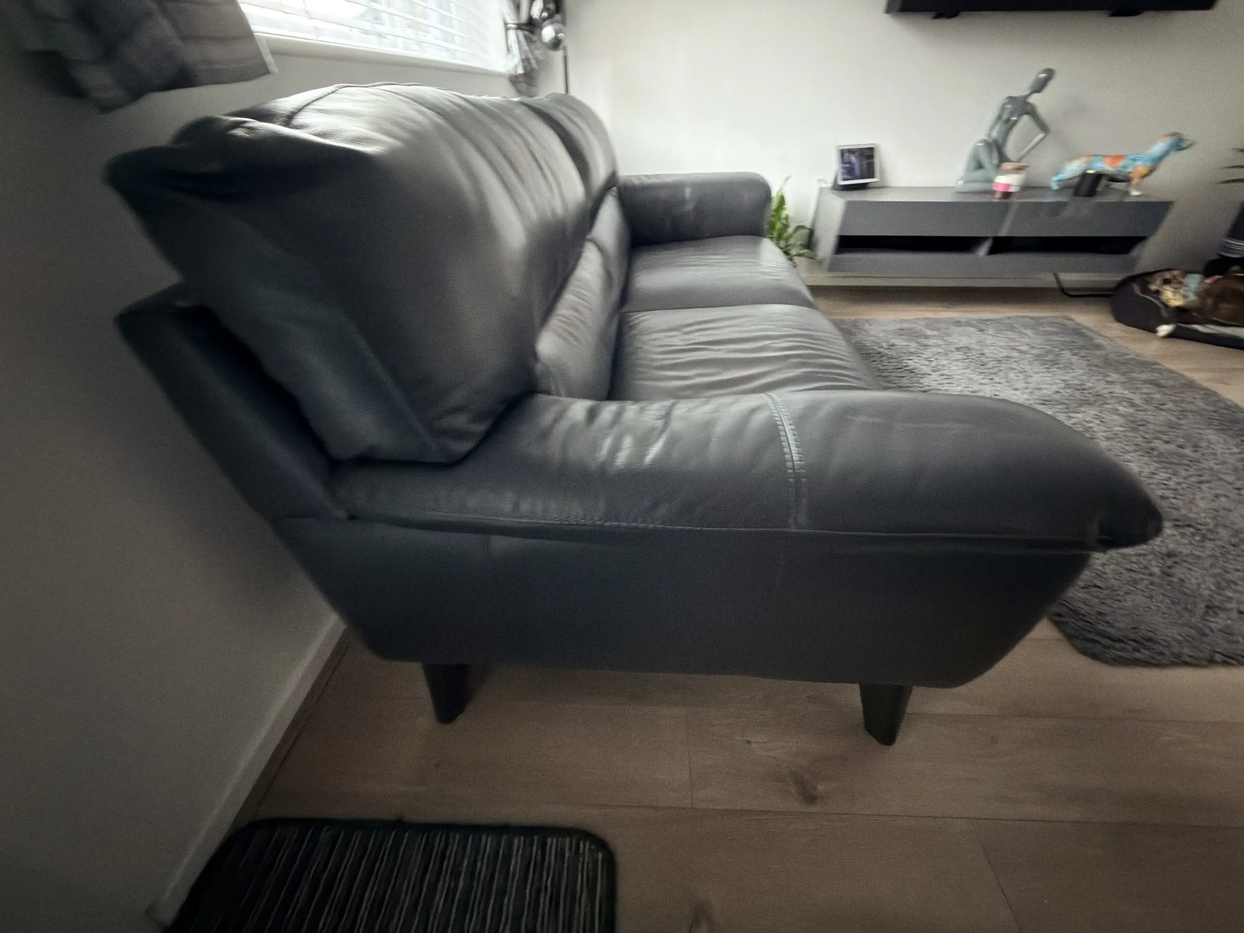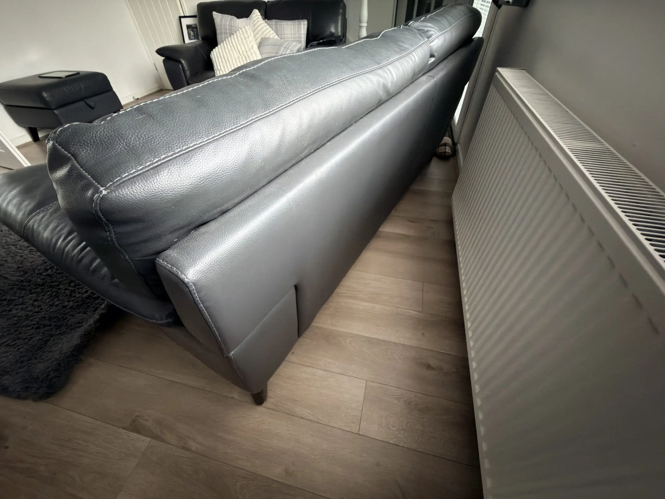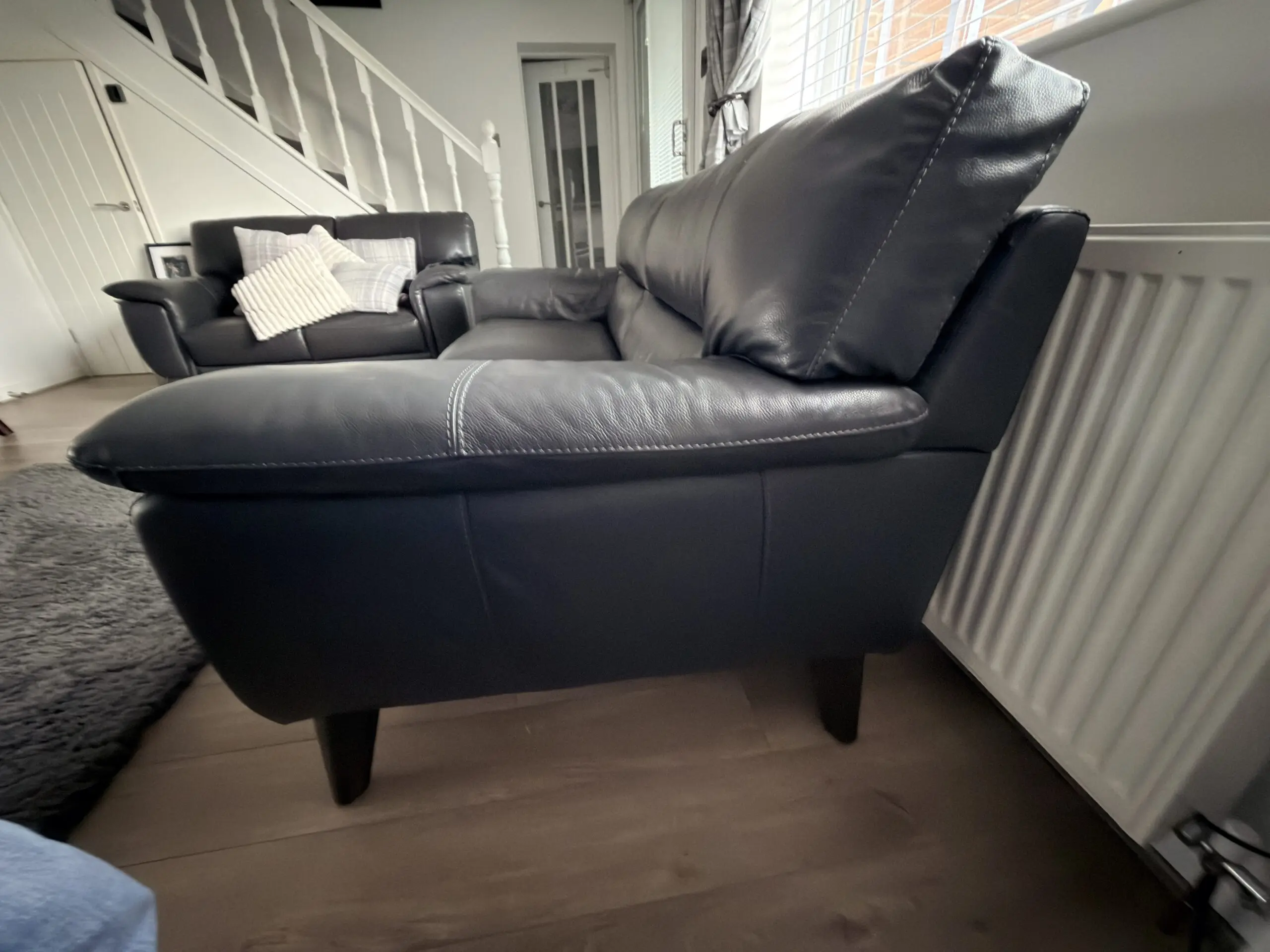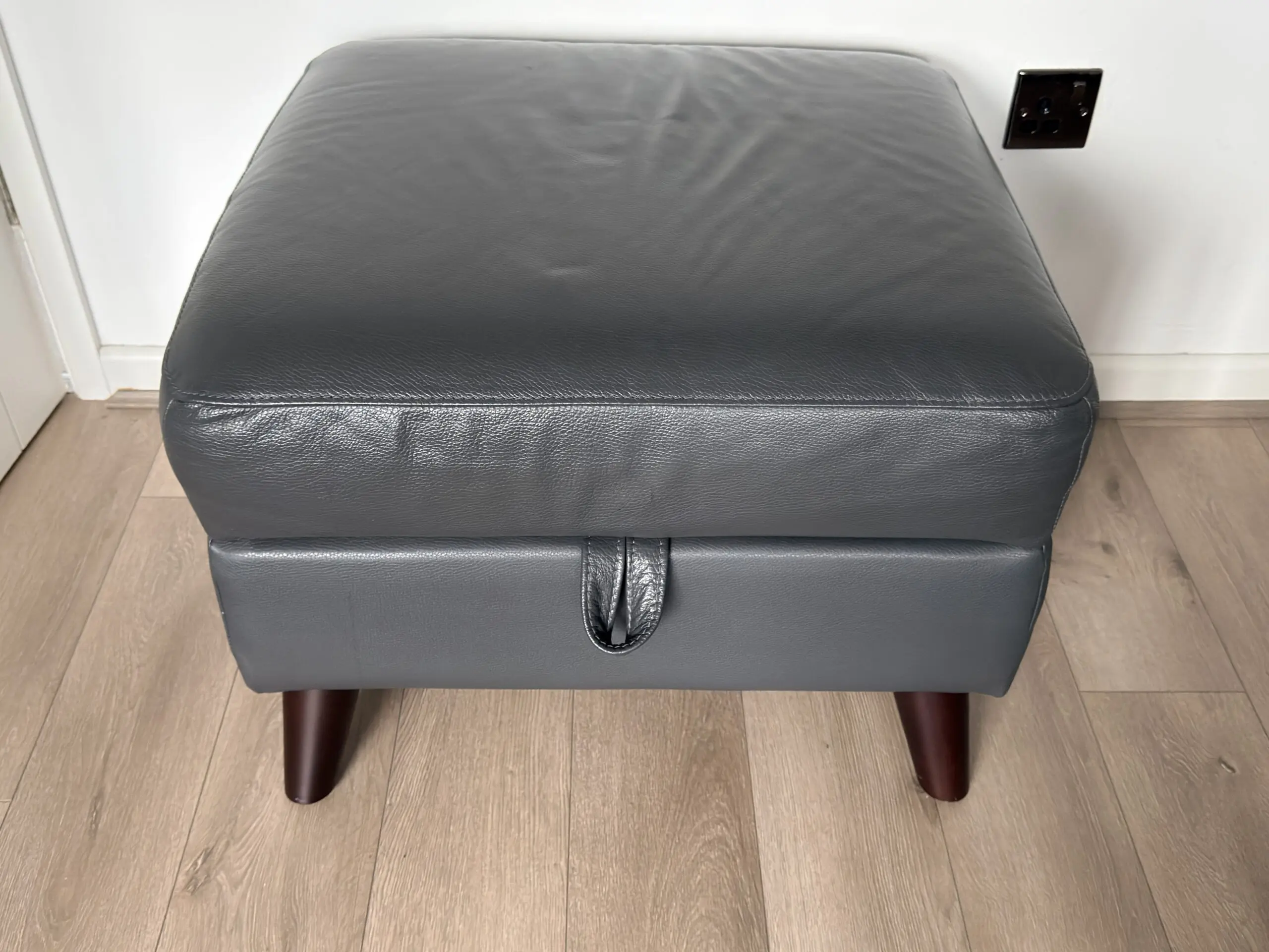 DFS Leather Slate Grey 3 Seater Sofa , 2 Seater Sofa & Footstool (with storage) Cost over £3k when new!