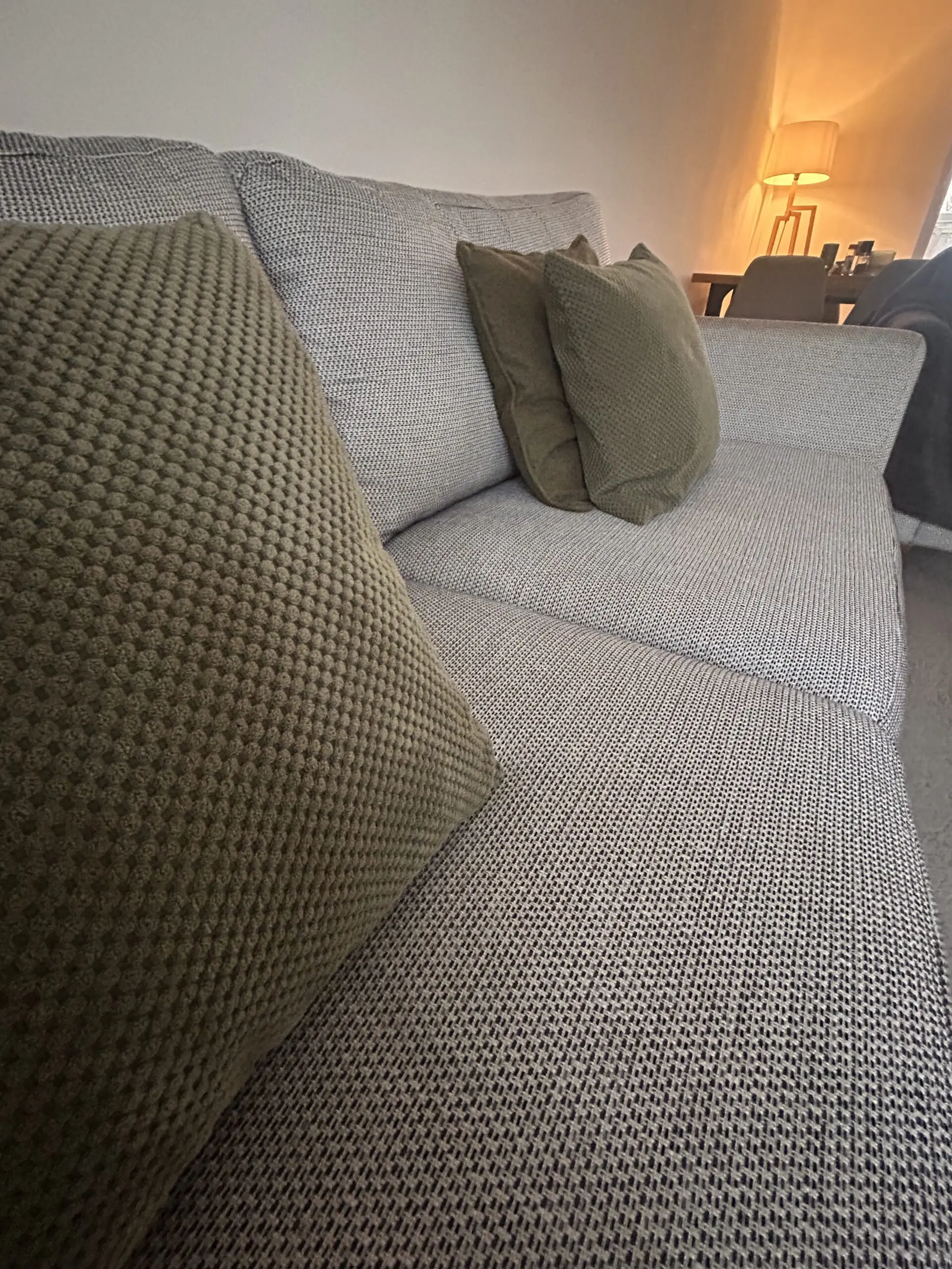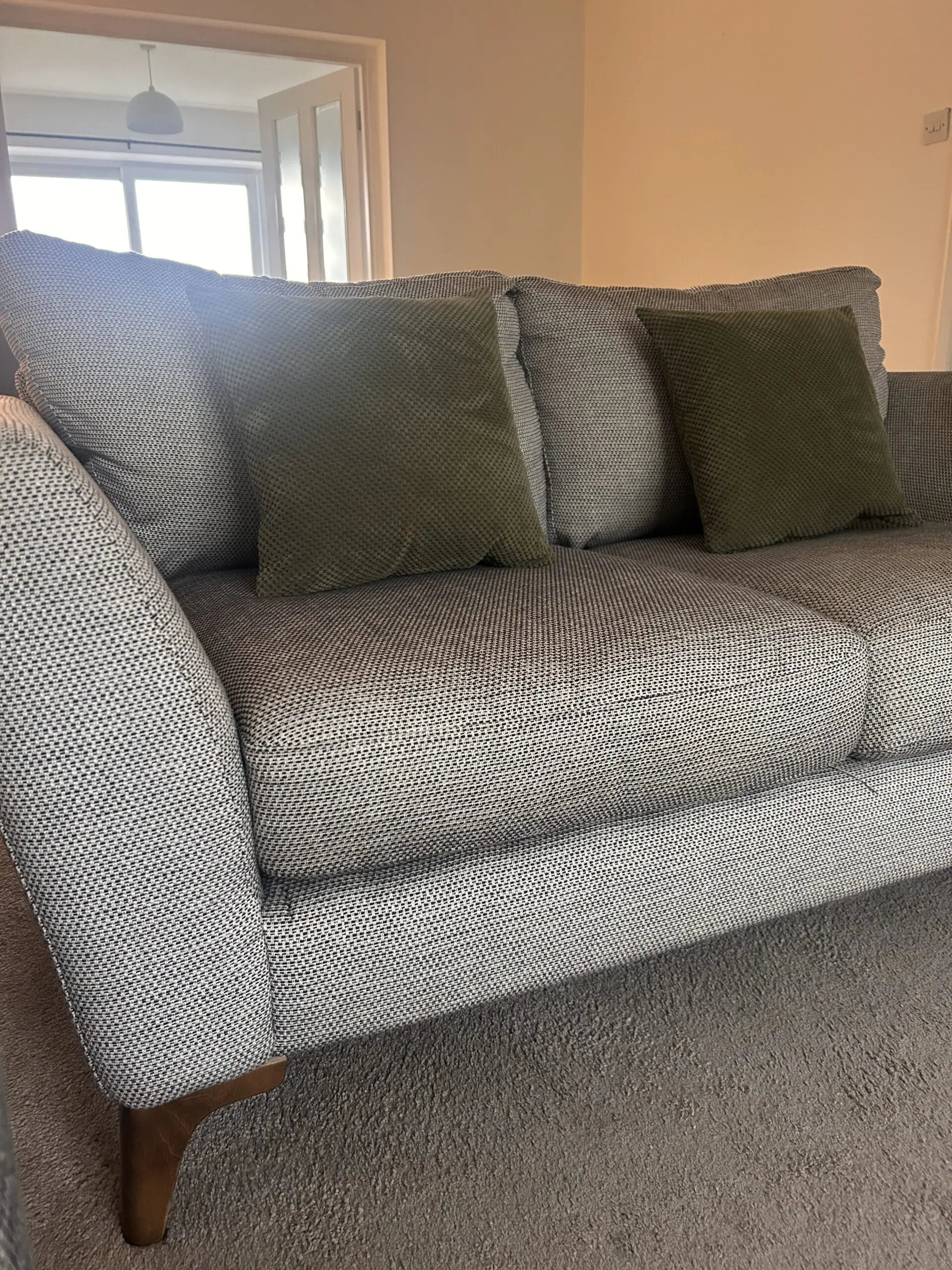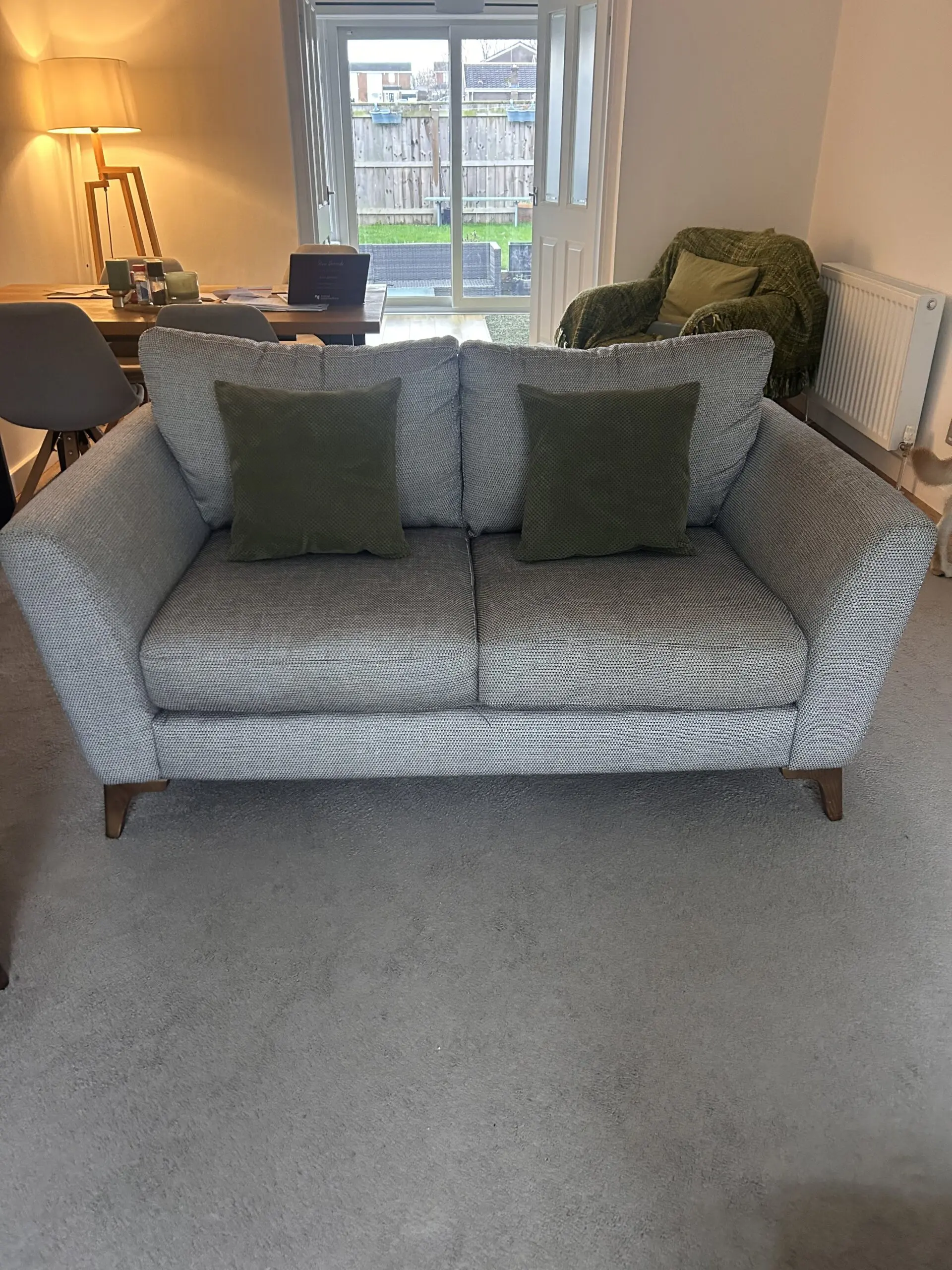 Bought in 2021, these timeless Libby chic-design sofas are in good condition. Charcoal heavy basket weave pattern. Two seater rarely used so as good as new.