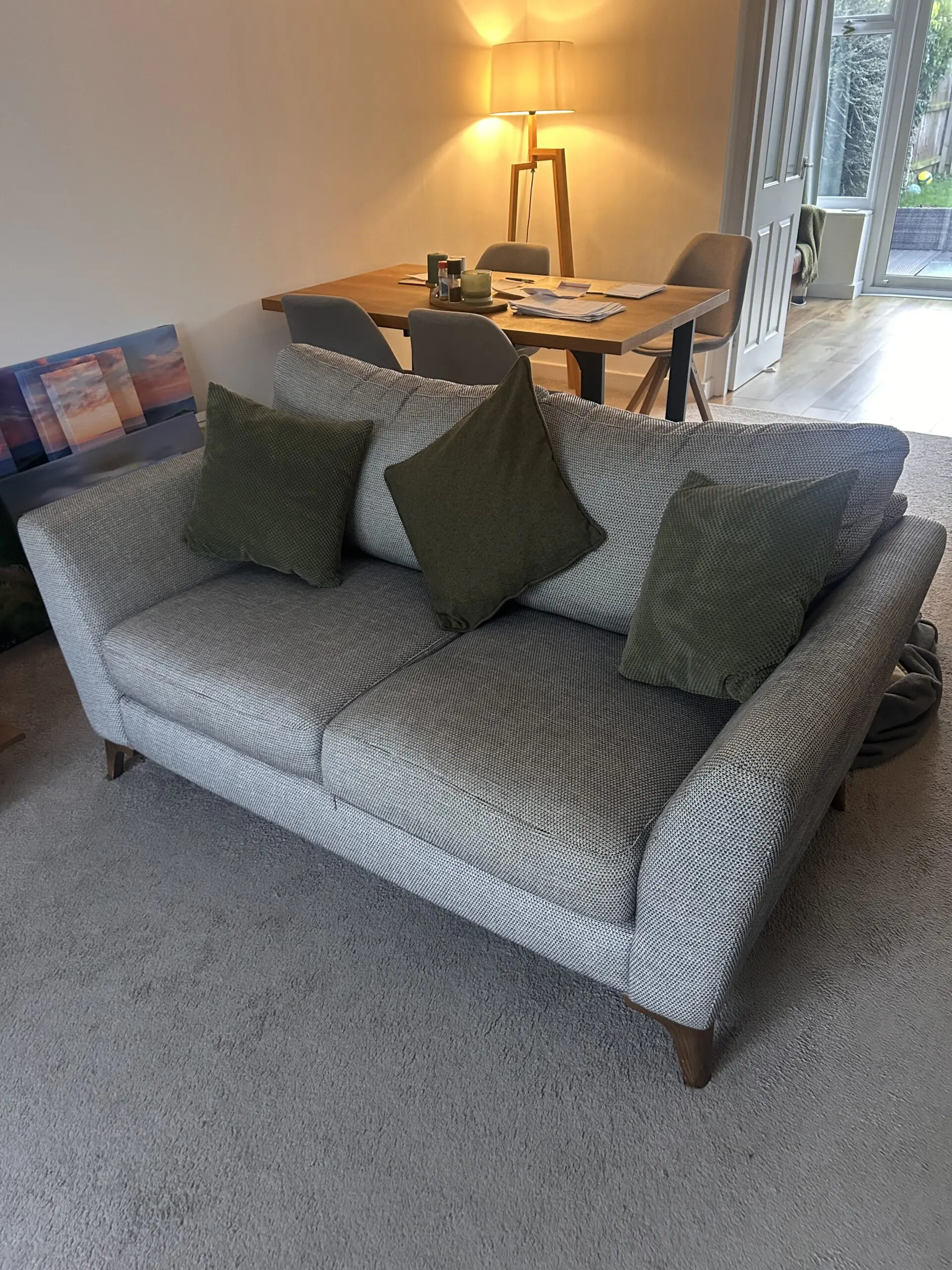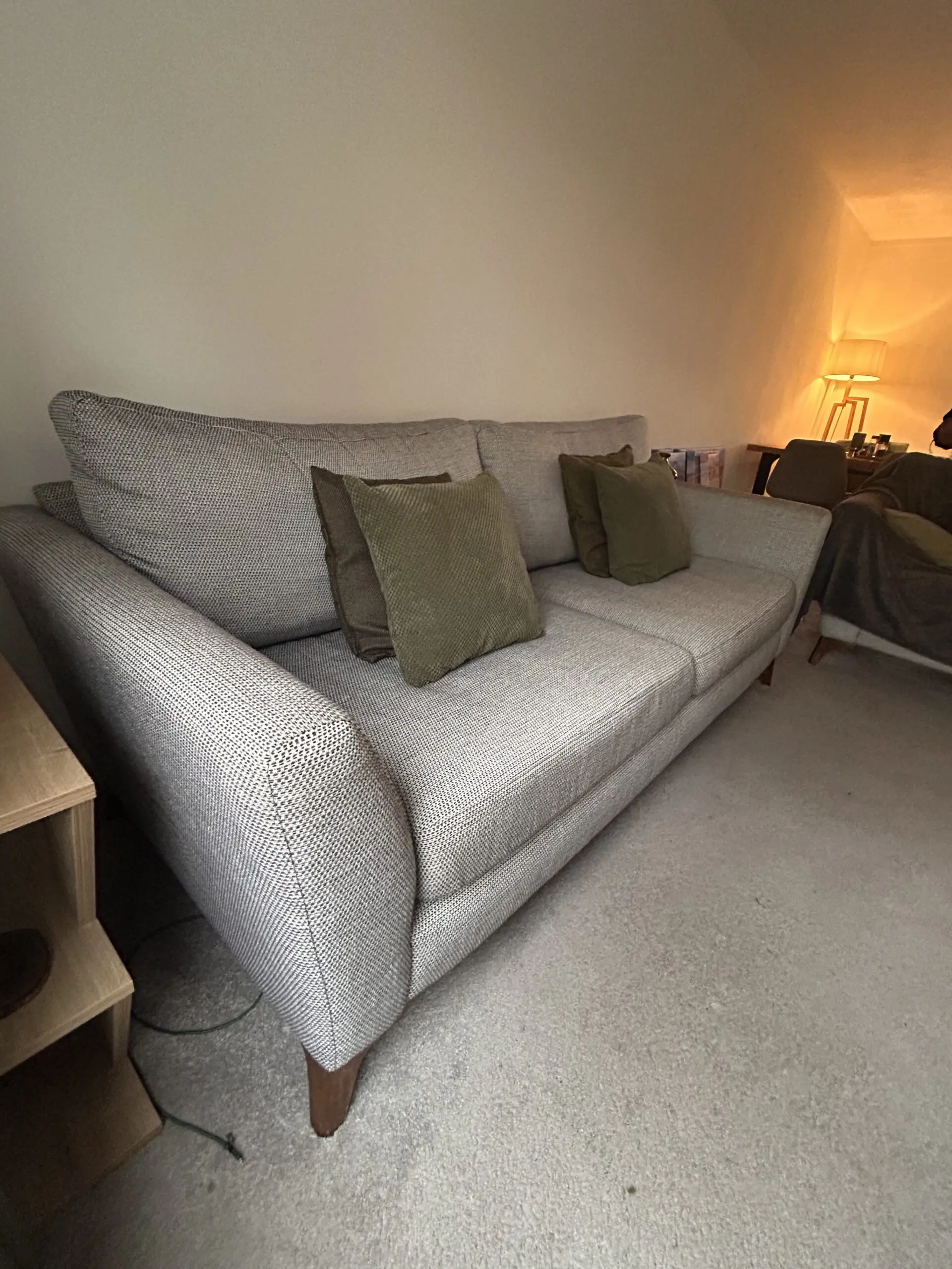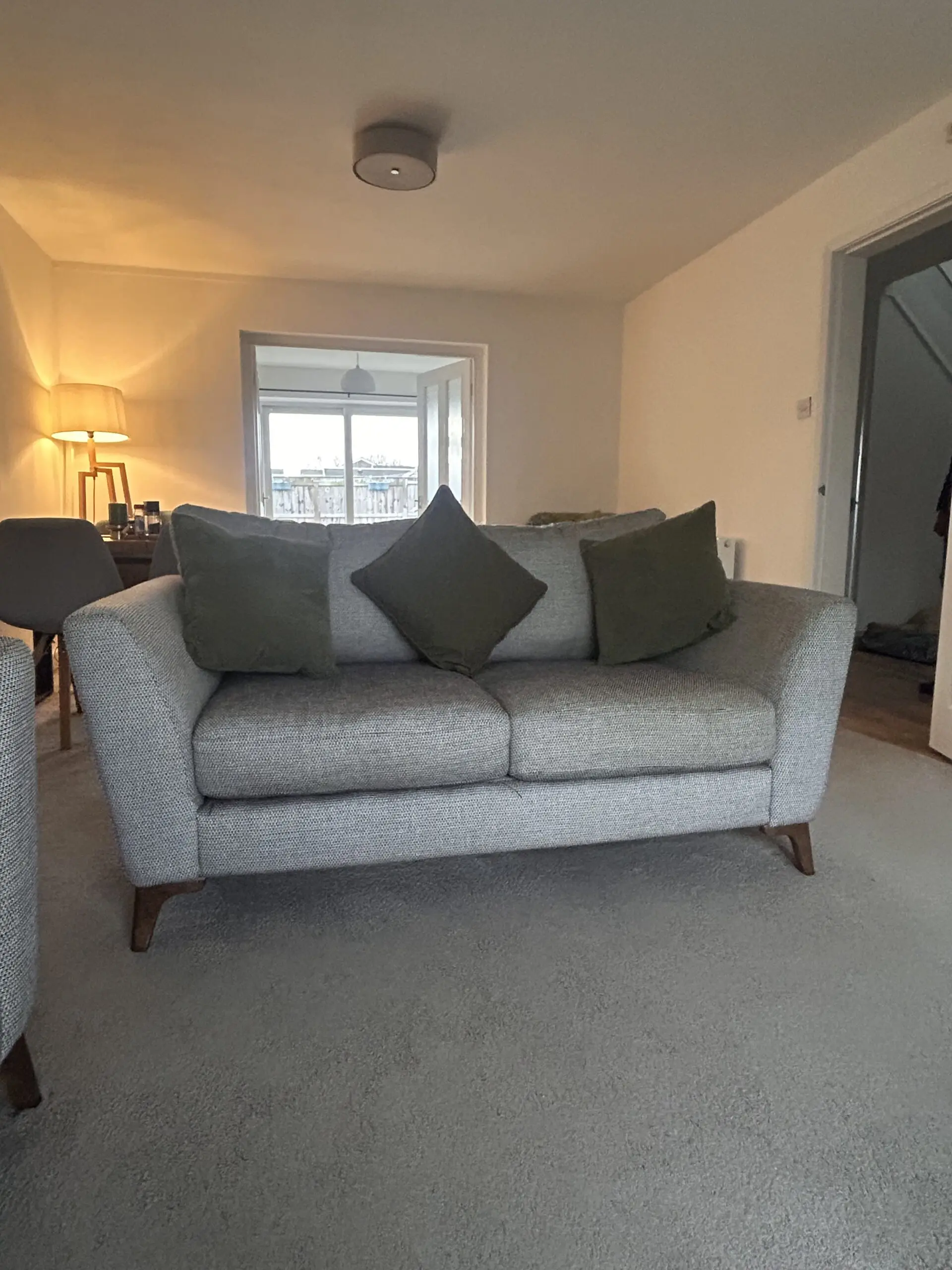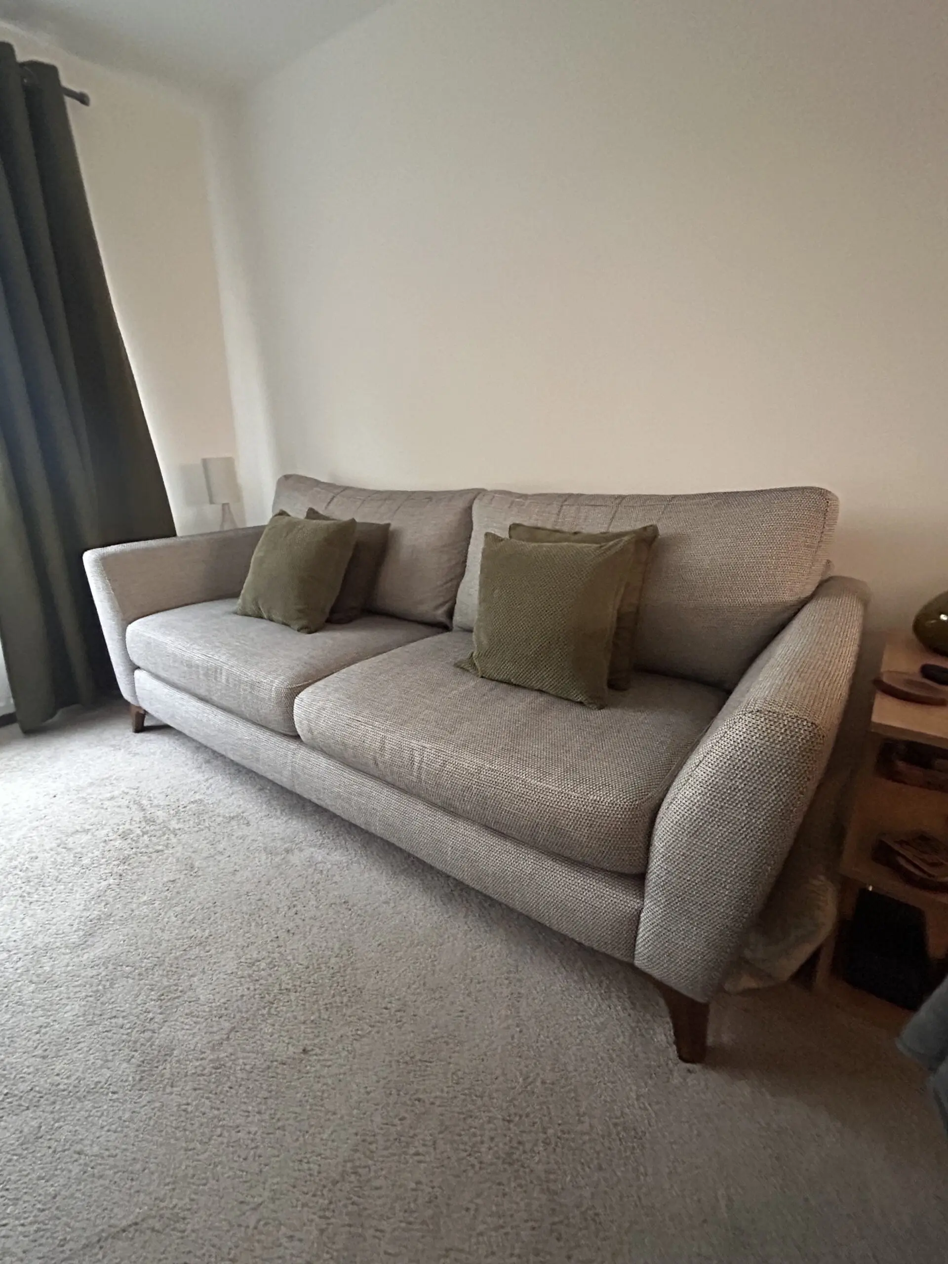 Bought in 2021, these timeless Libby chic-design sofas are in good condition. Charcoal heavy basket weave pattern. Two seater rarely used so as good as new.
