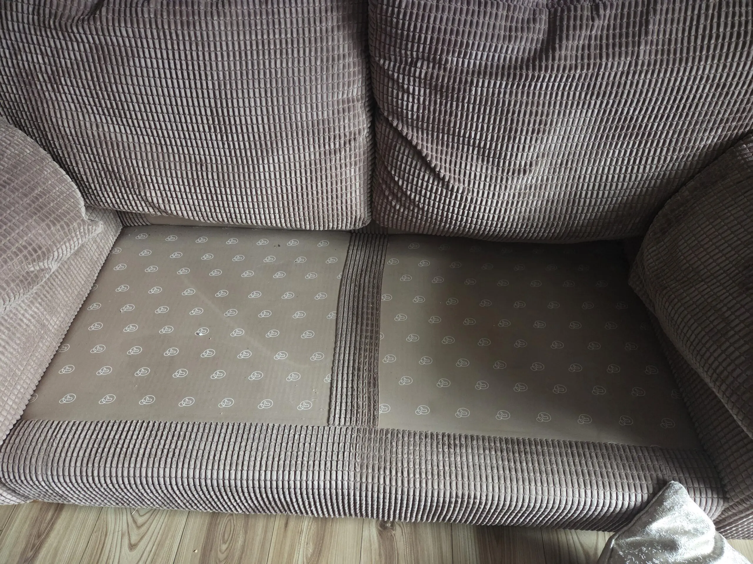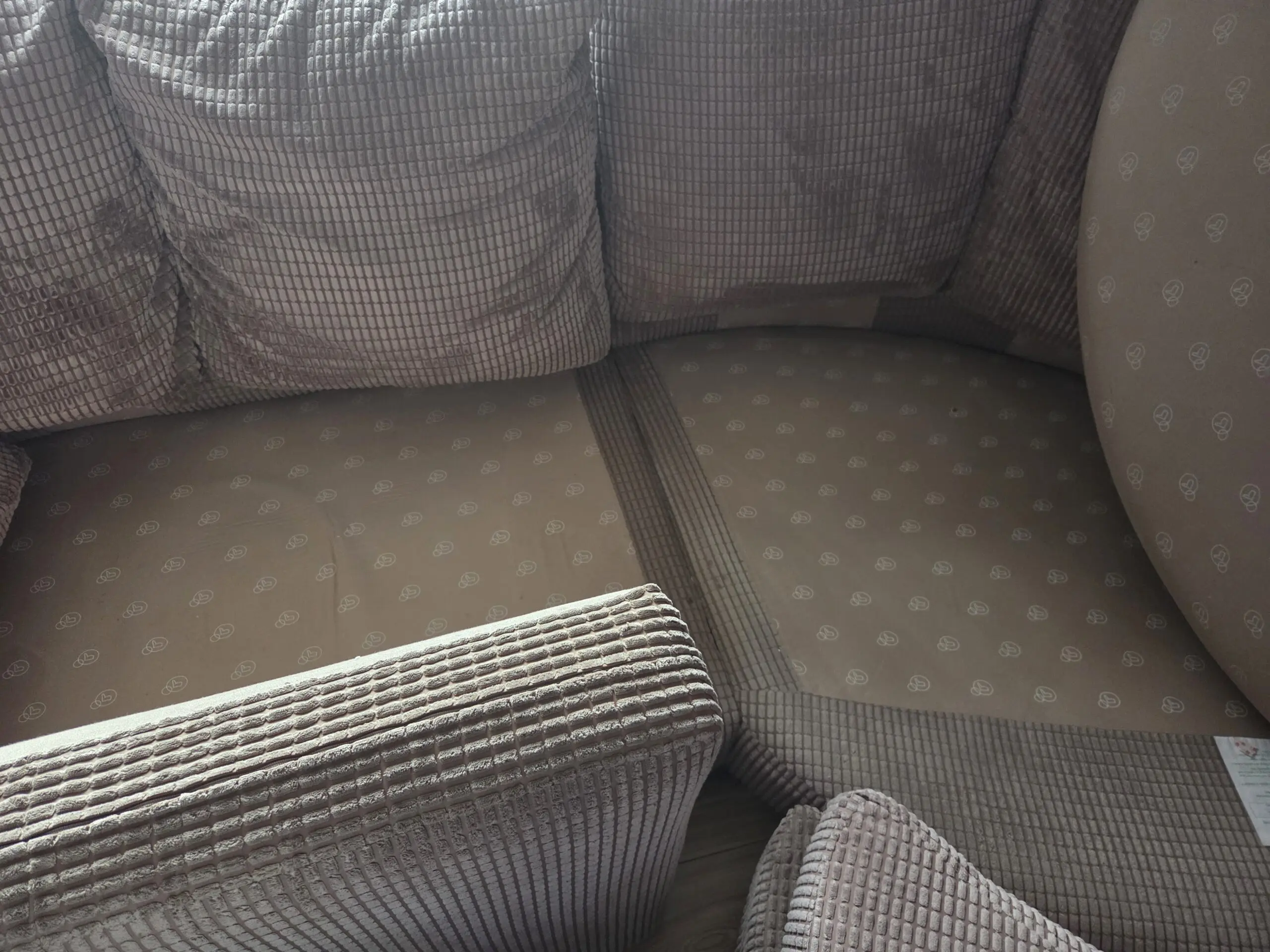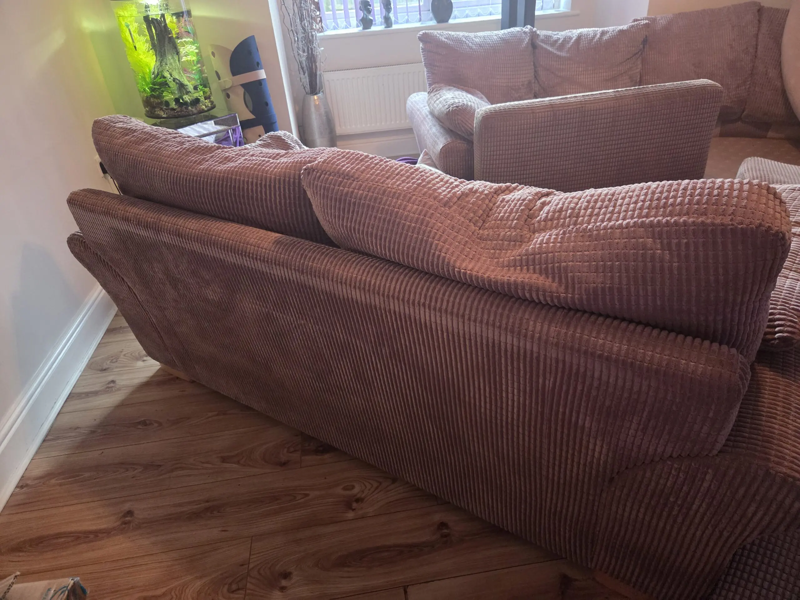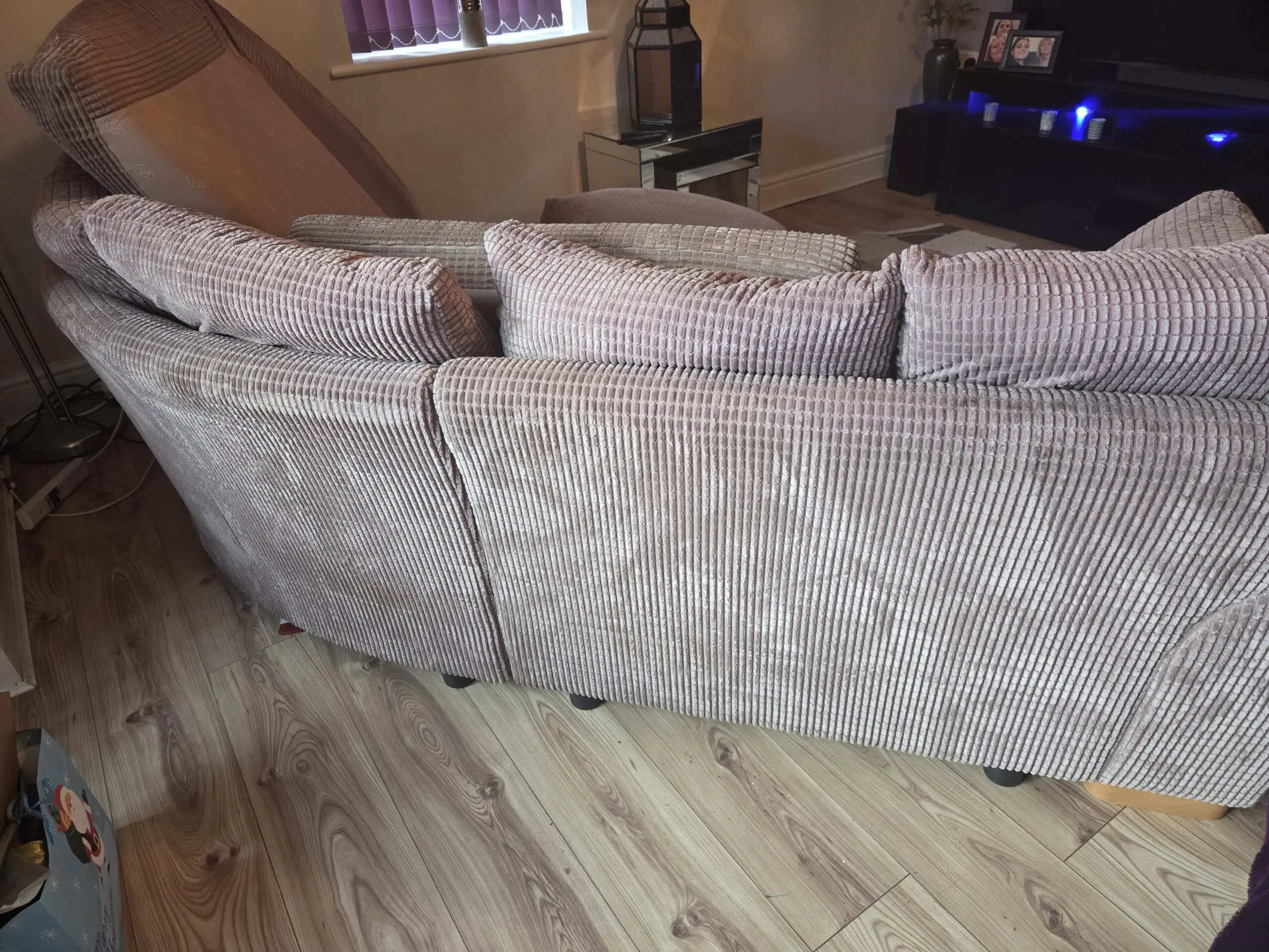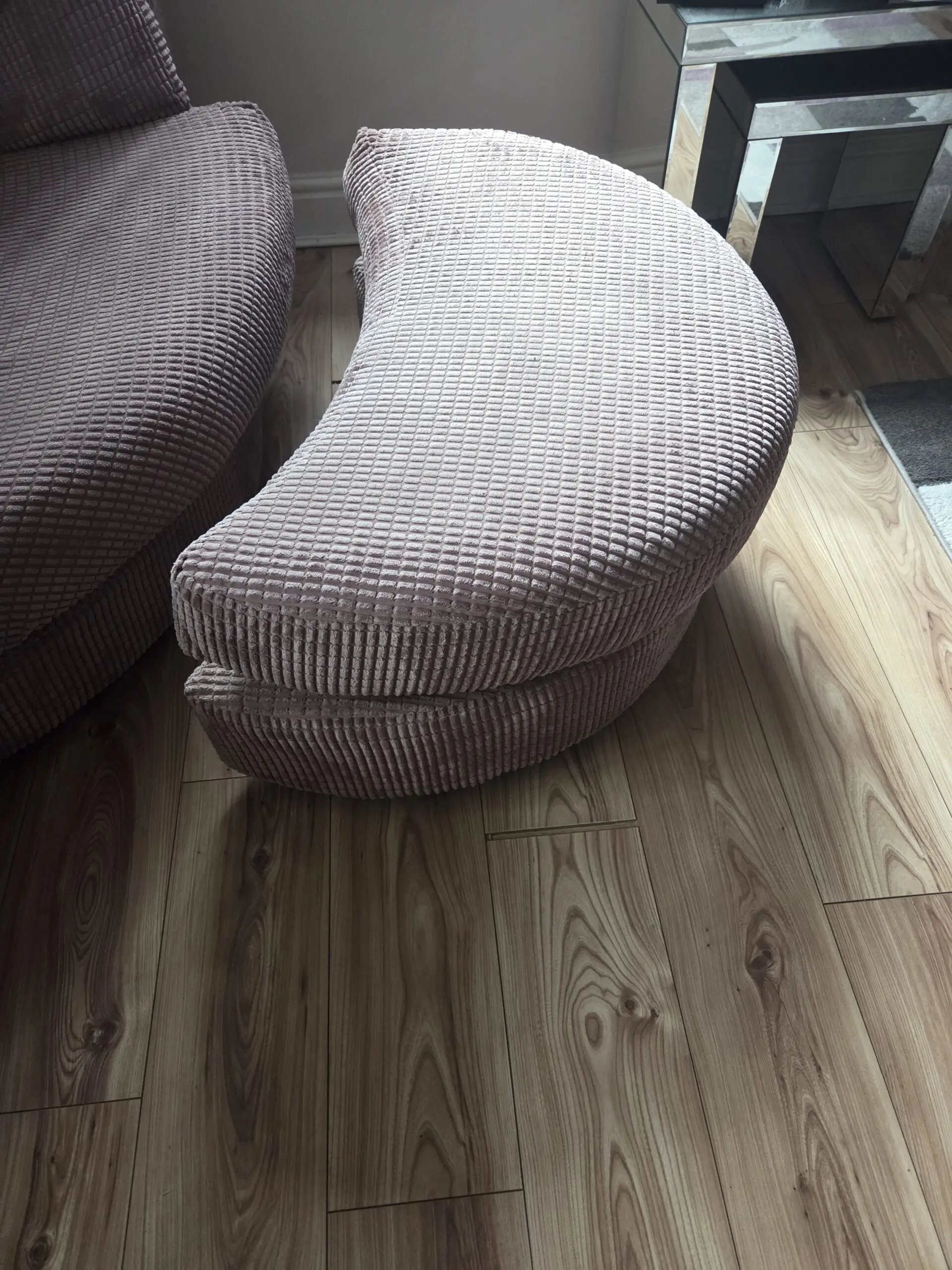 Corner sofa, foot stool and 2 seater sofa. Removable cushion covers in waffle design.