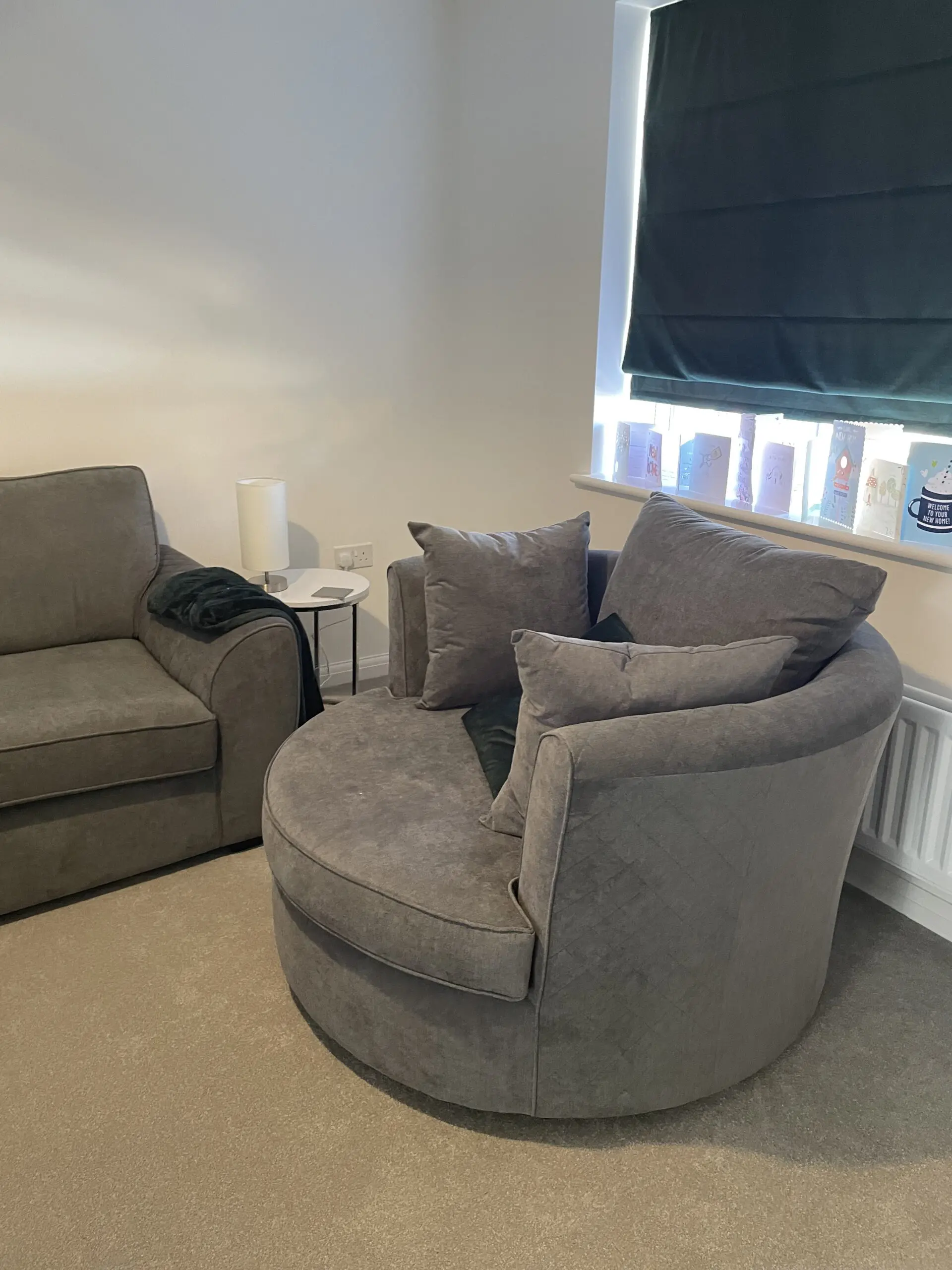 3 year old, practically new well looked after sofa and swivel chair, material = plaza, colour = graphite, no pet home, non smokers