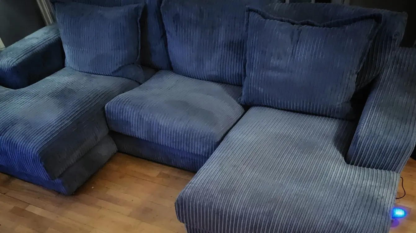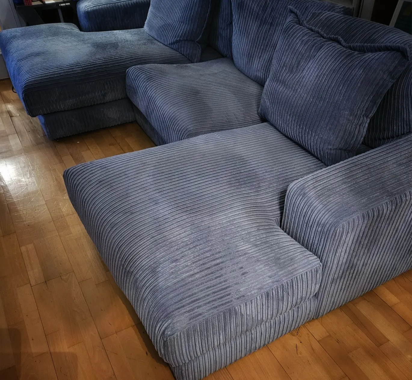 This spacious corner sofa offers excellent comfort with its deep seats and plush cushioning, perfect for family relaxation. The striking blue colour features subtle variations that add visual interest and would complement both modern and traditional interiors. With generous seating capacity, it’s ideal for larger living rooms and entertaining guests. The ribbed upholstery creates an attractive textured finish that’s both stylish and practical for everyday use.