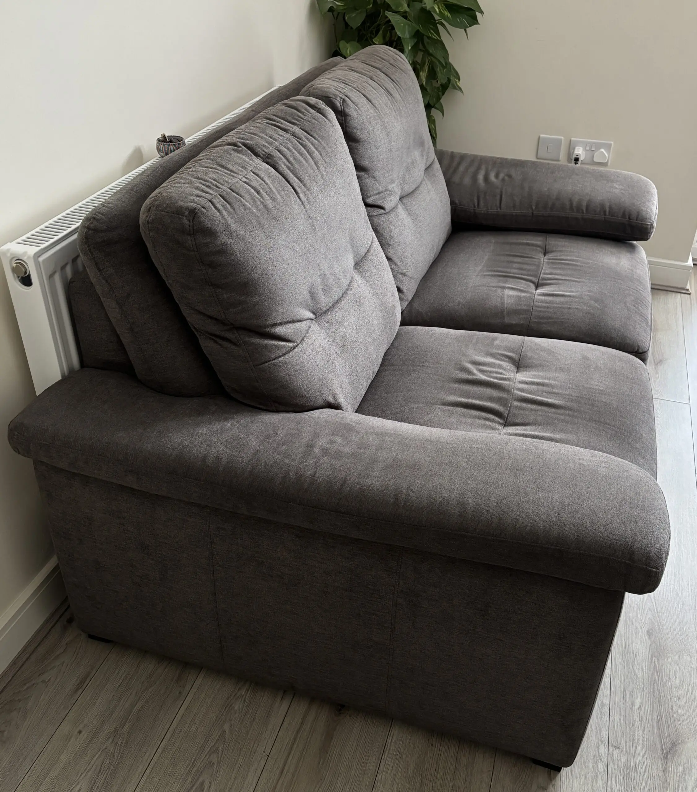 2 seater and sofa bed 2 seater. Grey in colour bed near used still brand new. Very excellent condition no wear & tear.