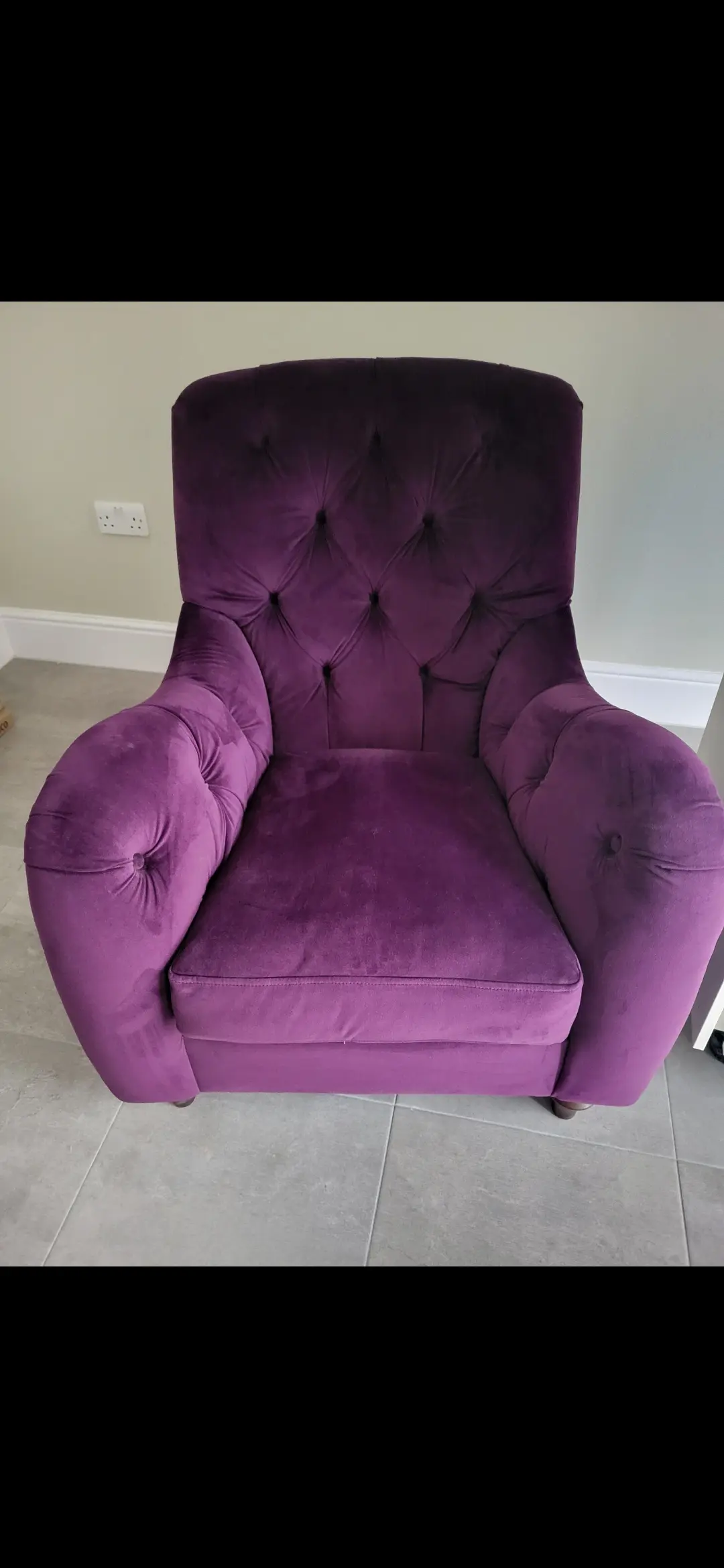The item is purple not pink but there is no selection for purple when listing. This sofa and armchair has been used but is it excellent condition.